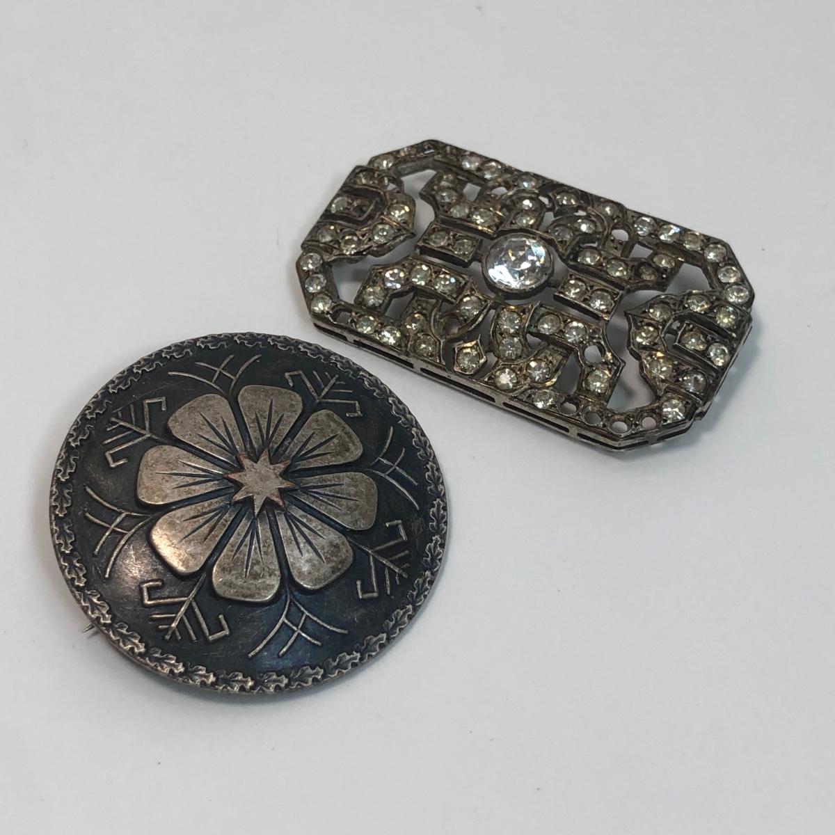 LOT 117: 2 Vintage Sterling Silver Brooches (tw: 18.26g)
