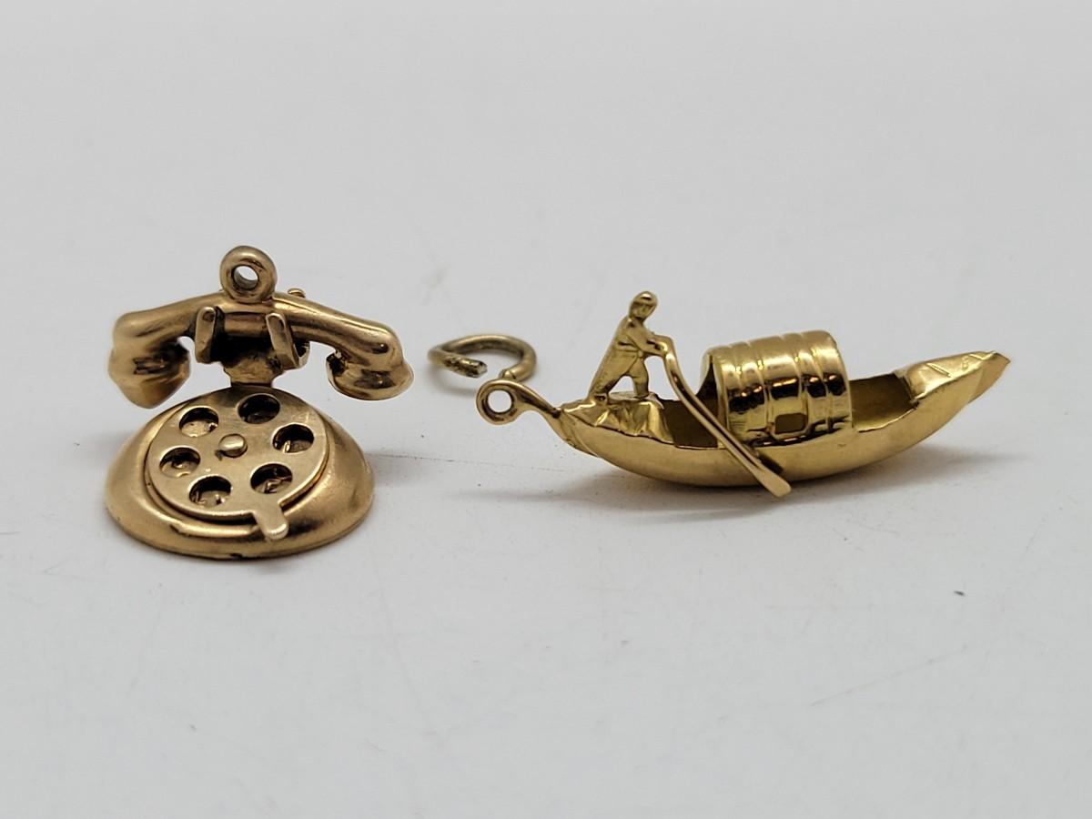 LOT 125: Two Gold Charms: 14K Telephone 2.33 grams & 18K Gondola 1.0 grams