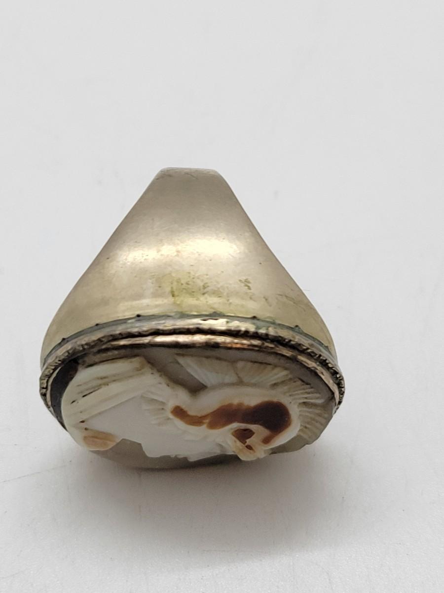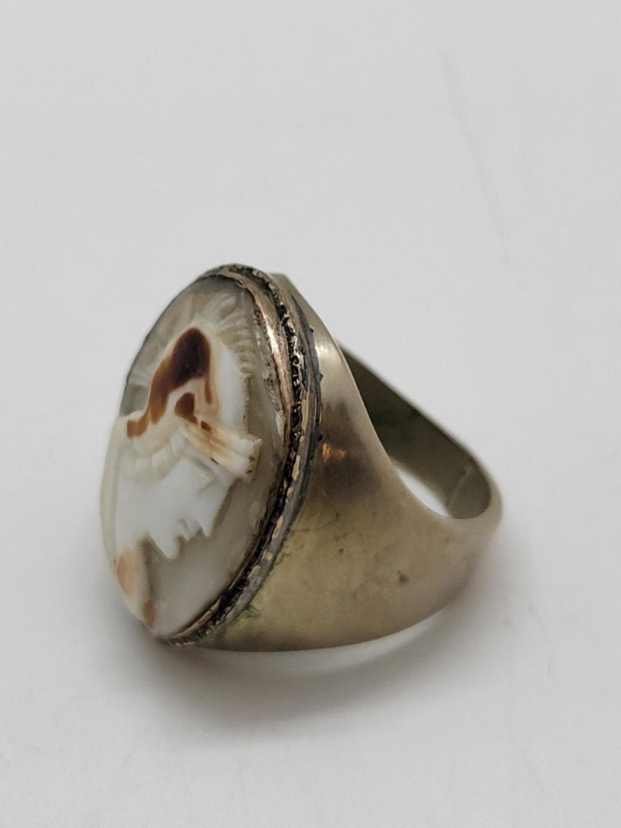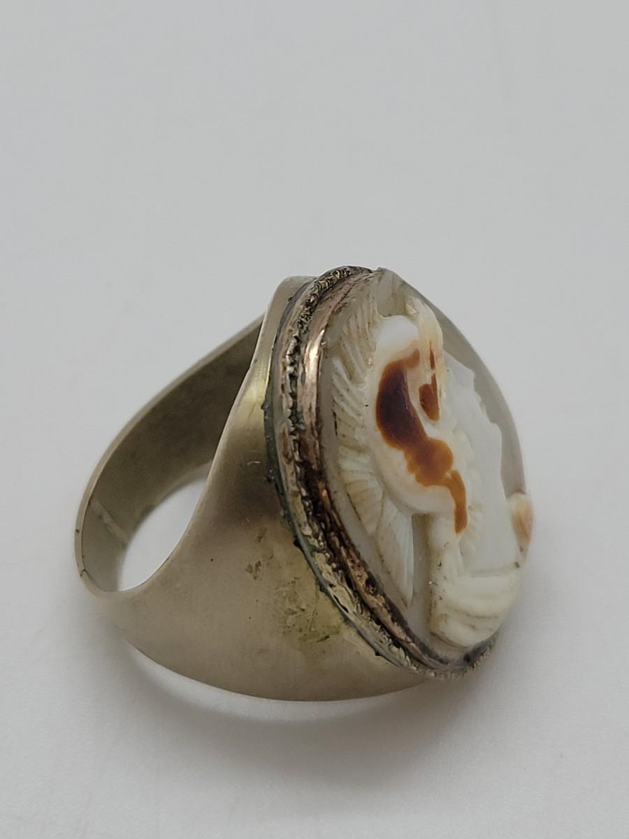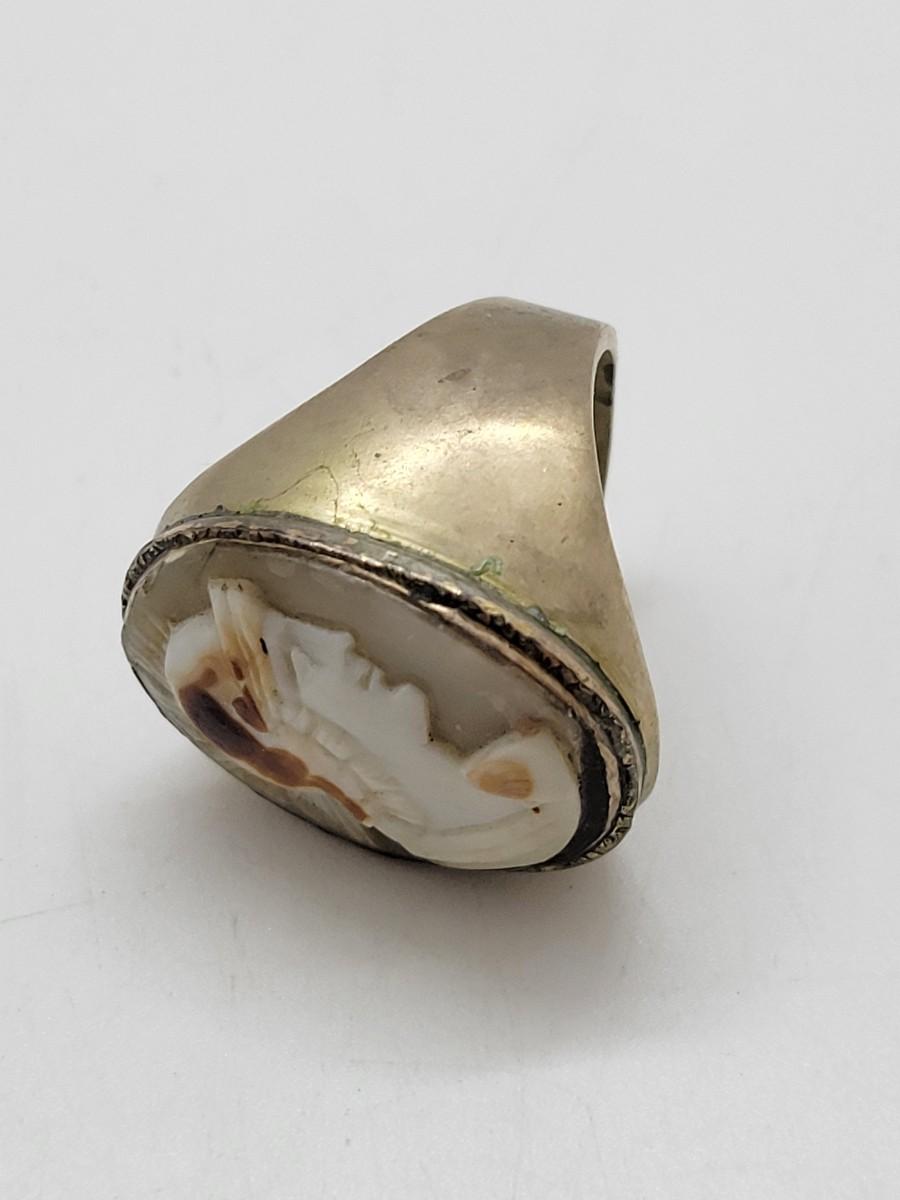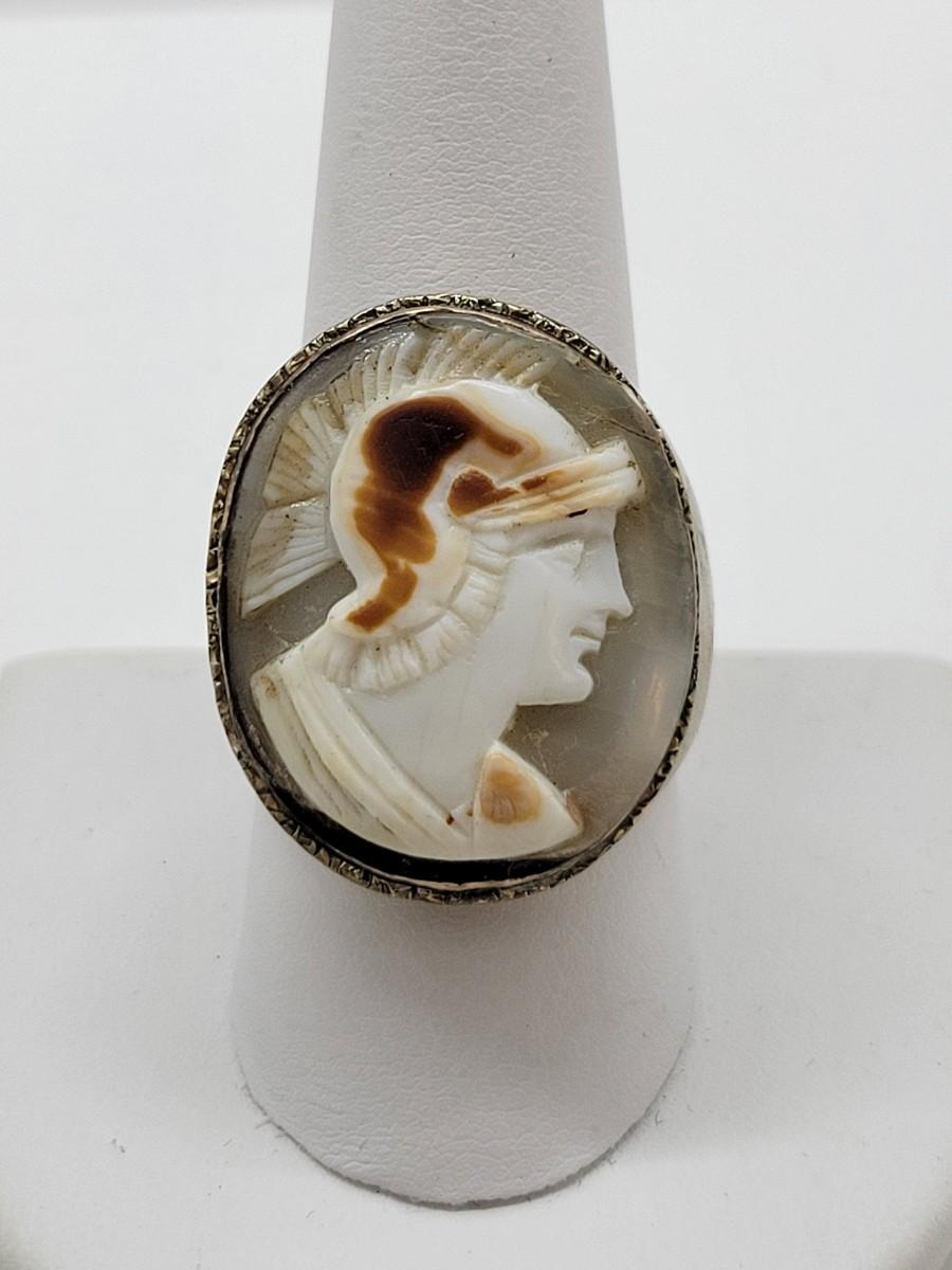 LOT 128: Silver Tone Sardonyx Shell Cameo Ring - Roman Gladiator