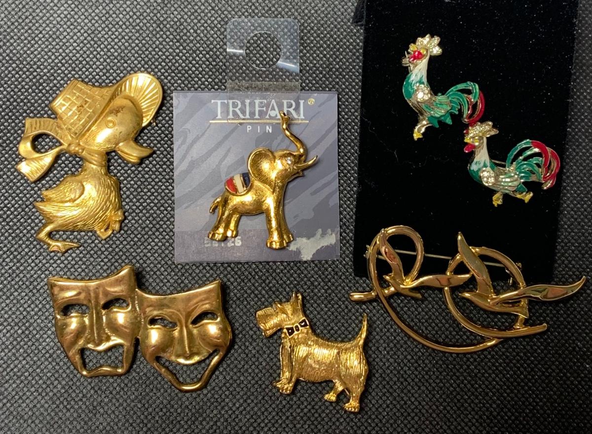 LOTJ500: Trifari and Other Goldtone Pins