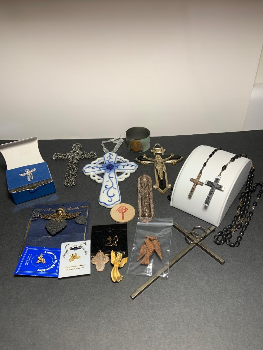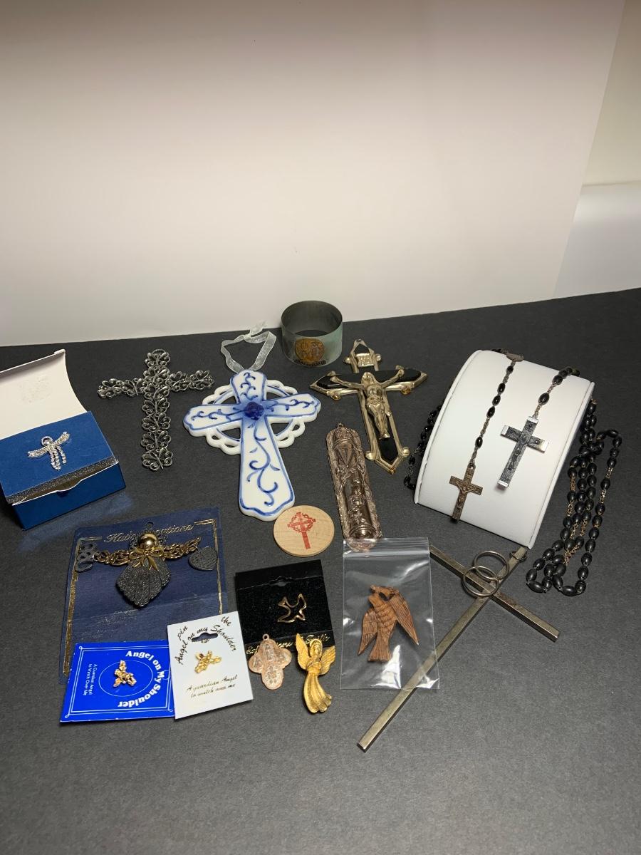 LOTJ24: Collection of Religious Items Including Rosaries, Crucifixes Pins and More