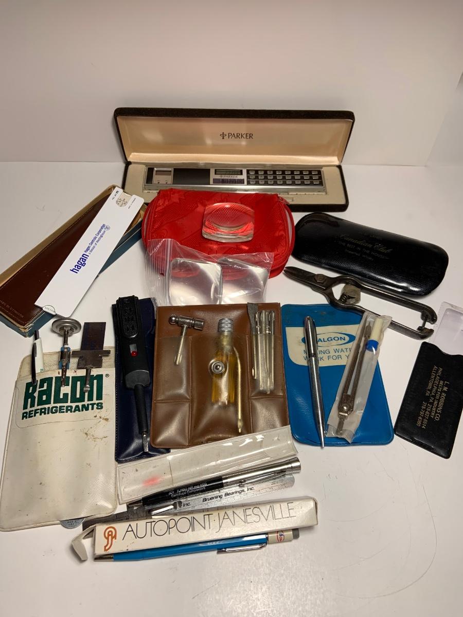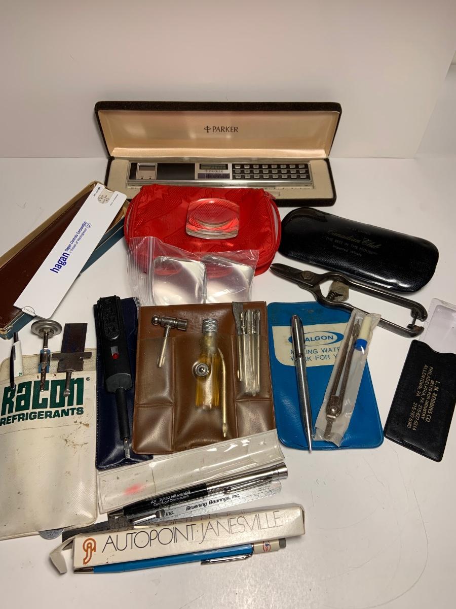 LOTJ:26: Vintage Precision Tools Caculators Pocket Portectors and Much More