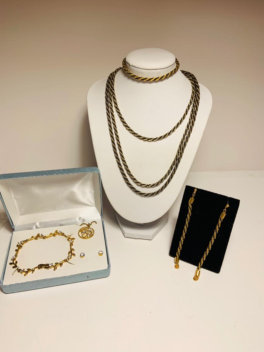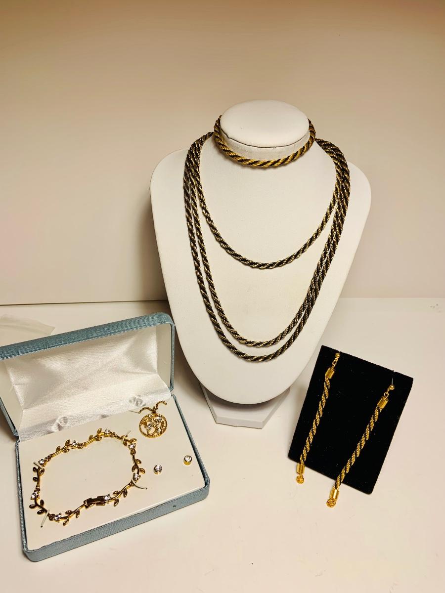 LOTJ20: Black and Goldtone Necklaces, Earrings and Braclet and a Costume Jewlery Gift Set
