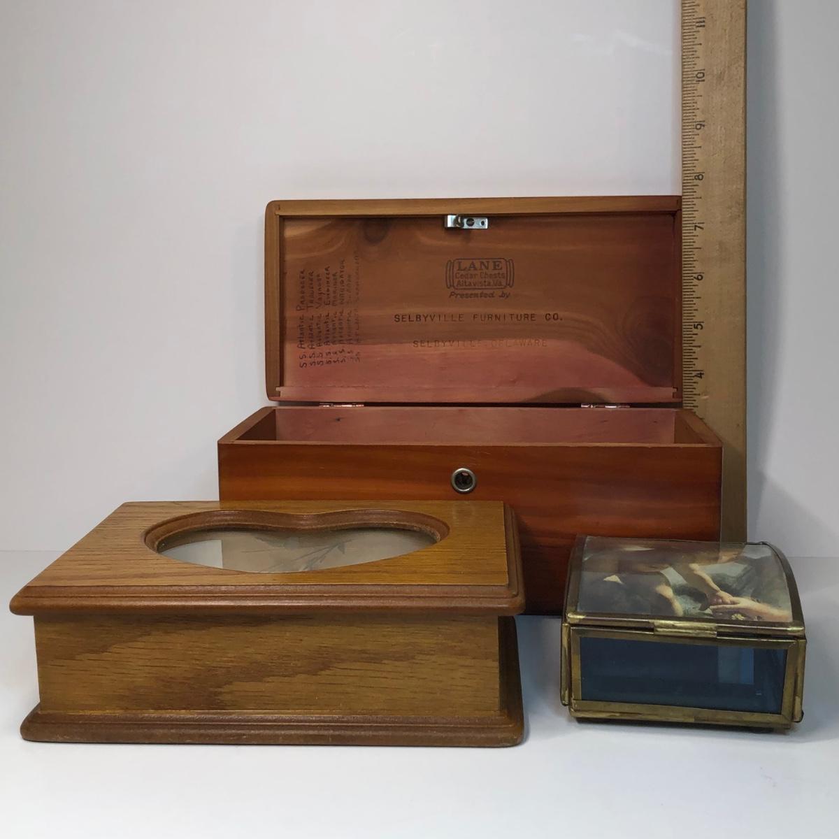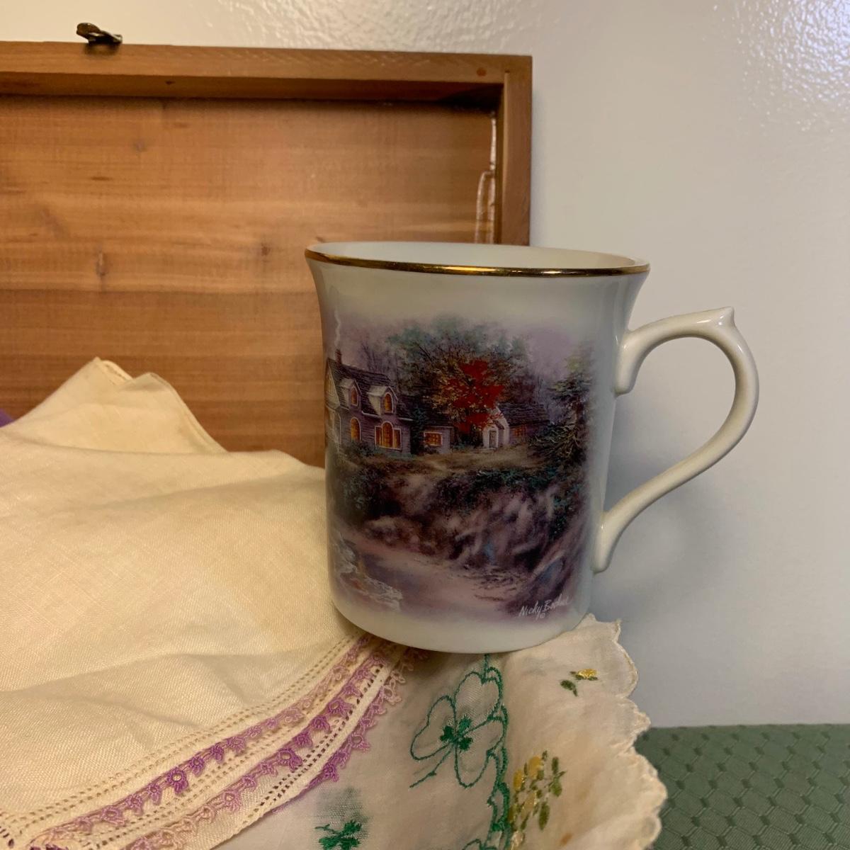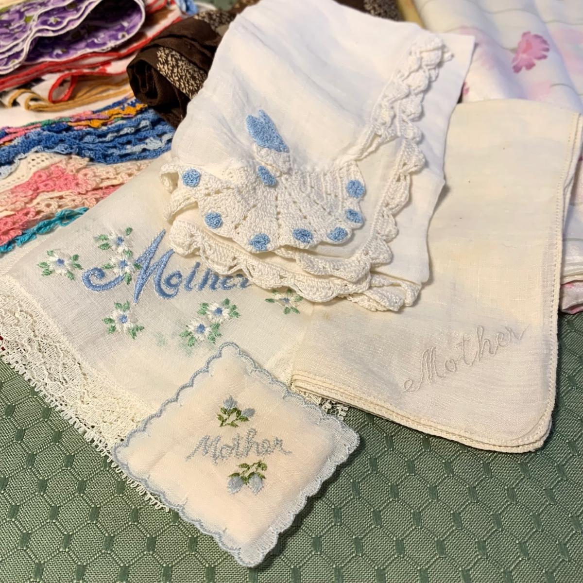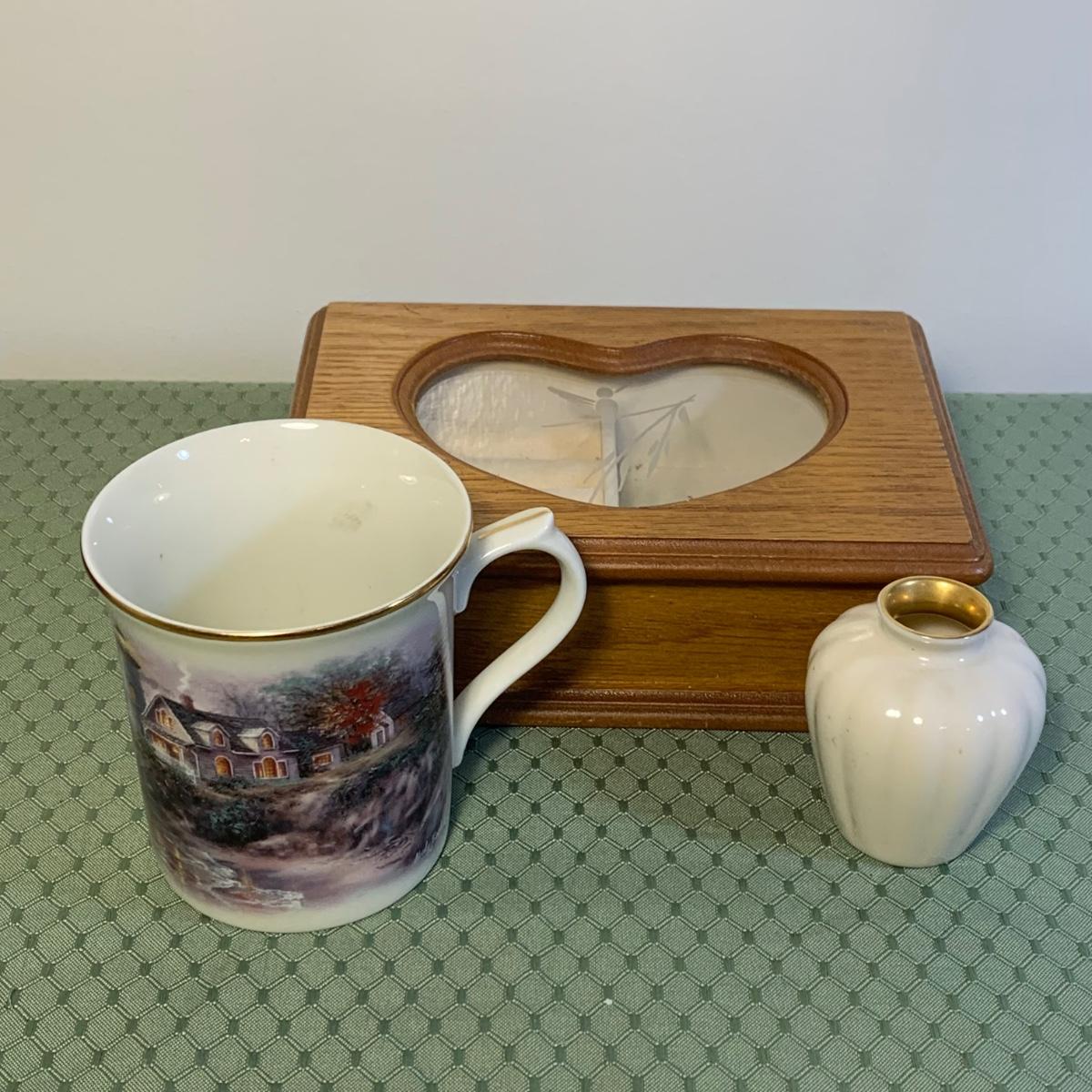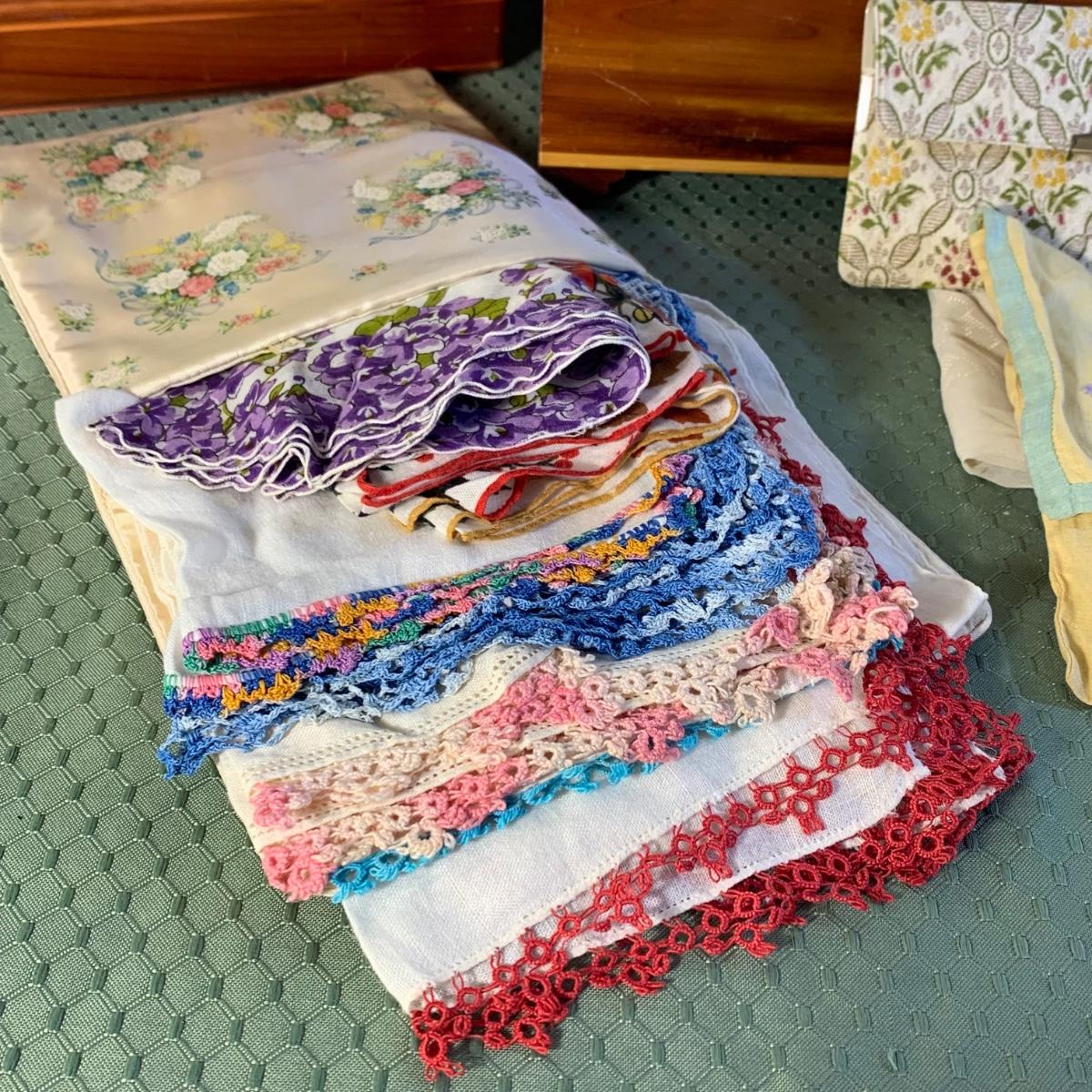 LOT 31: Vintage Ladies Handkerchiefs, Lenox Teacup & 24k Rimmed Vase, Lane Cedar Trinket Box, "Mother" Cedarn Trinket Box & More