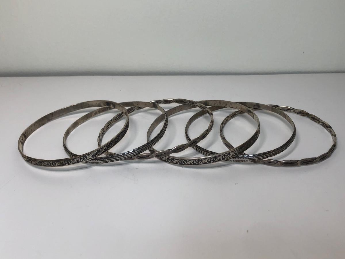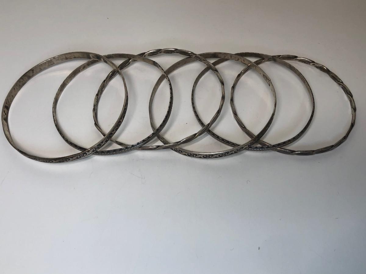 LOT 34M: 6 Vintage Sterling Bangle Bracelets