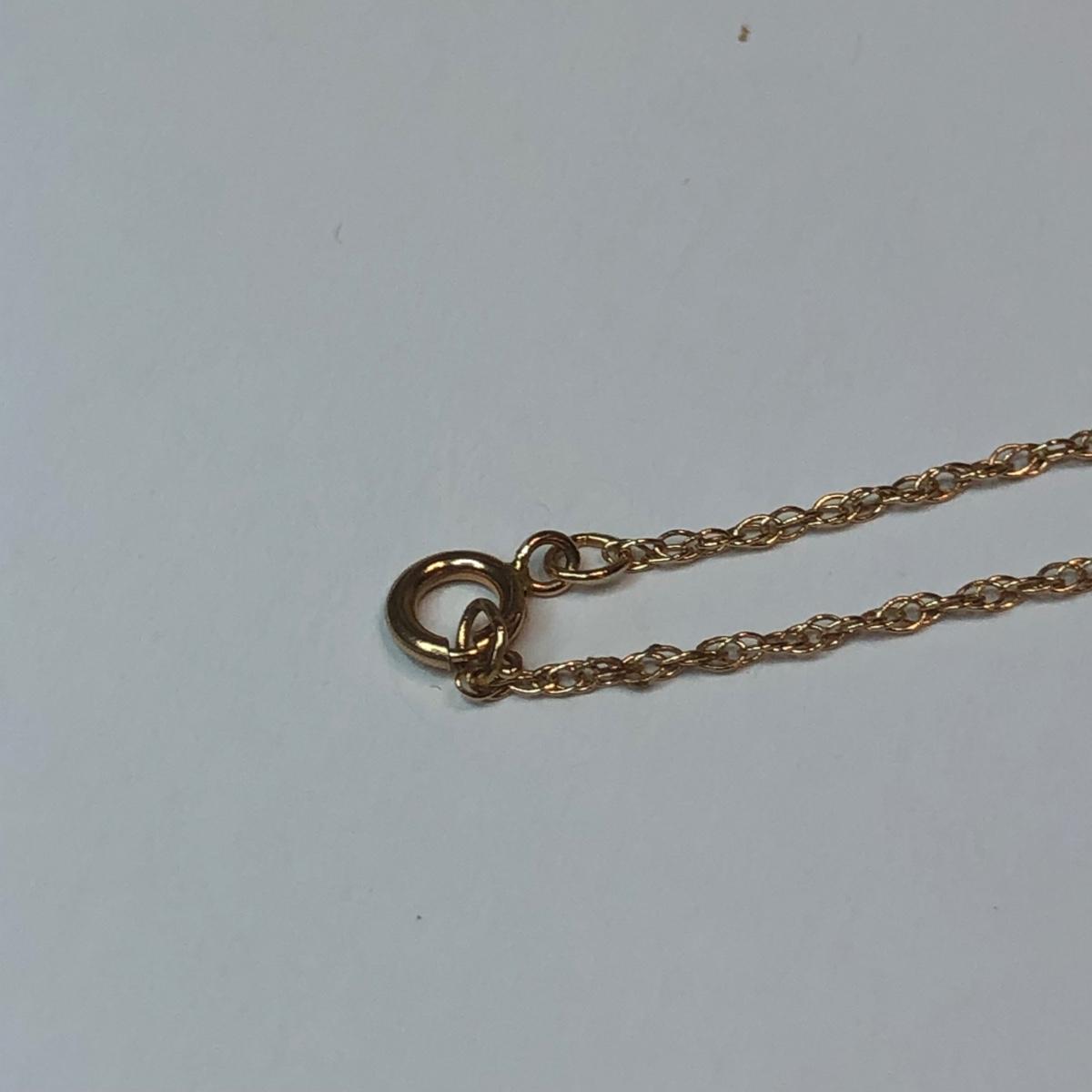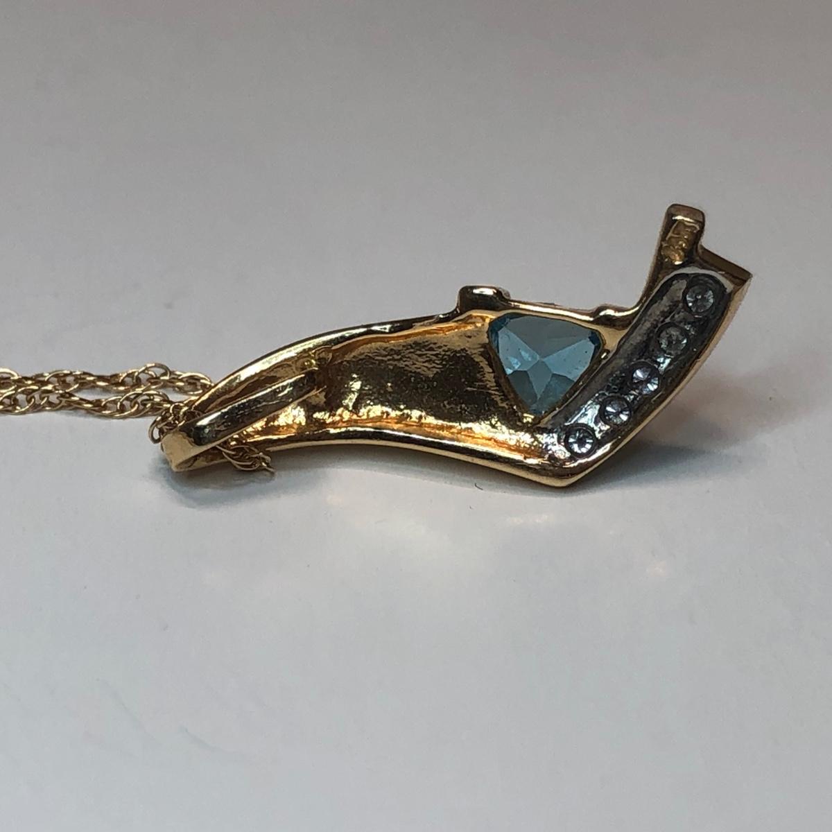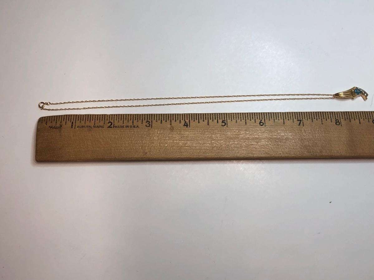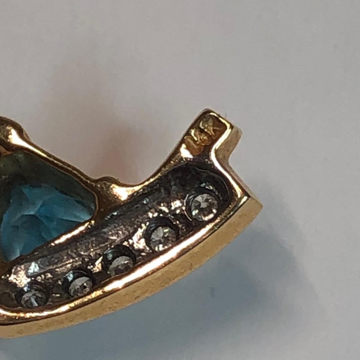 LOT 42M: 14K Gold Blue Topaz & Diamond Chip Pendant Necklace (tw: 2.88g)