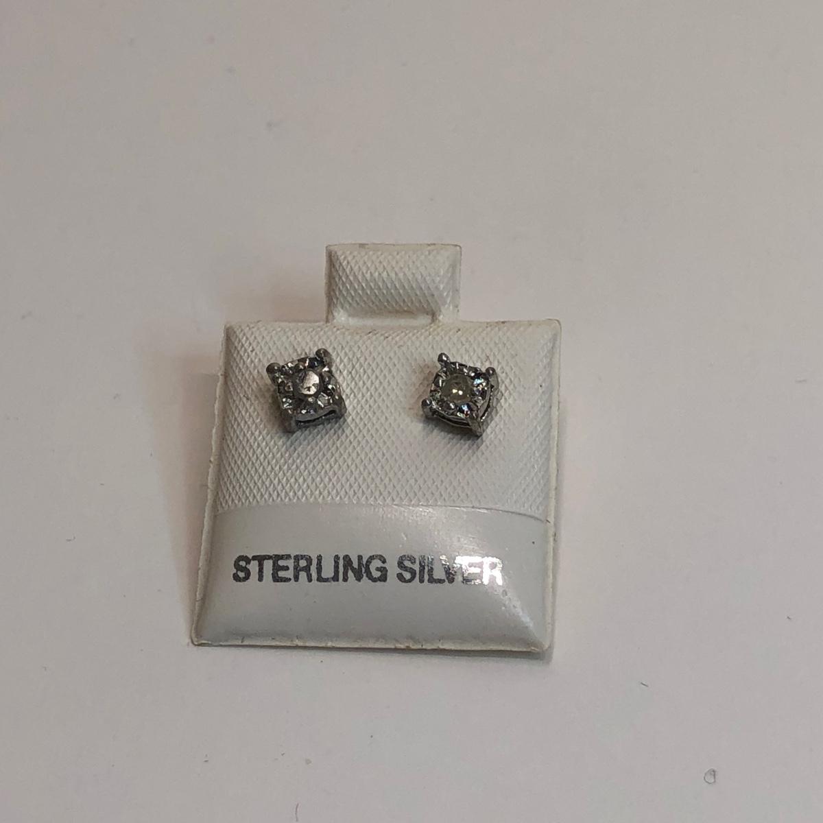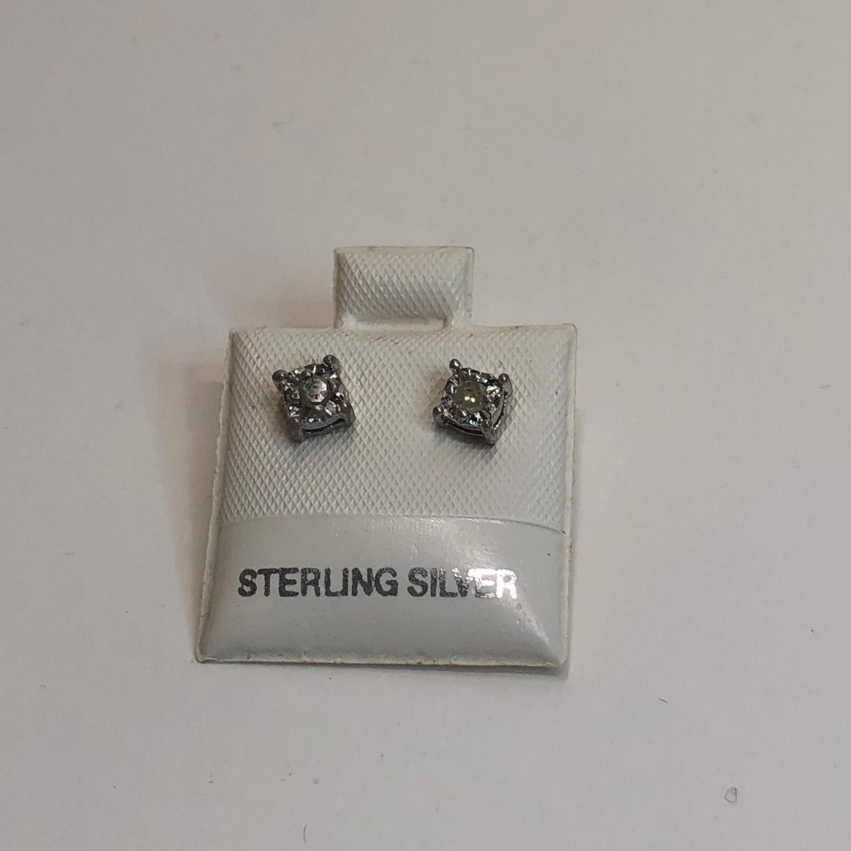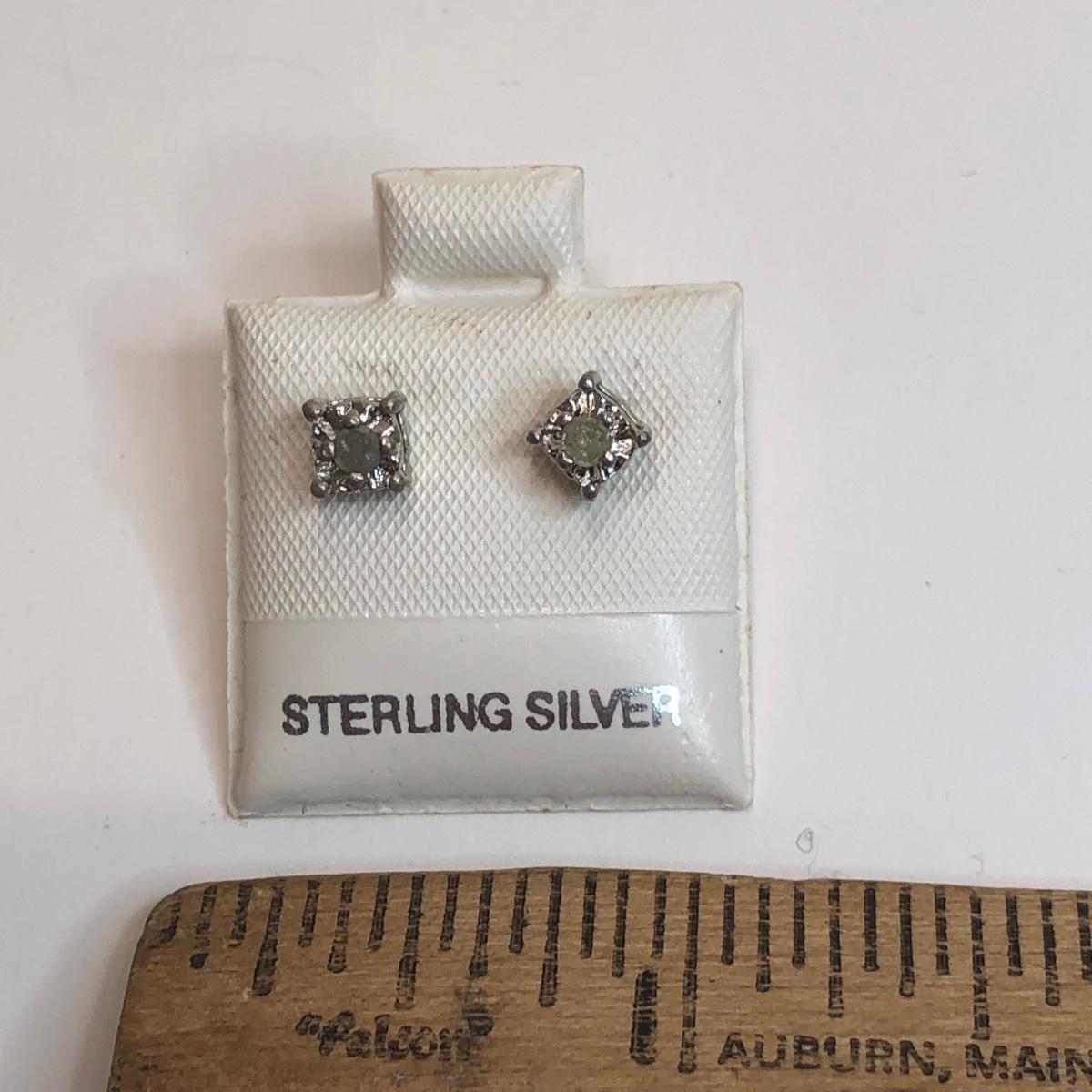 LOT 50M: Sterling Silver Diamond Pierced Earrings