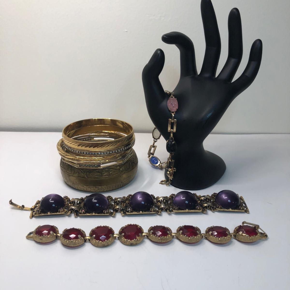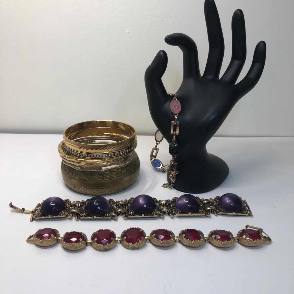 LOT 51: Vintage Bracelets w/ Bangles, Scarab Bracelet & More