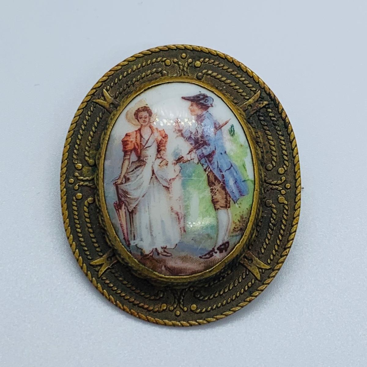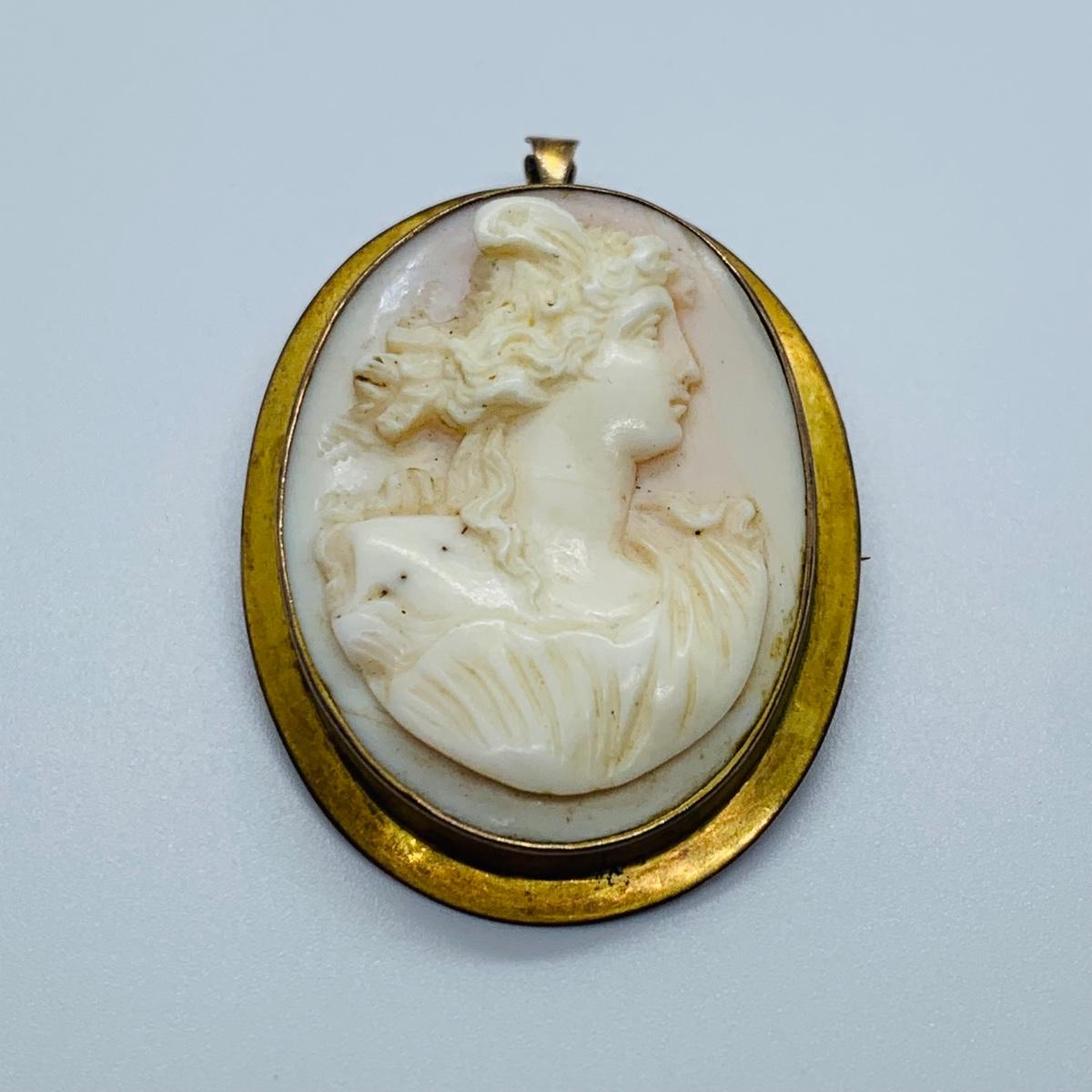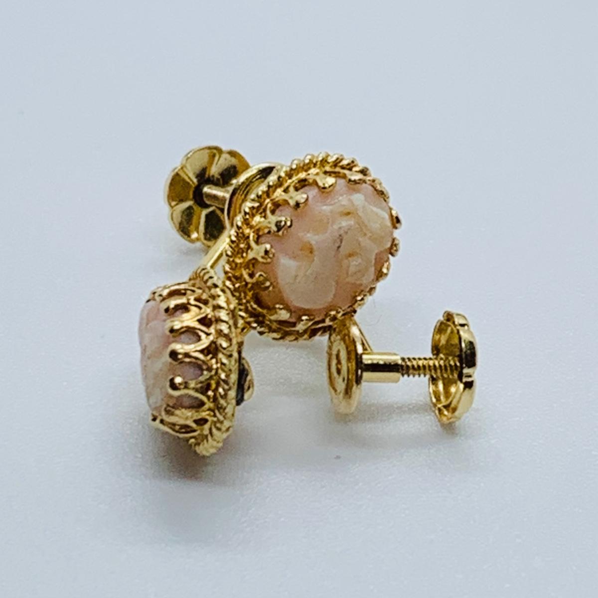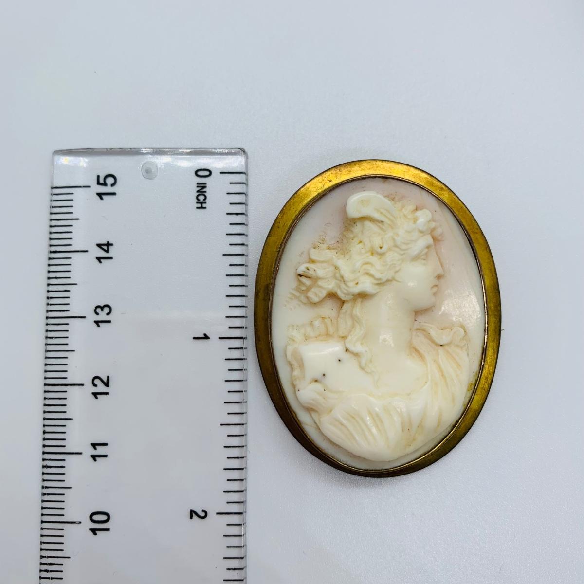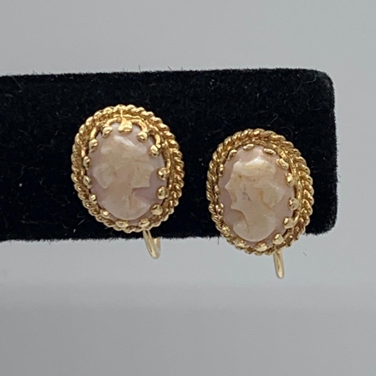 LOT 60: 14K Cameo Screwback Earrings, Antique Hand Painted Porcelain Victorian Brooch, Cameo Pendant