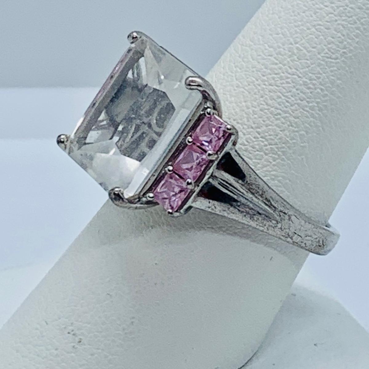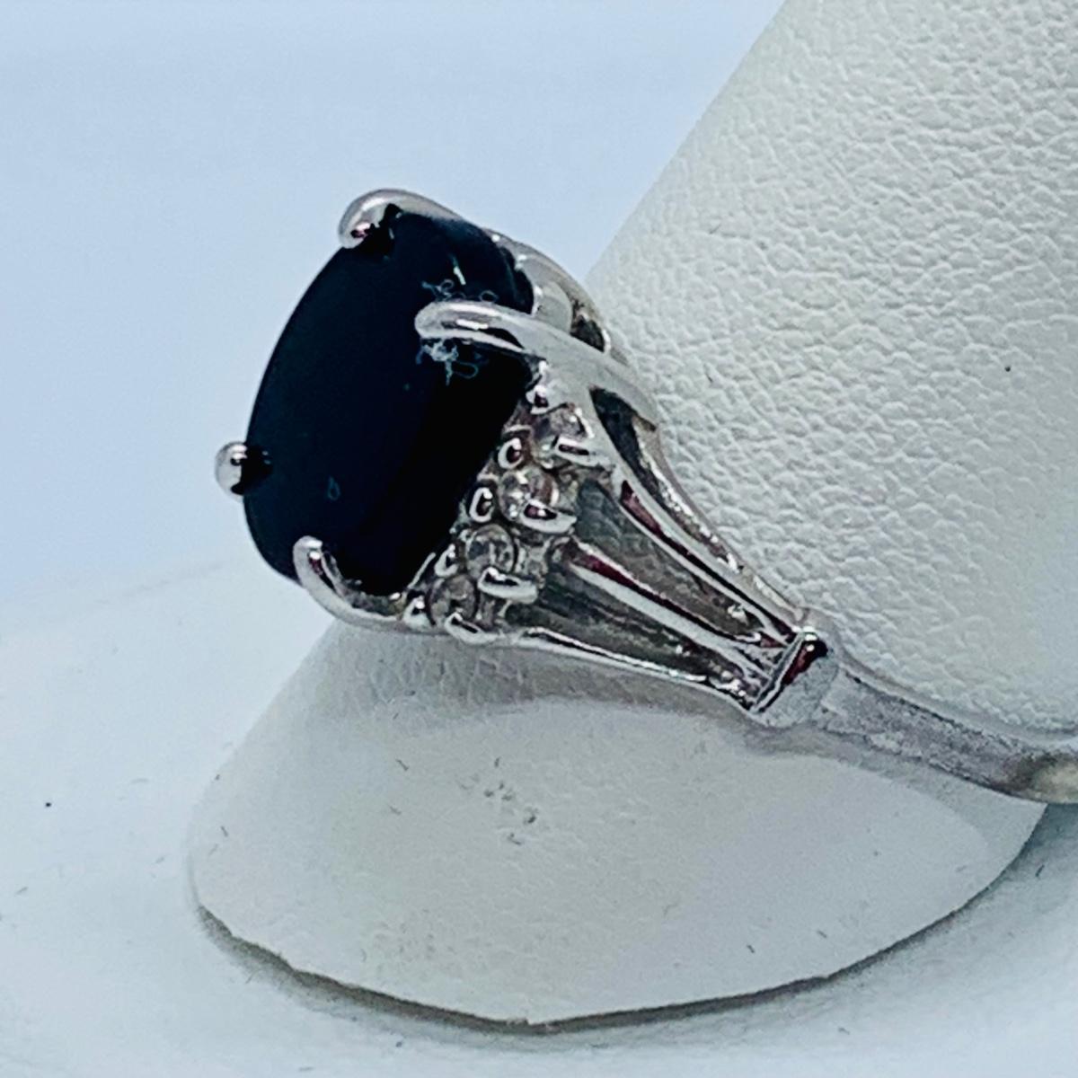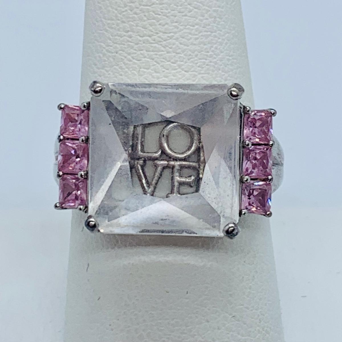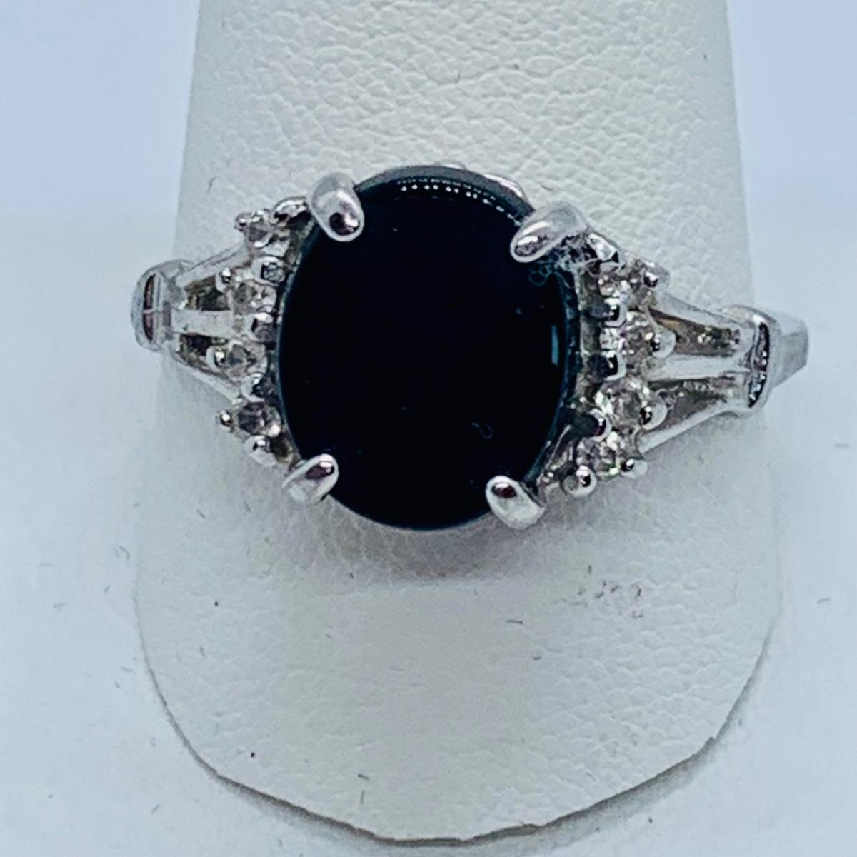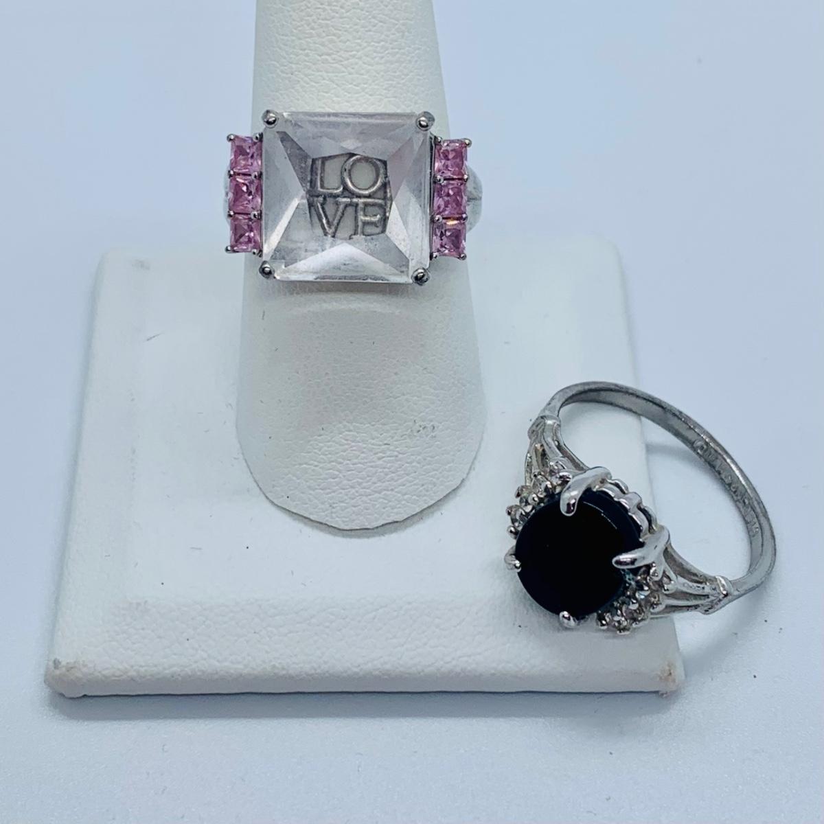 LOT 62: Lenox Crystal “Love” Sterling Silver Cocktail Ring sz8.5 and Sterling Silver Onyx Cocktail Ring sz11.5