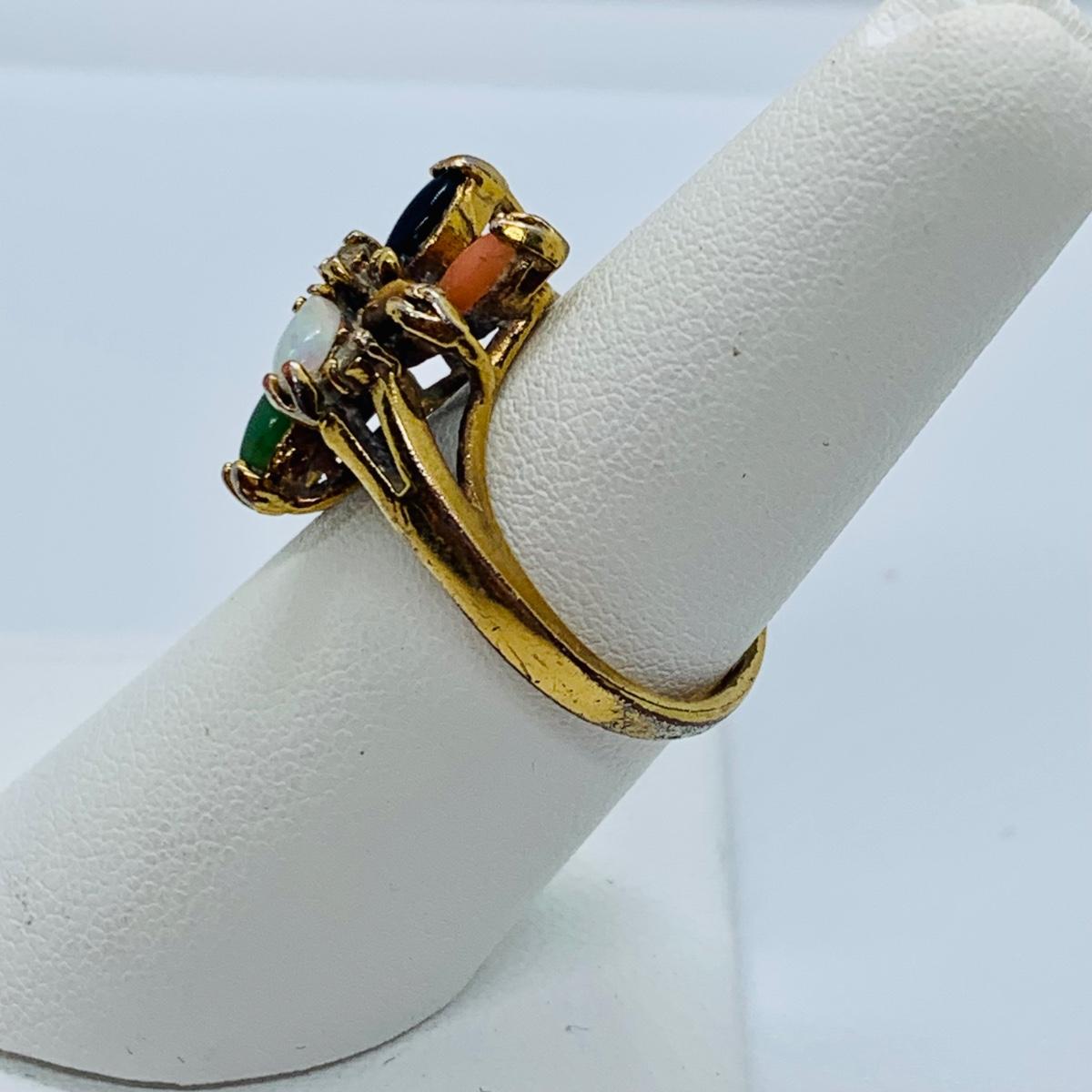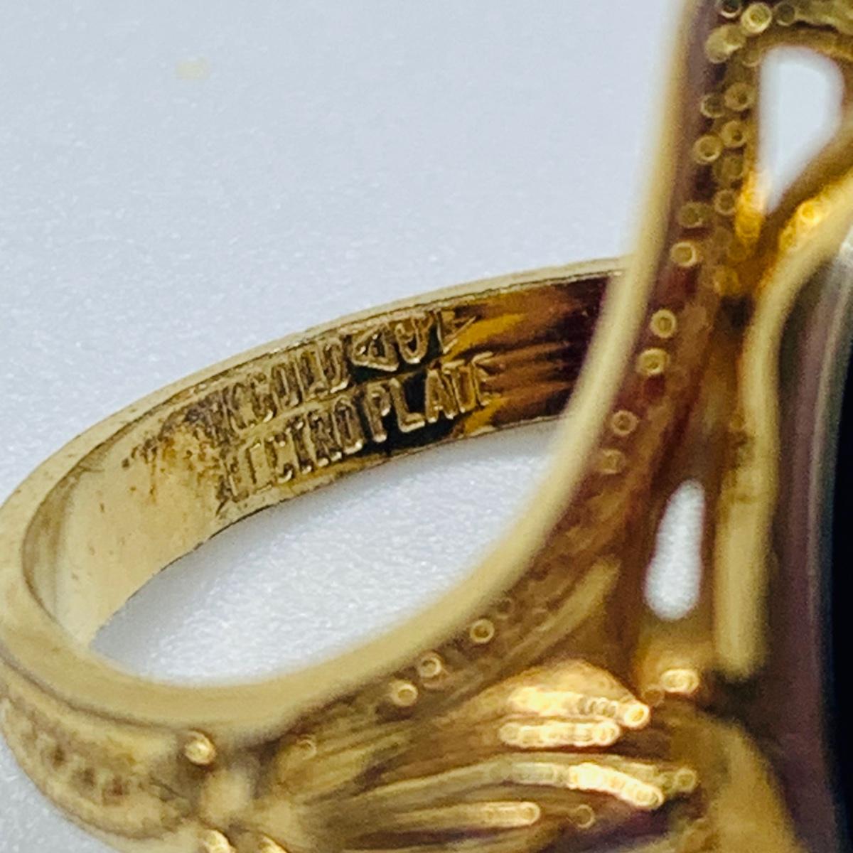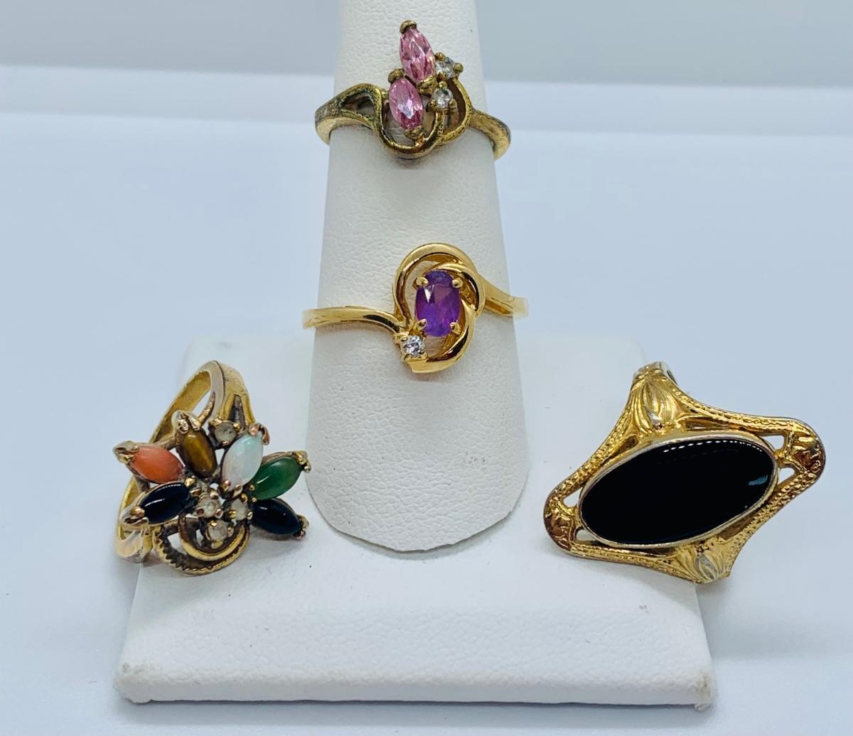 LOT 64: Gold Tone Ring Collection: Multi Stone, Amethyst, Pink Tourmaline & Onyx Faux Stones