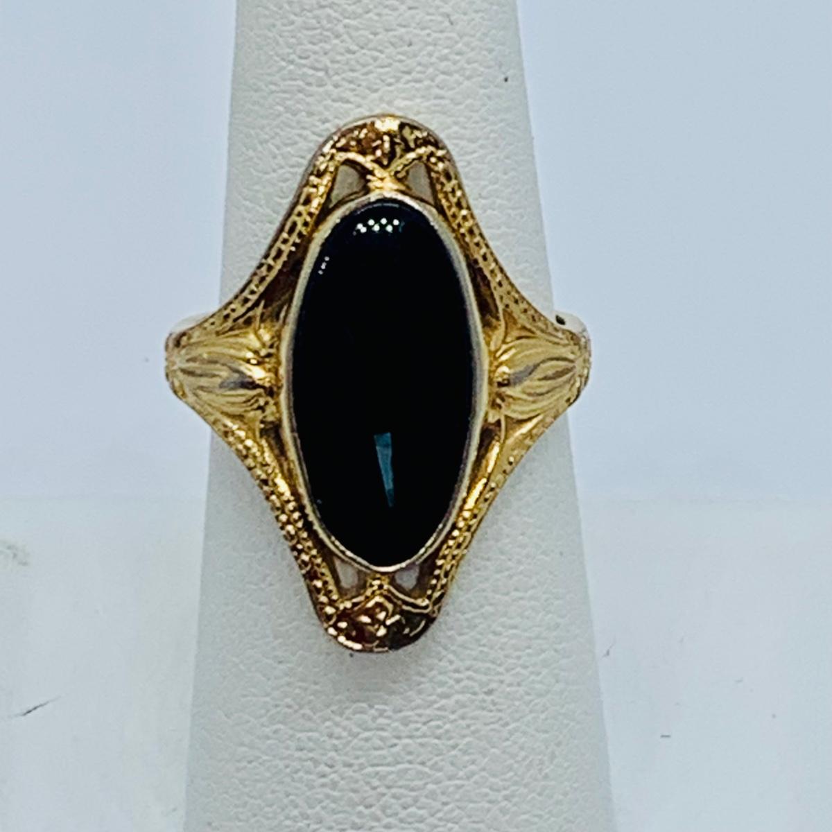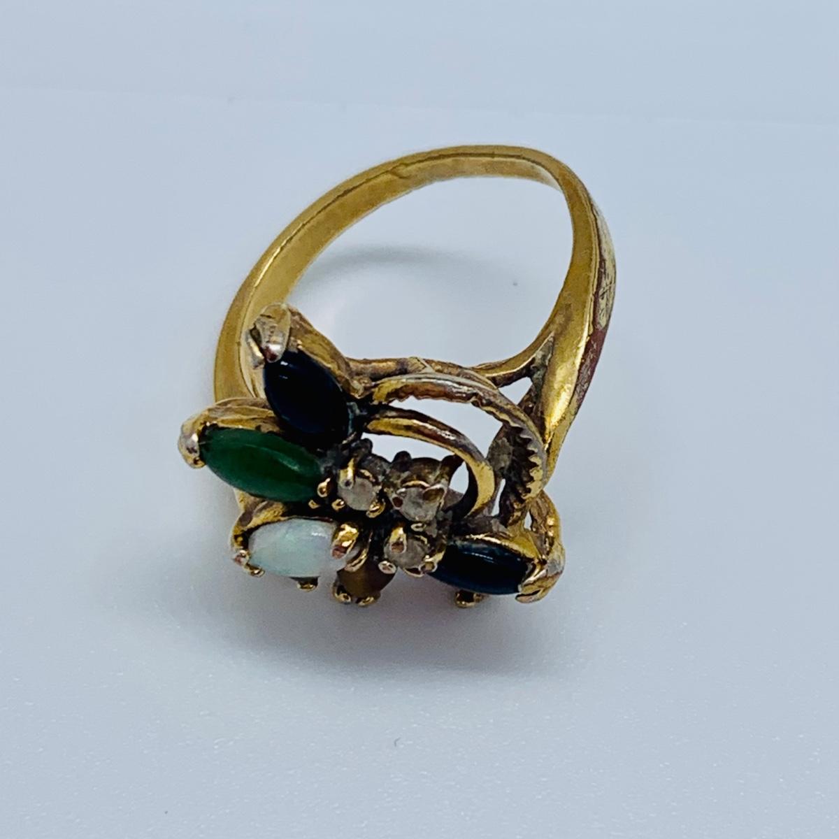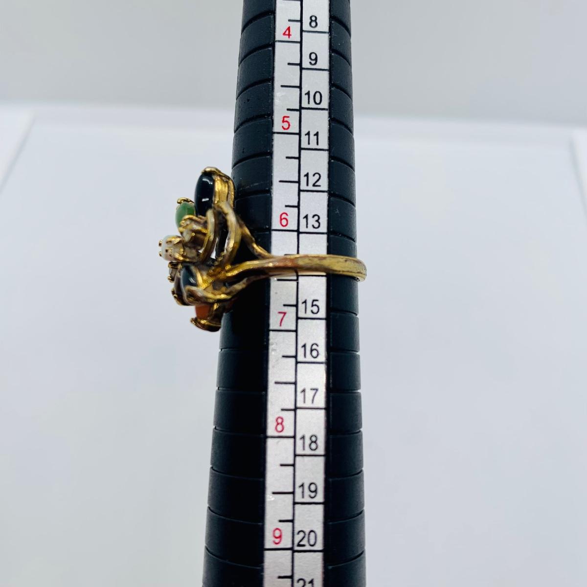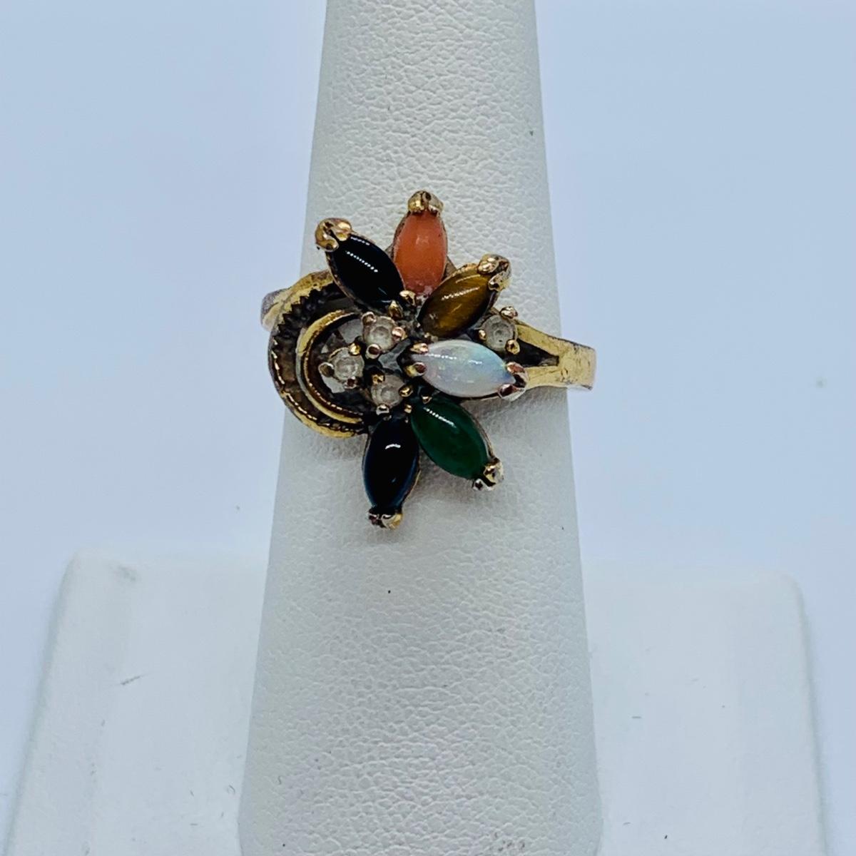LOT 64: Gold Tone Ring Collection: Multi Stone, Amethyst, Pink Tourmaline & Onyx Faux Stones