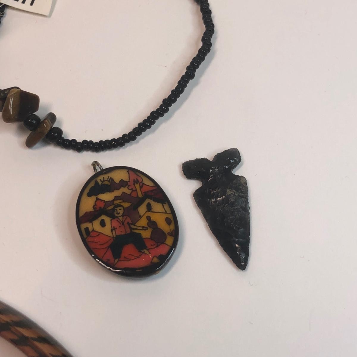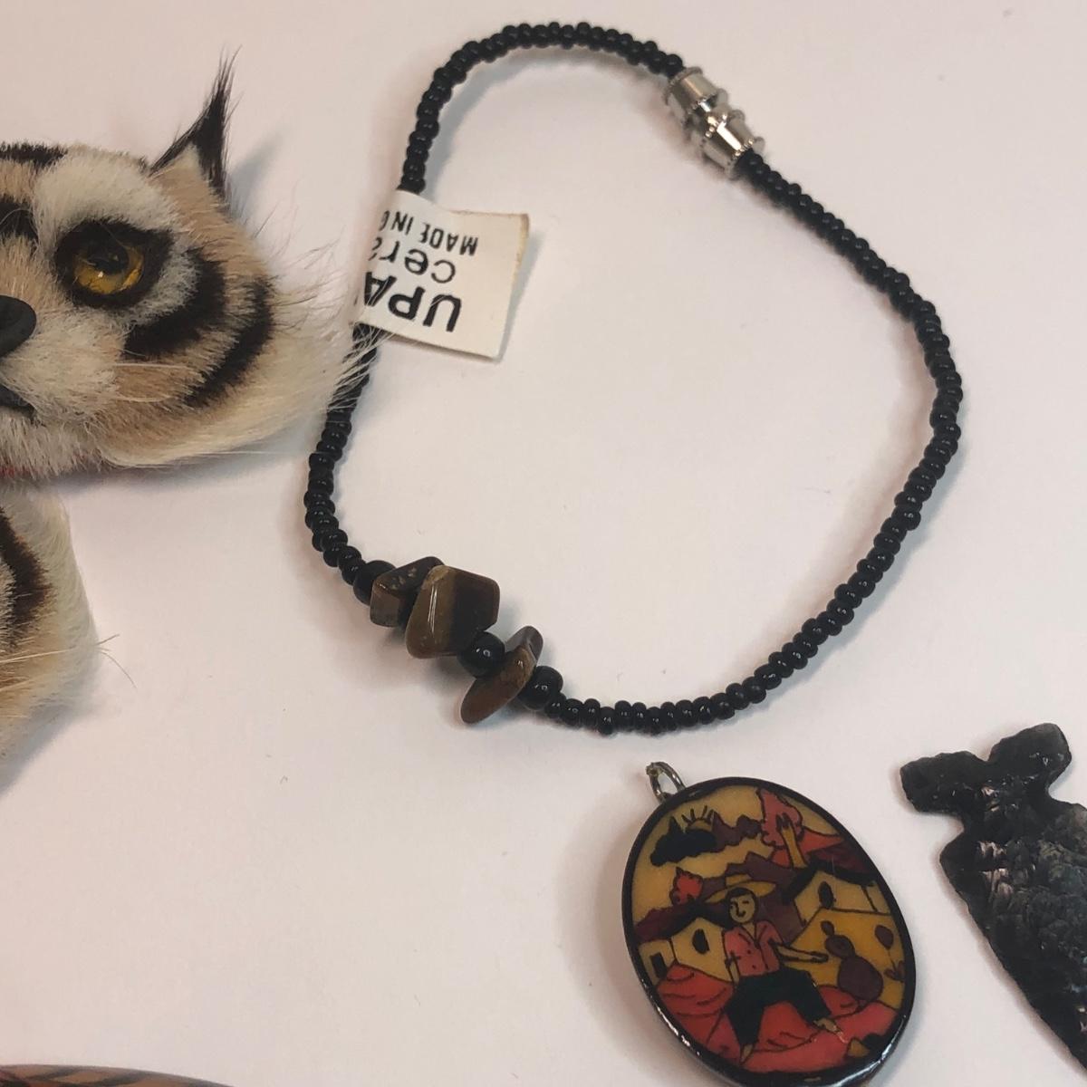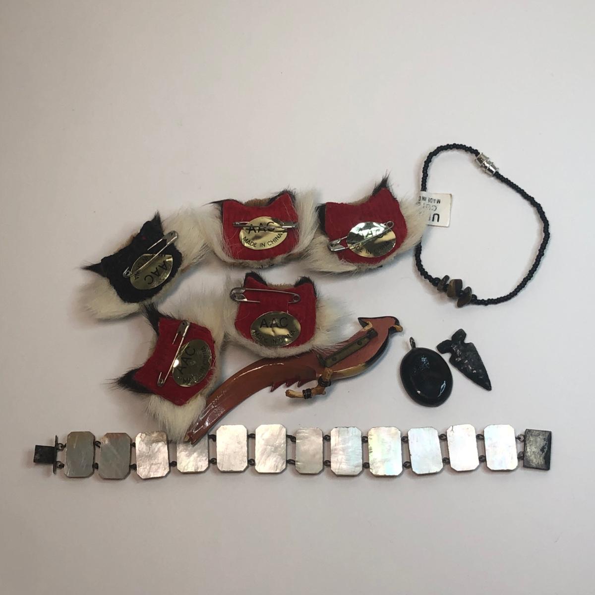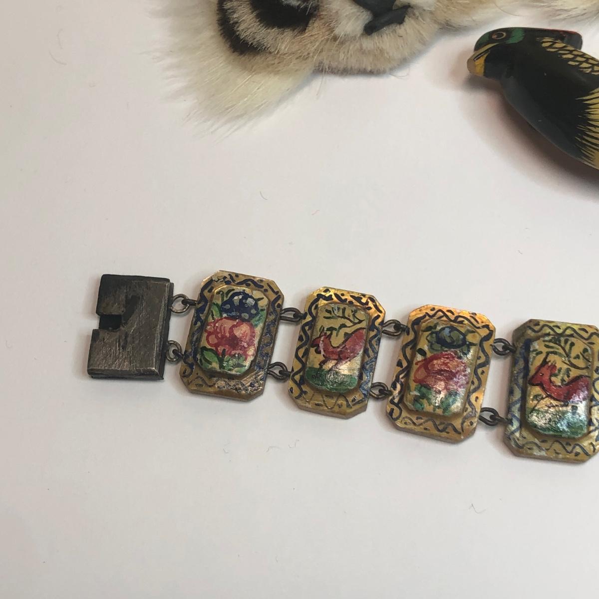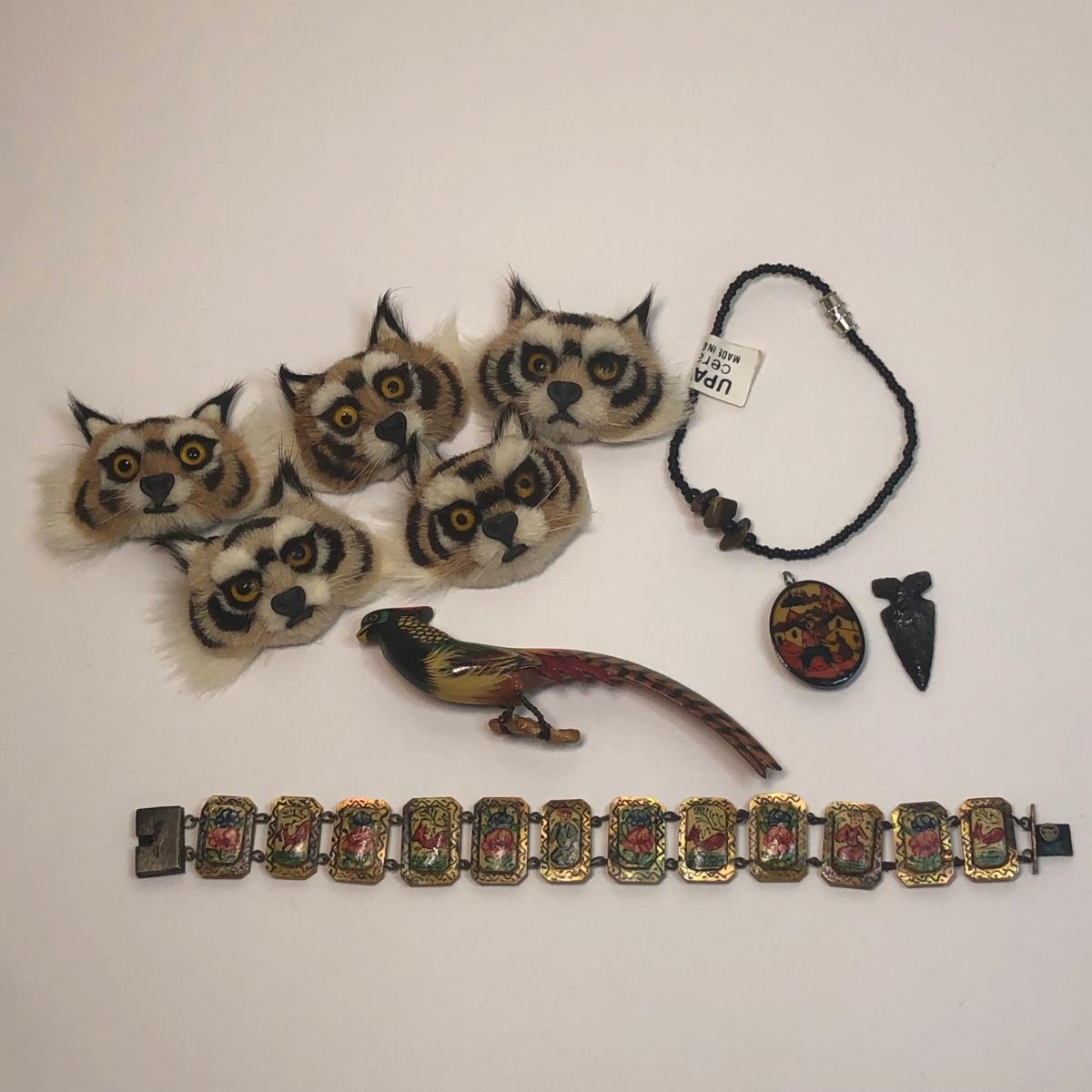 LOT 88M: Vintage Handpainted Mother of Pearl Bracelet w/ Non-metallic Clasp, Carved Pheasant Pin & More