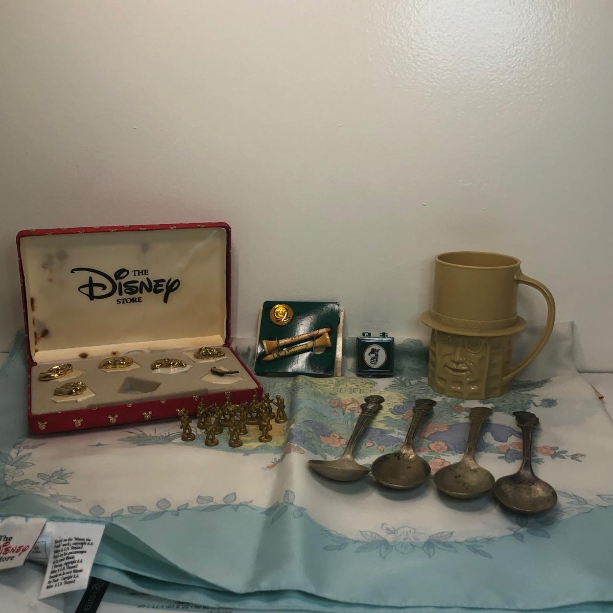 LOT 99: Winnie the Pooh Scarf, Mr. Peanut Cup, Disney Store Dwarf Pins, Mickey Golf Pin & More