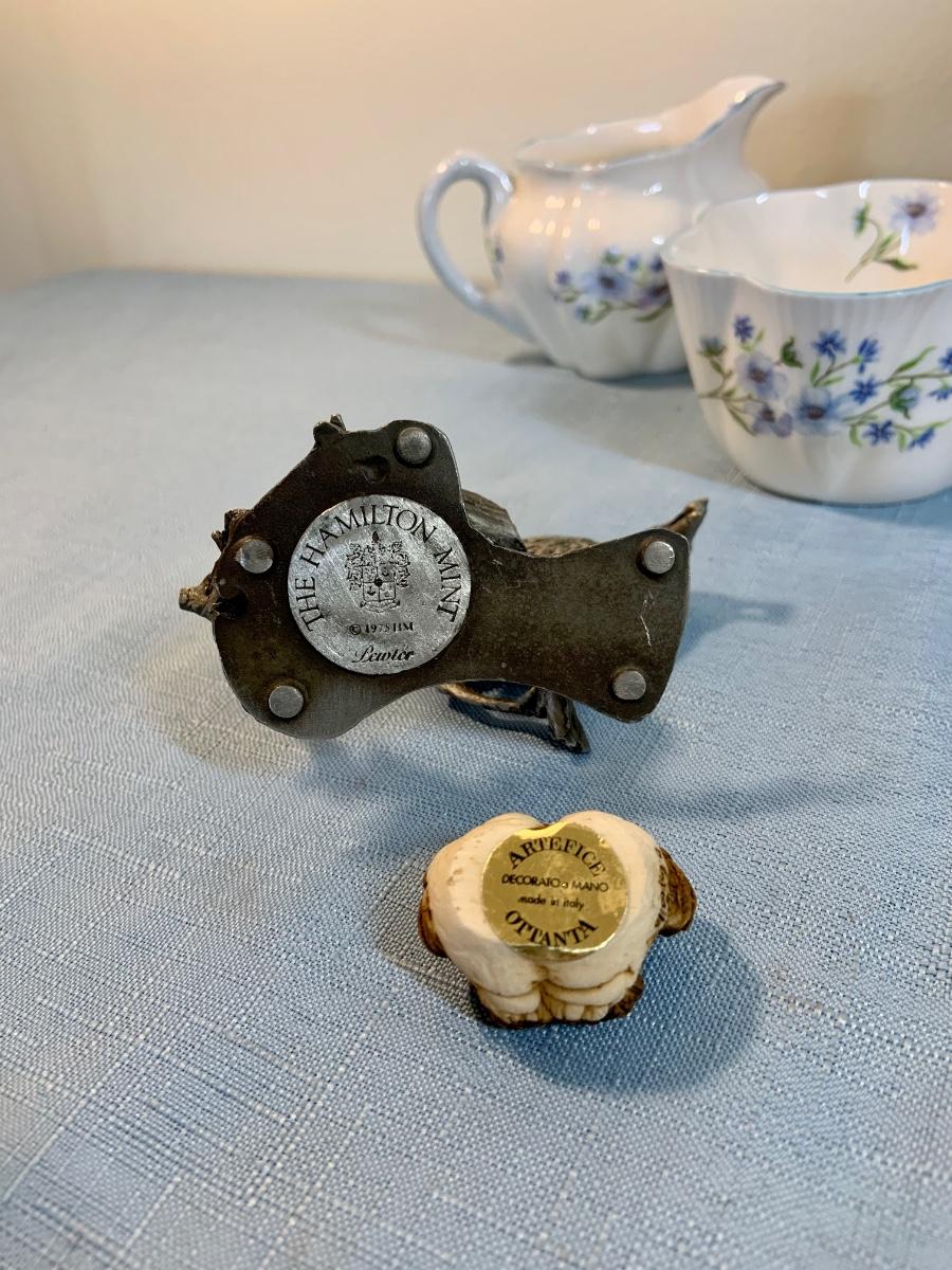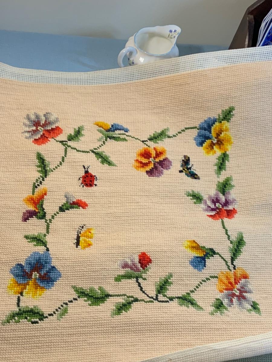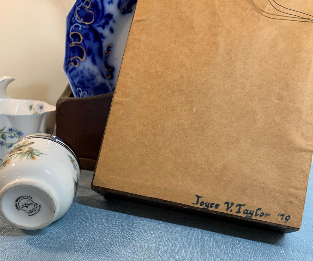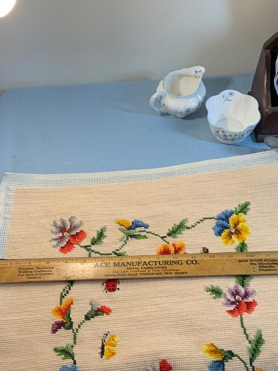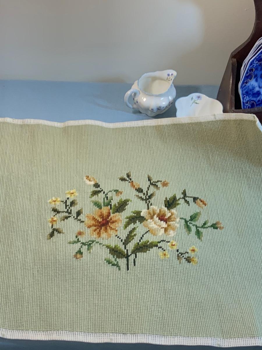 LOTJ146G: Handmade Needlework, Spoons & Spoon Rest, Bird Figurines Including Goebel and Hamilton Mint:  Blue China  Plates; a Shelly China Cup & Creamer and More
