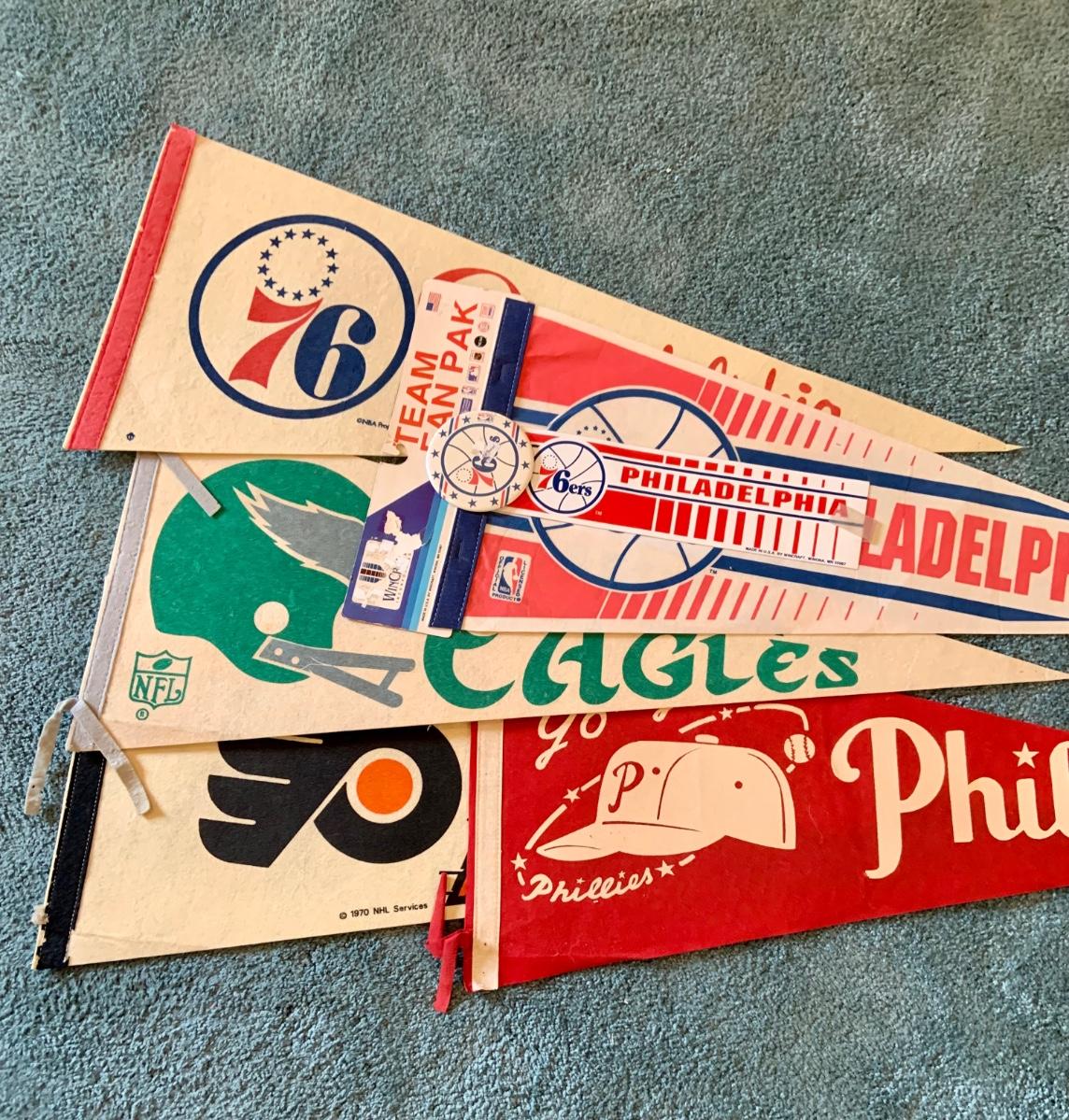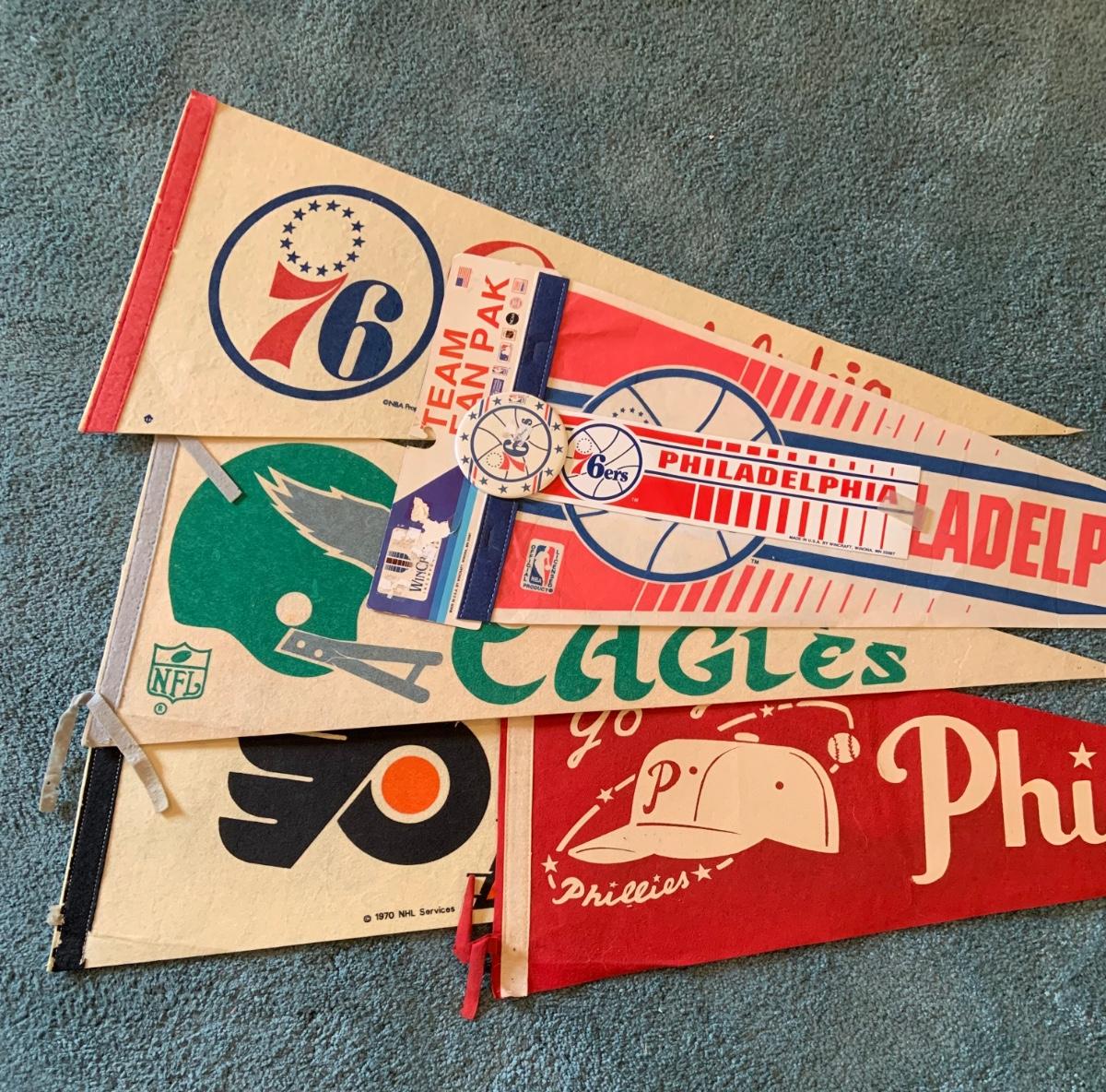 LOTJ147G: Vintage Philadelphia Sport Teams Collectable  Pennants - Eagles, Flyers, Phillies and 76er