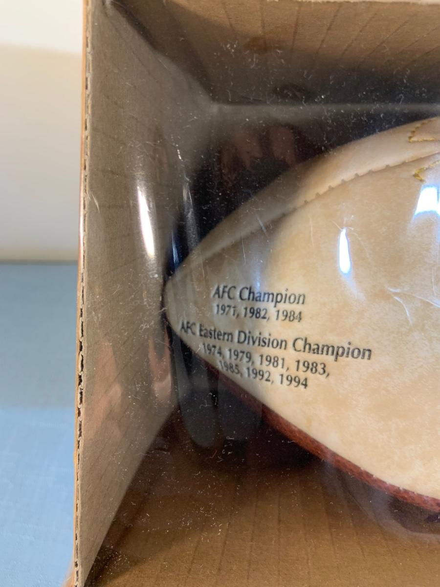LOT 150G: Sports Memorabillia Including a Vintage Miamia Dophines Football, Hockey Figures, Mini Helmets and Mugs Unopened Packs of Cards and More
