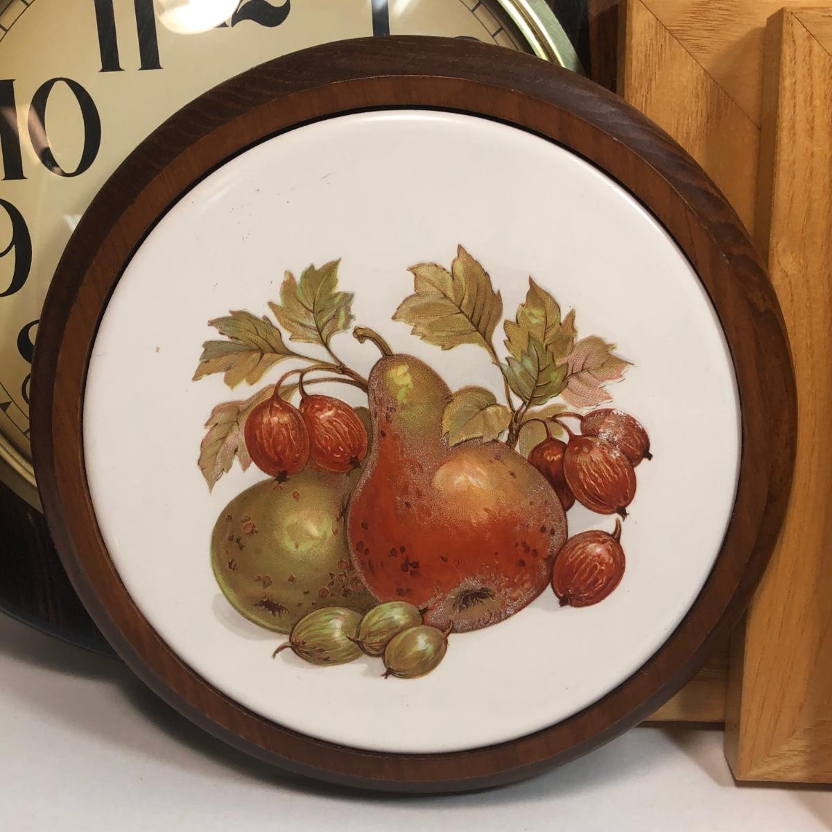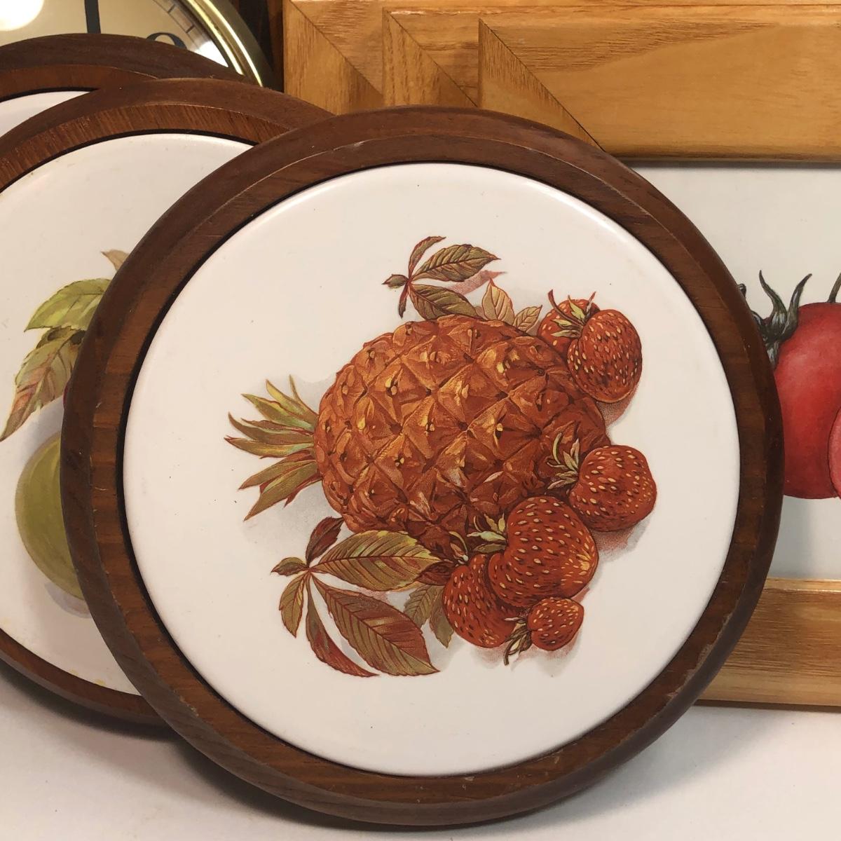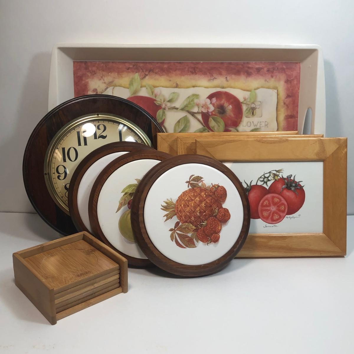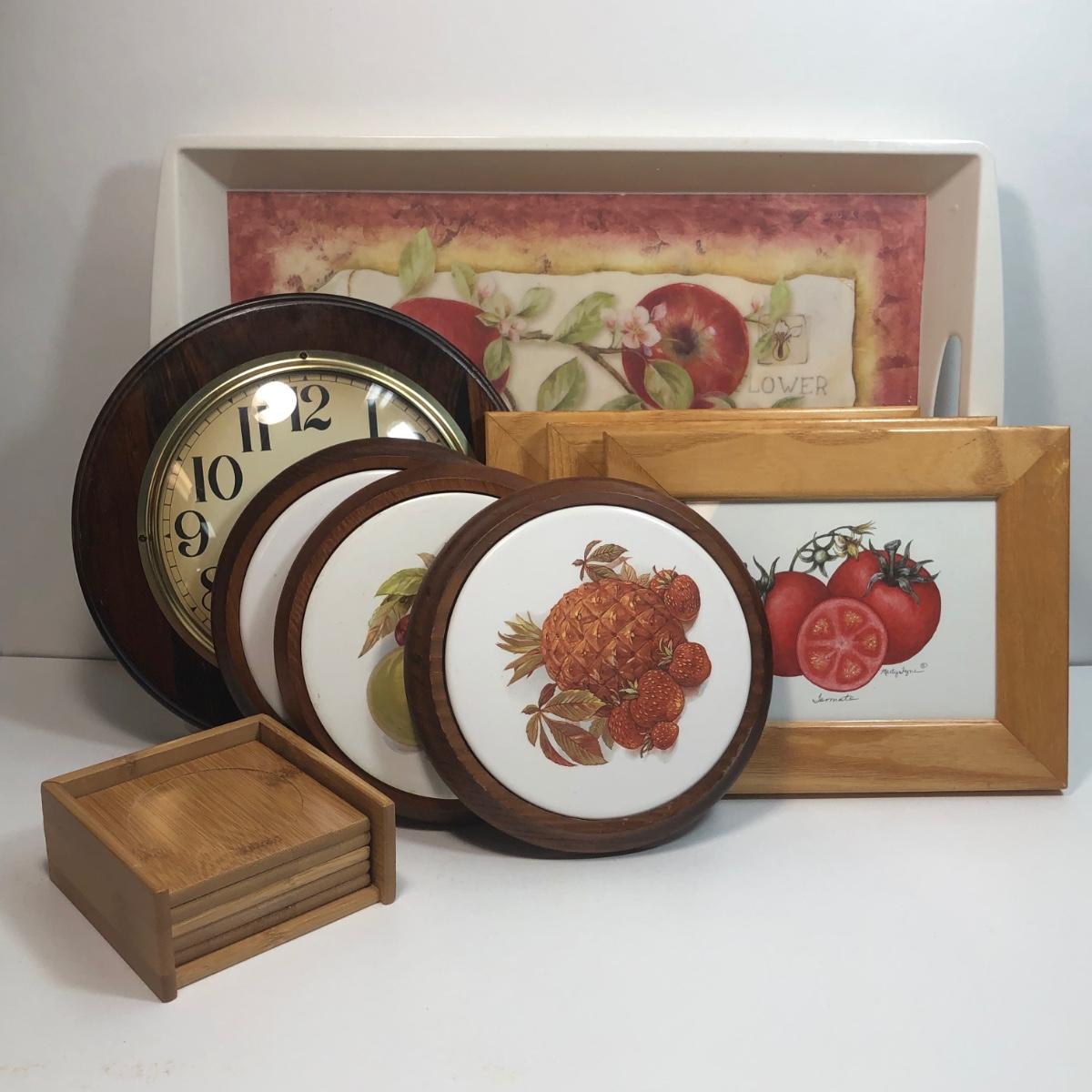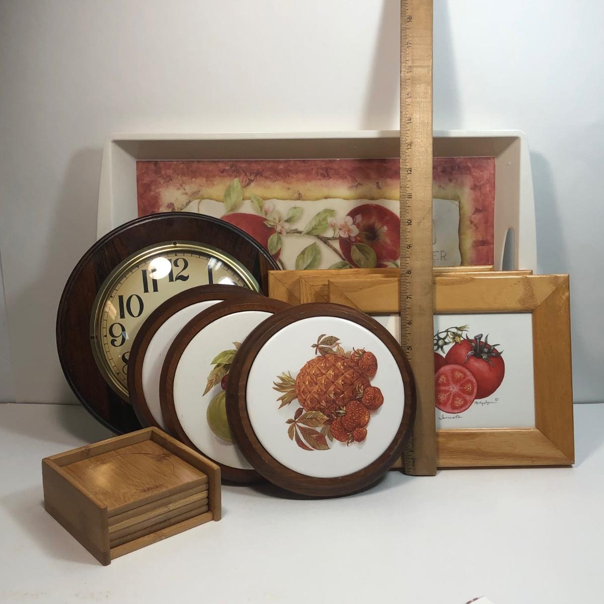 LOT 8: Fruit & Vegetable Home Decor w/ Tradition Quartz Clock & Core Coasters