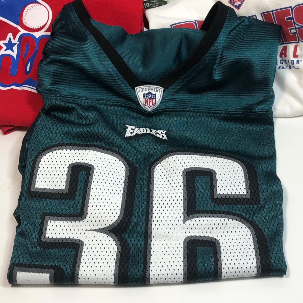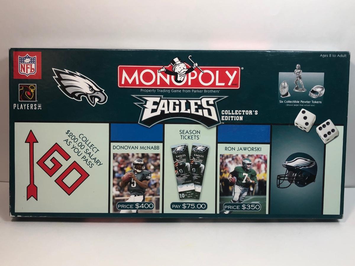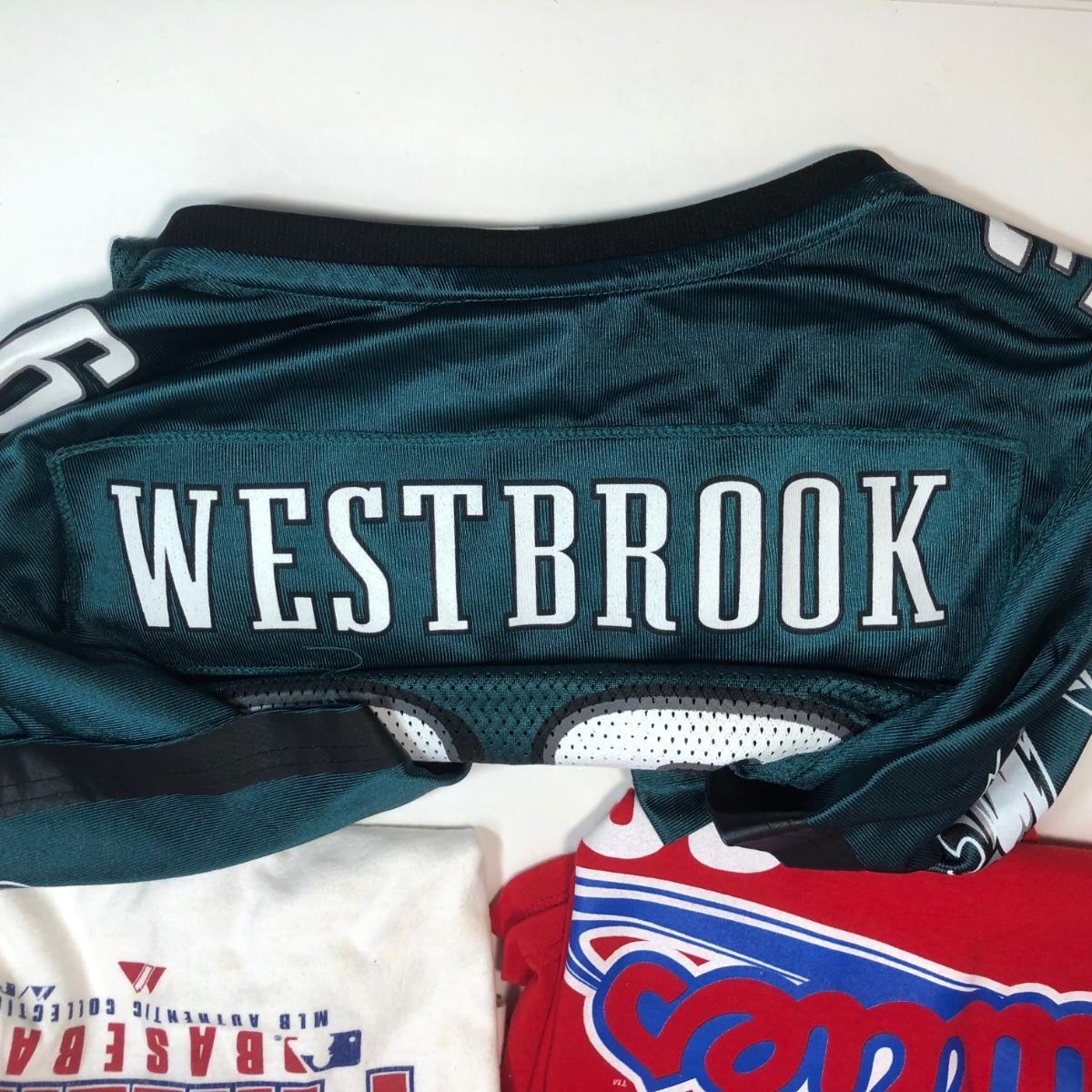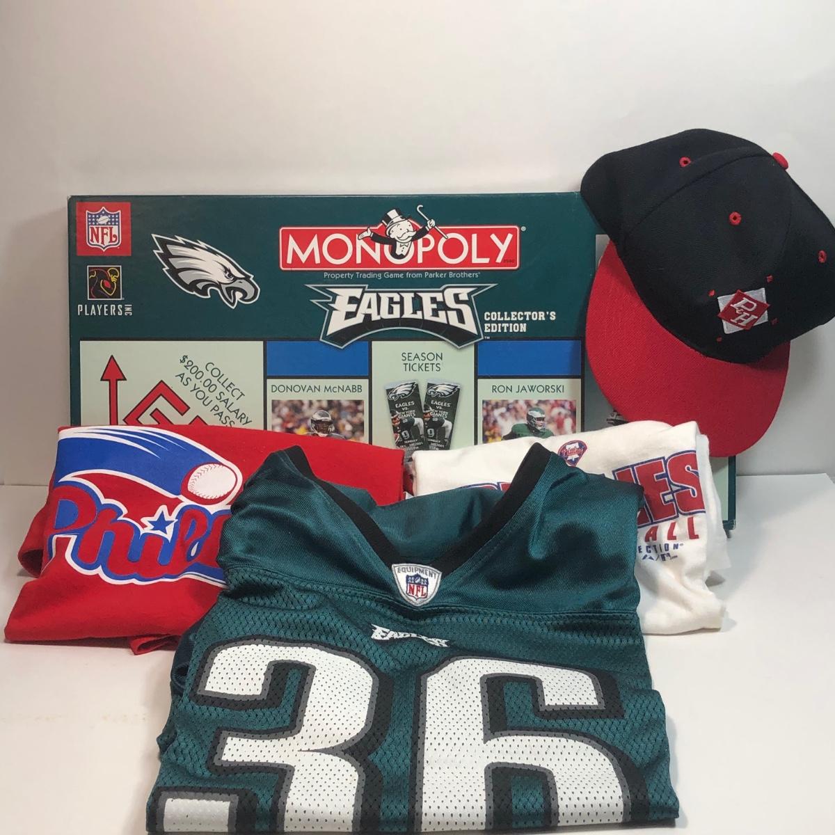 LOT 19: Eagles Monopoly, Westbrook Jersey (XL), 2 Phillies T-shirts (M &L), 1997 Masters Golf Chair