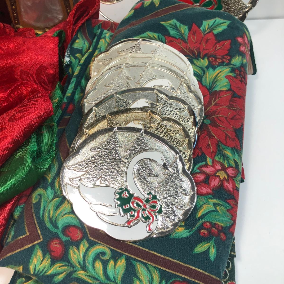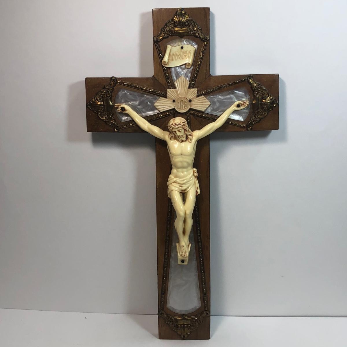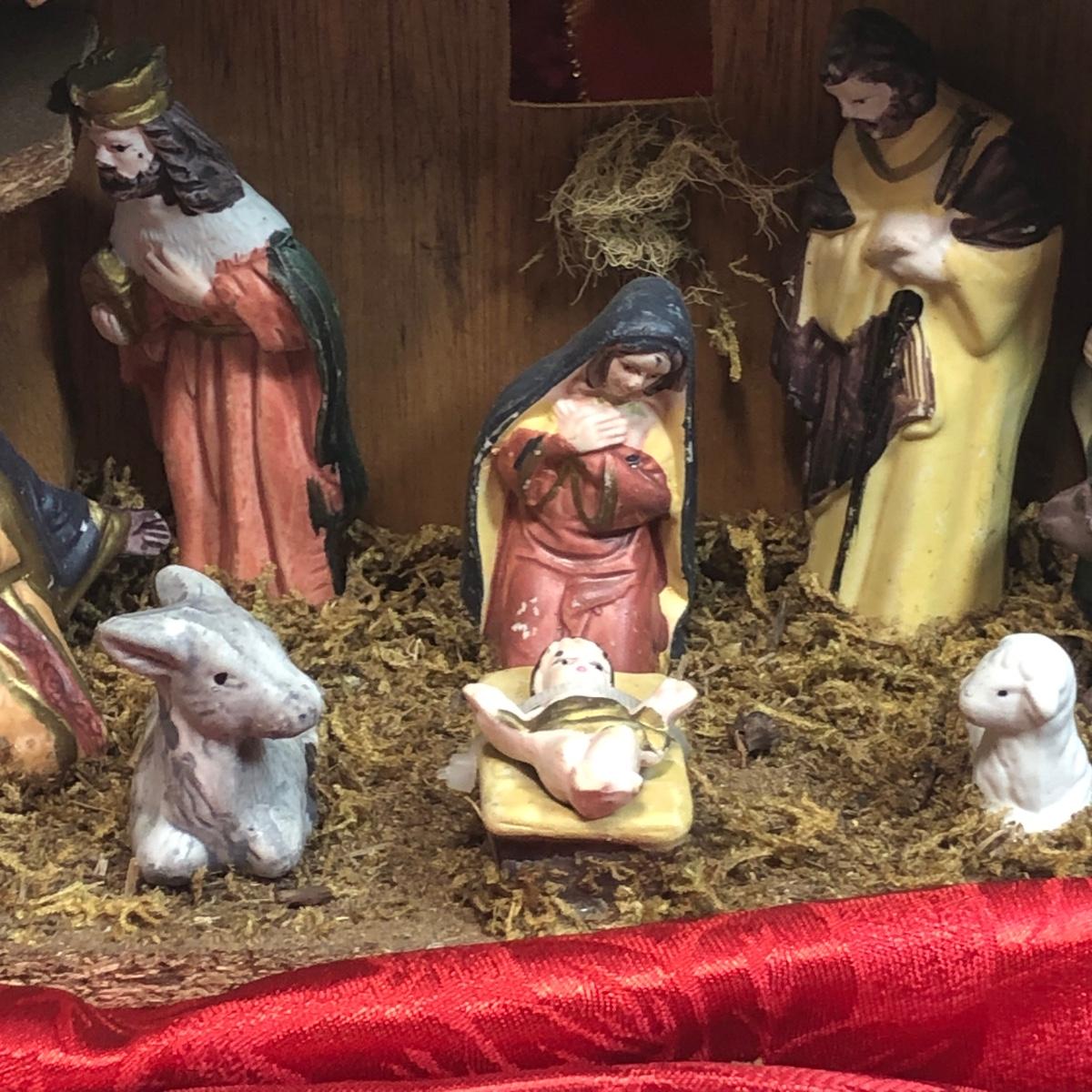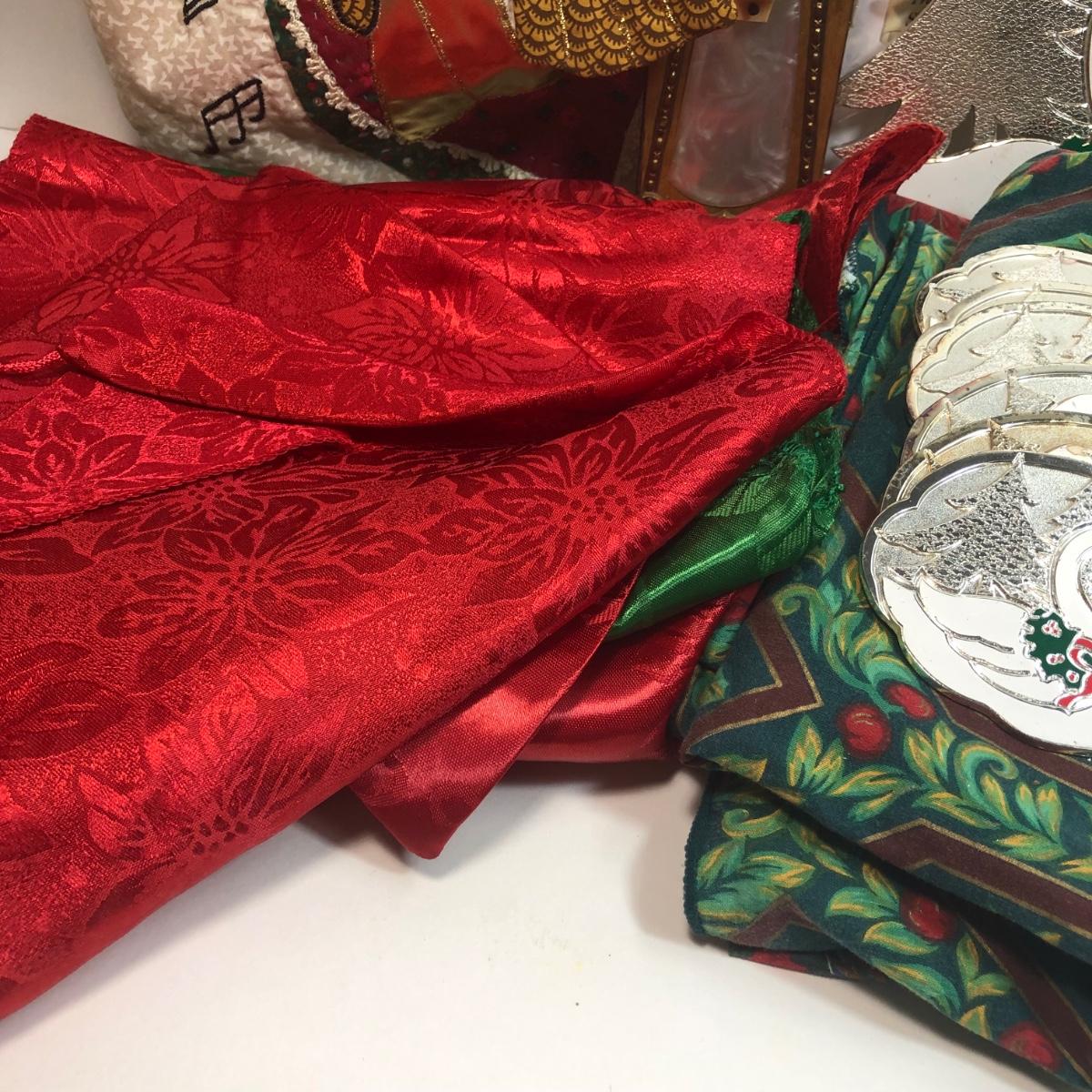 LOT 26: Inlayed Crucifix, Nativity Scene, Angel Stocking, St. Anthony Charm Necklaces, Linens & More