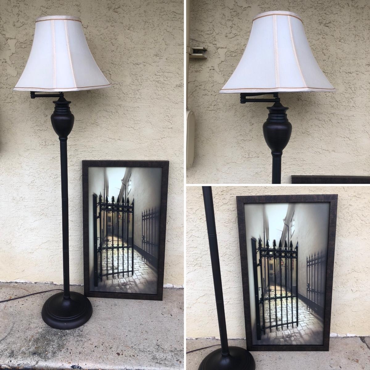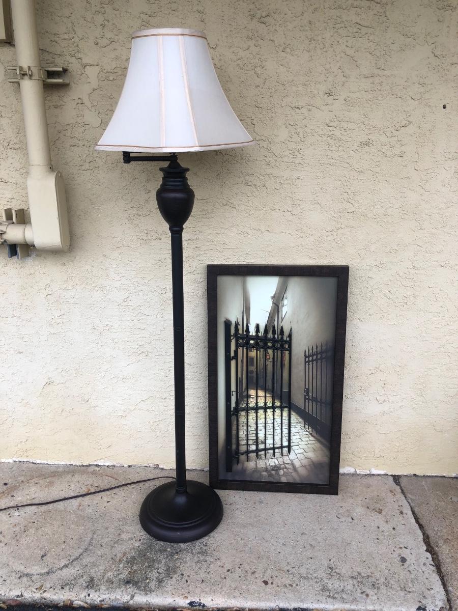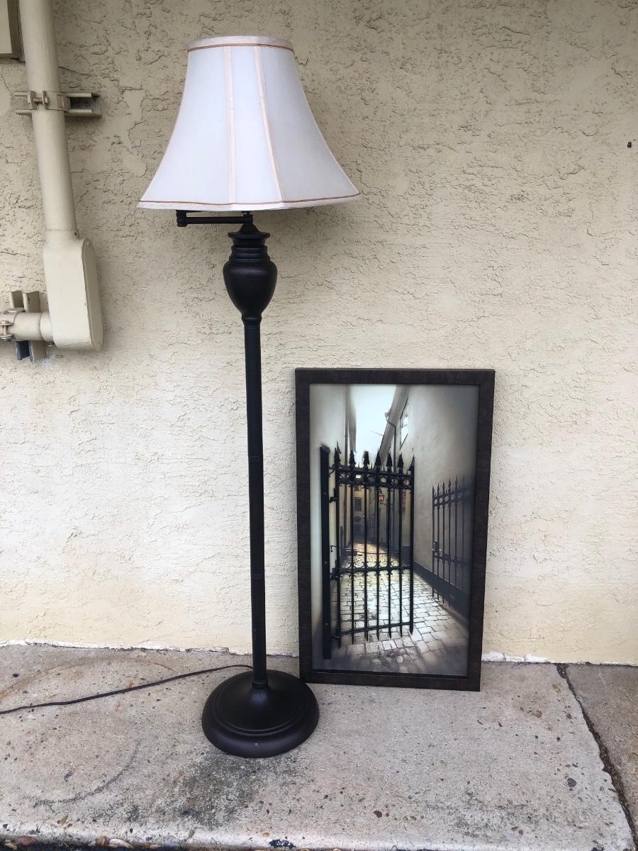 LOT 40: Tall Lamp & Framed 3-D Fence Artwork