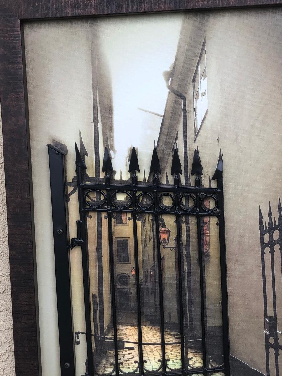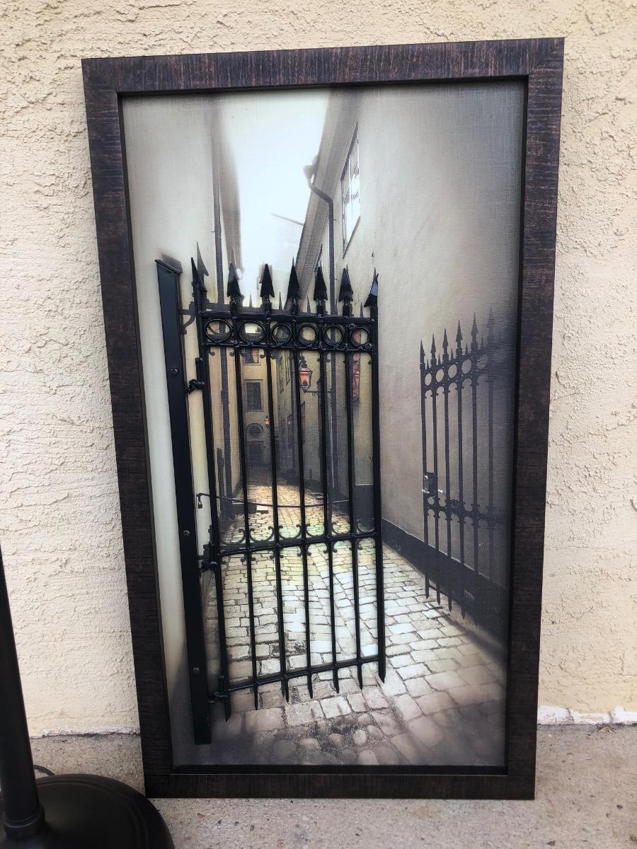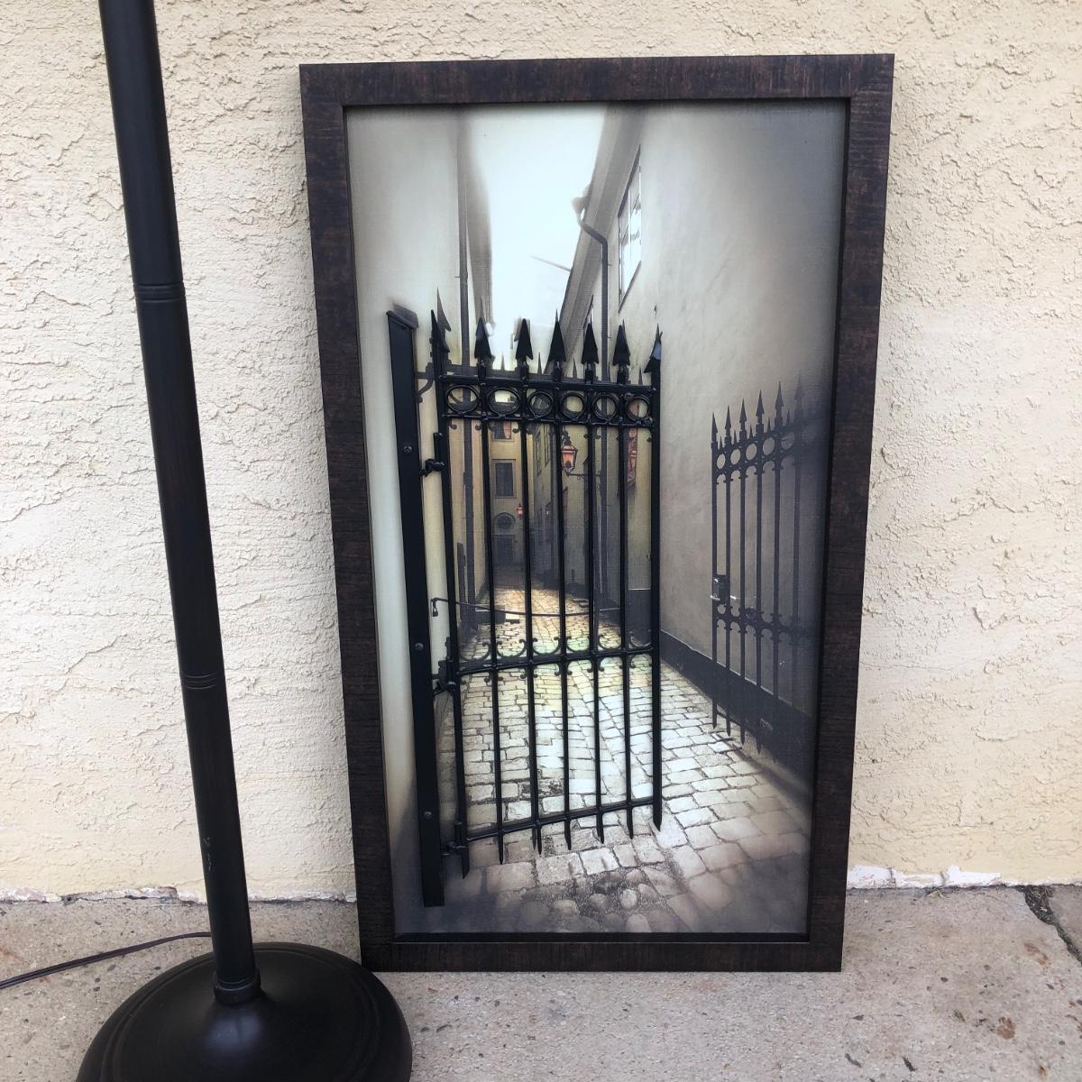 LOT 40: Tall Lamp & Framed 3-D Fence Artwork