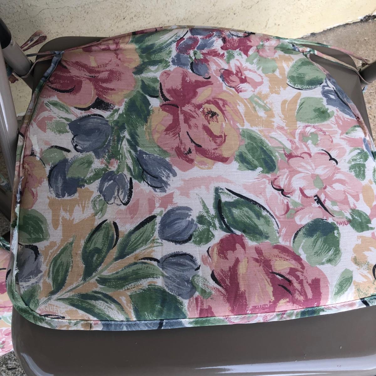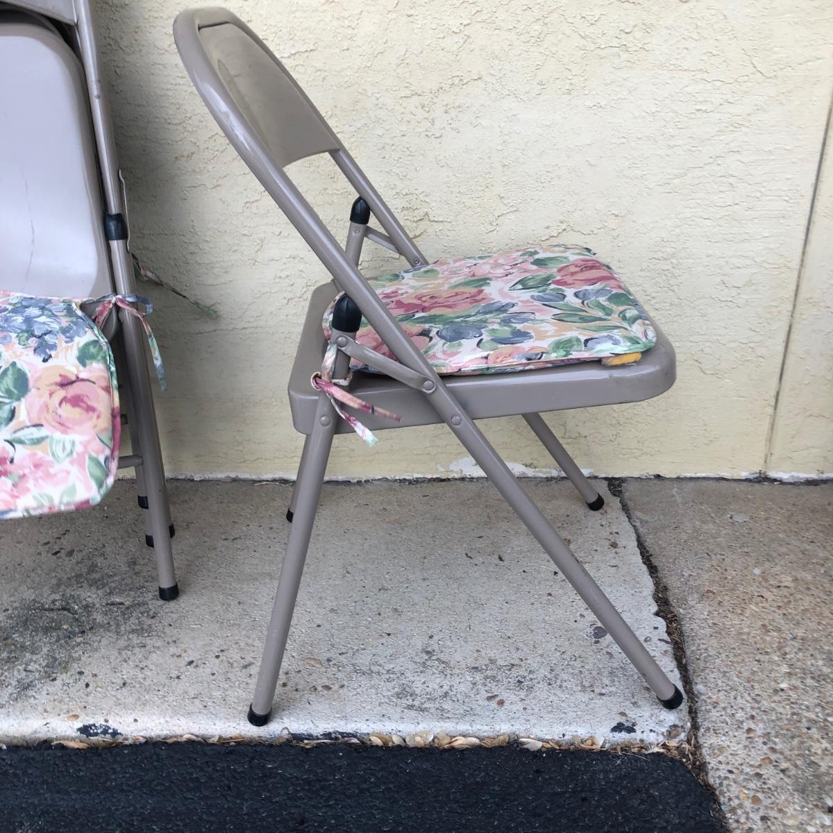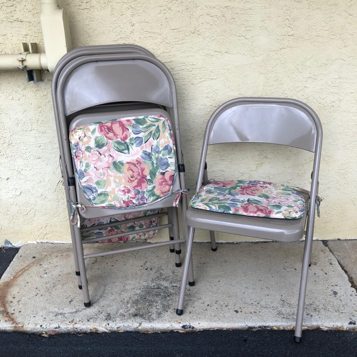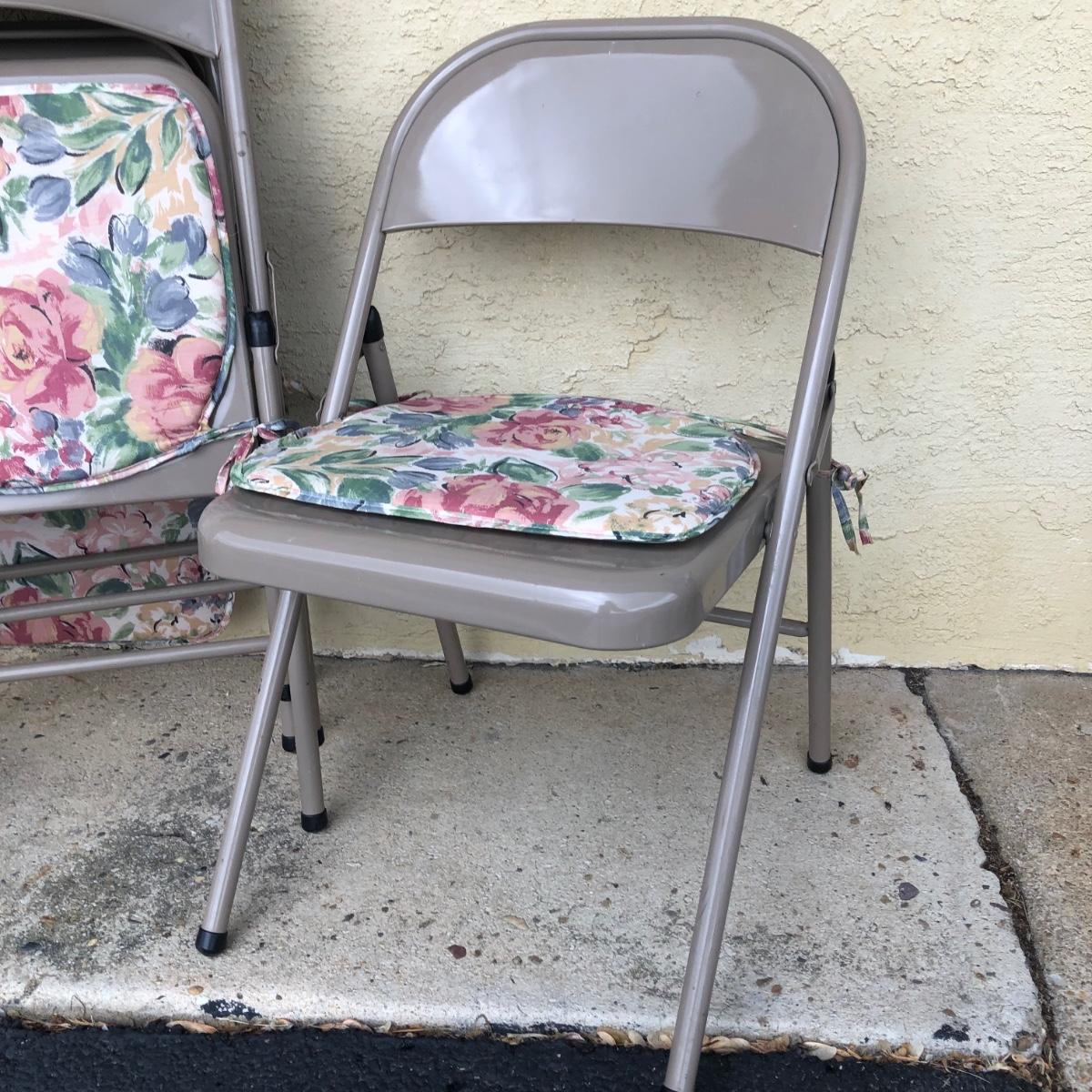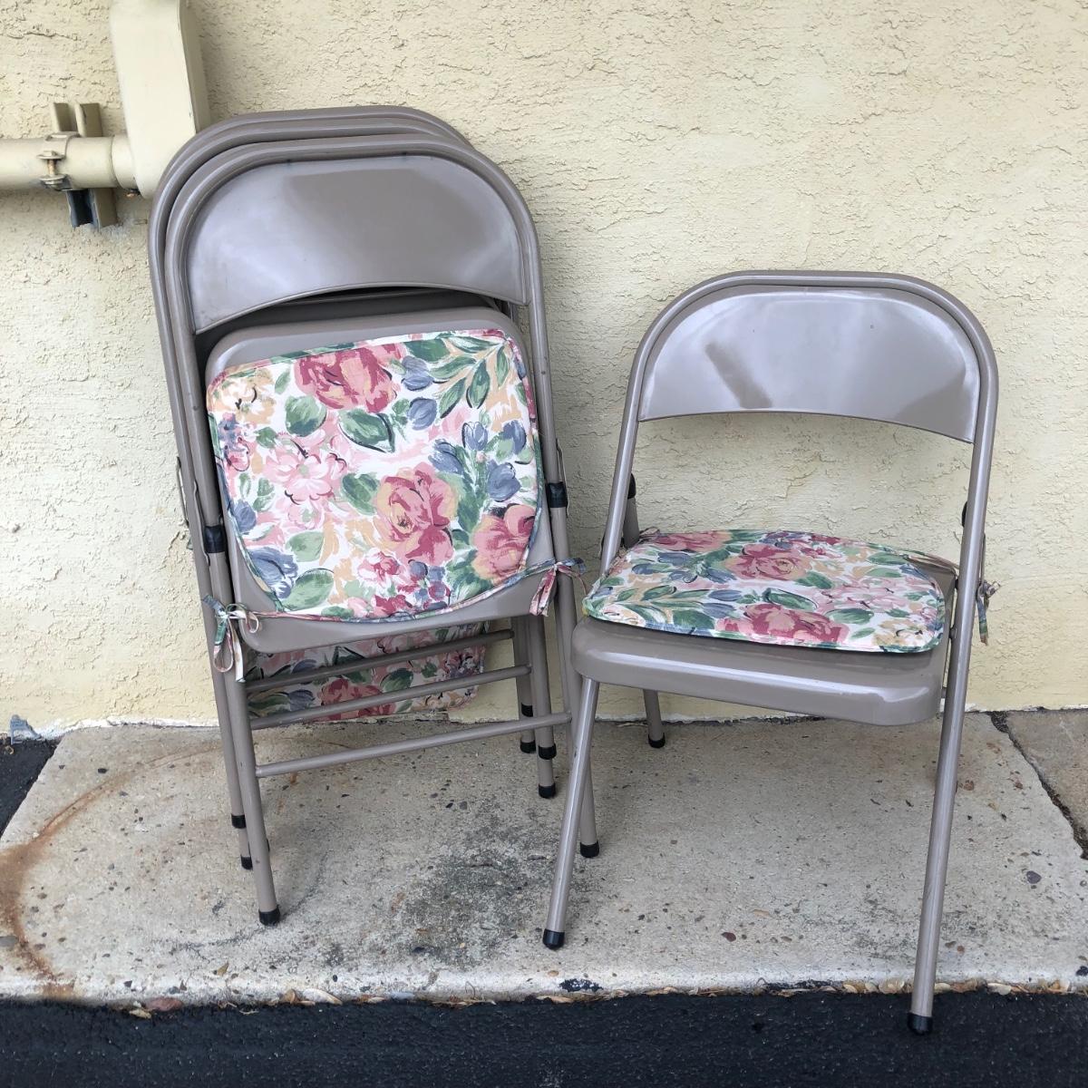 LOT 46: Four Folding Metal Chairs w/ Floral Cushions