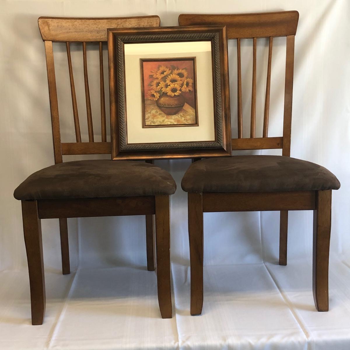 LOT 52: Dining Chairs & Framed Sunflower Print
