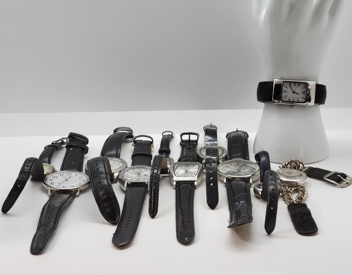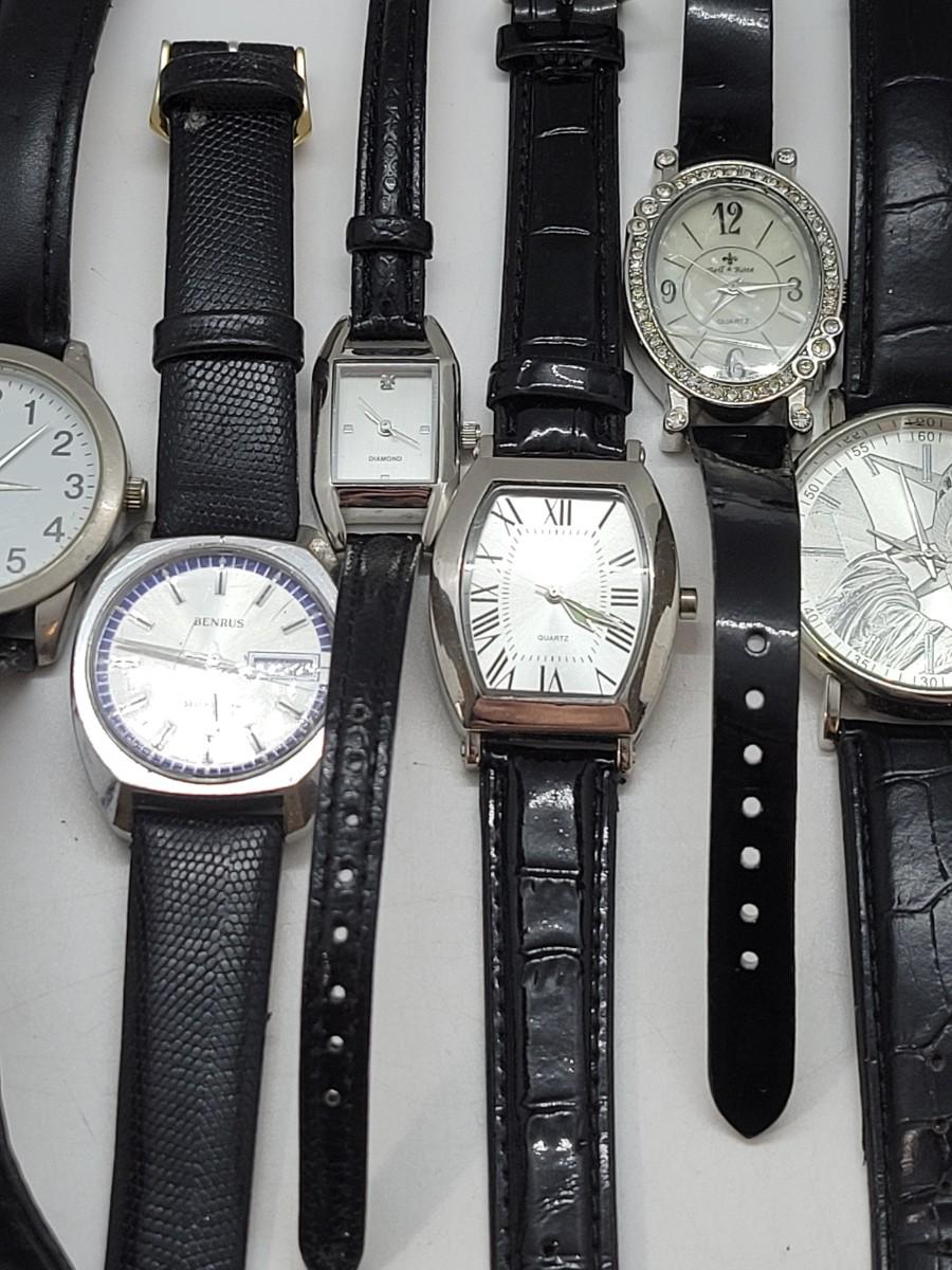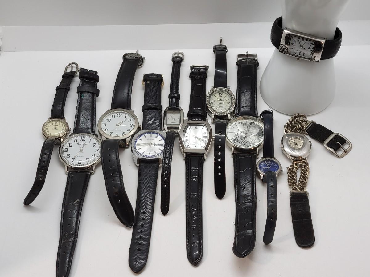 LOT 54: Black Leather Men's and Women's Wrist Watches