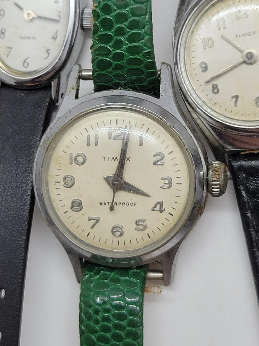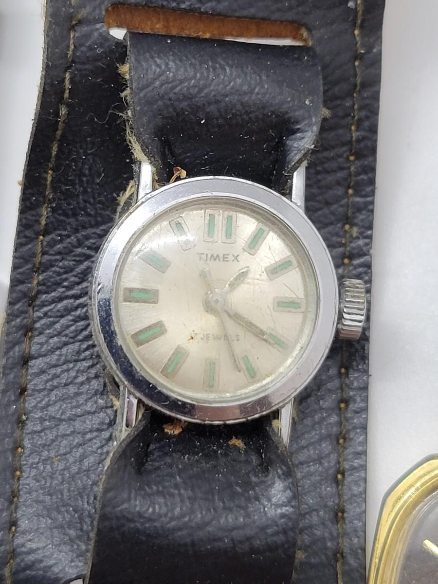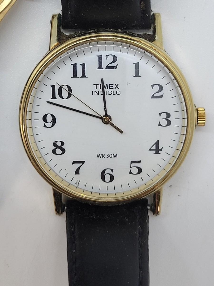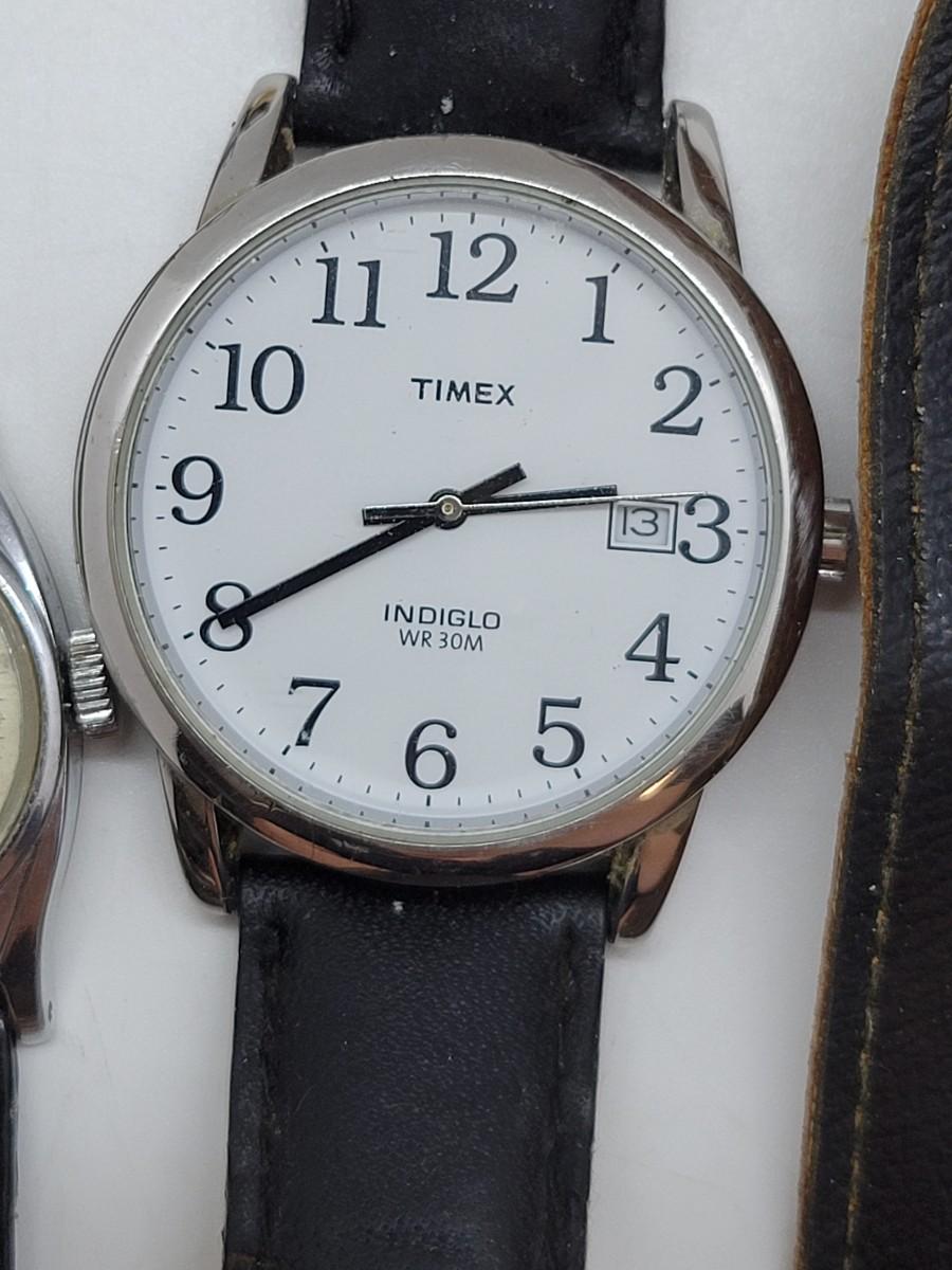LOT 57: Timex Watches Silver and Gold Tone with Black/ Green Leather Wrist Bands