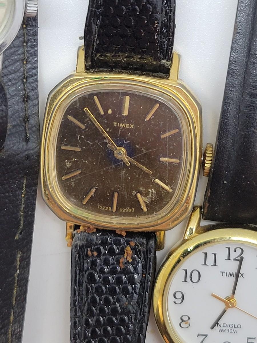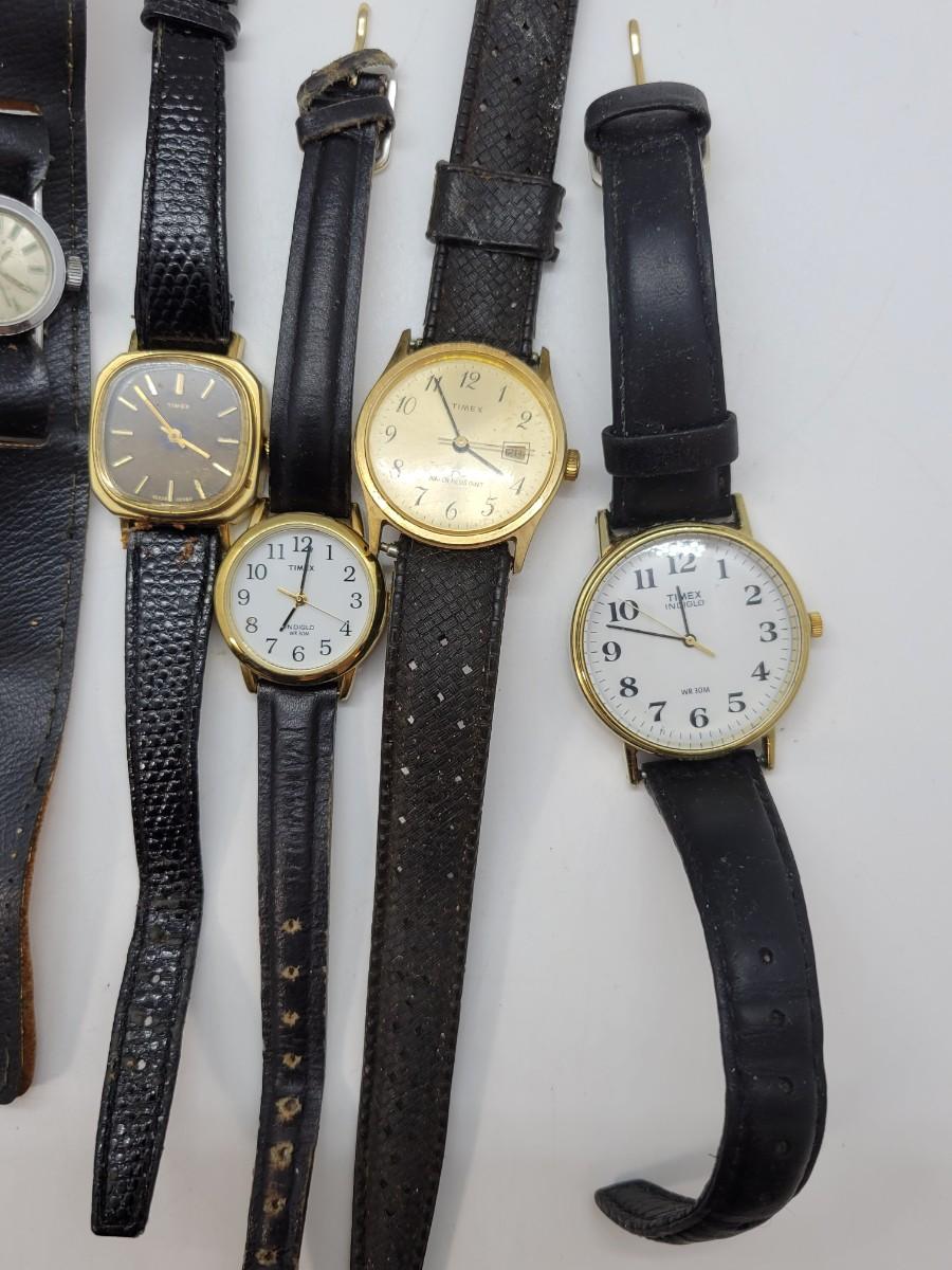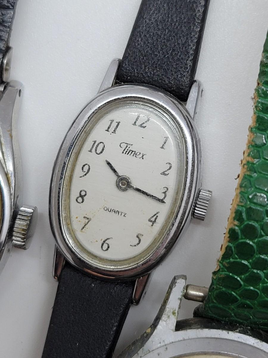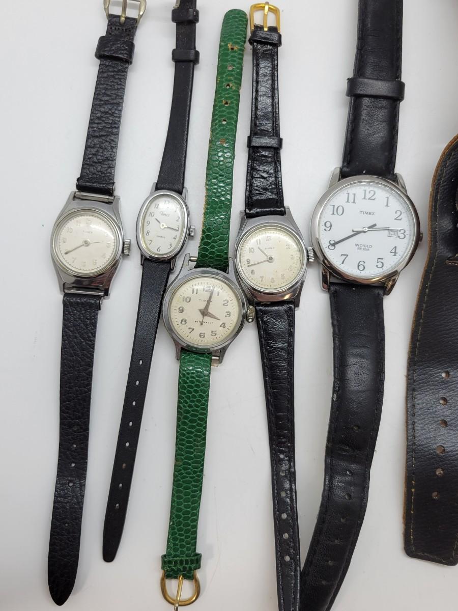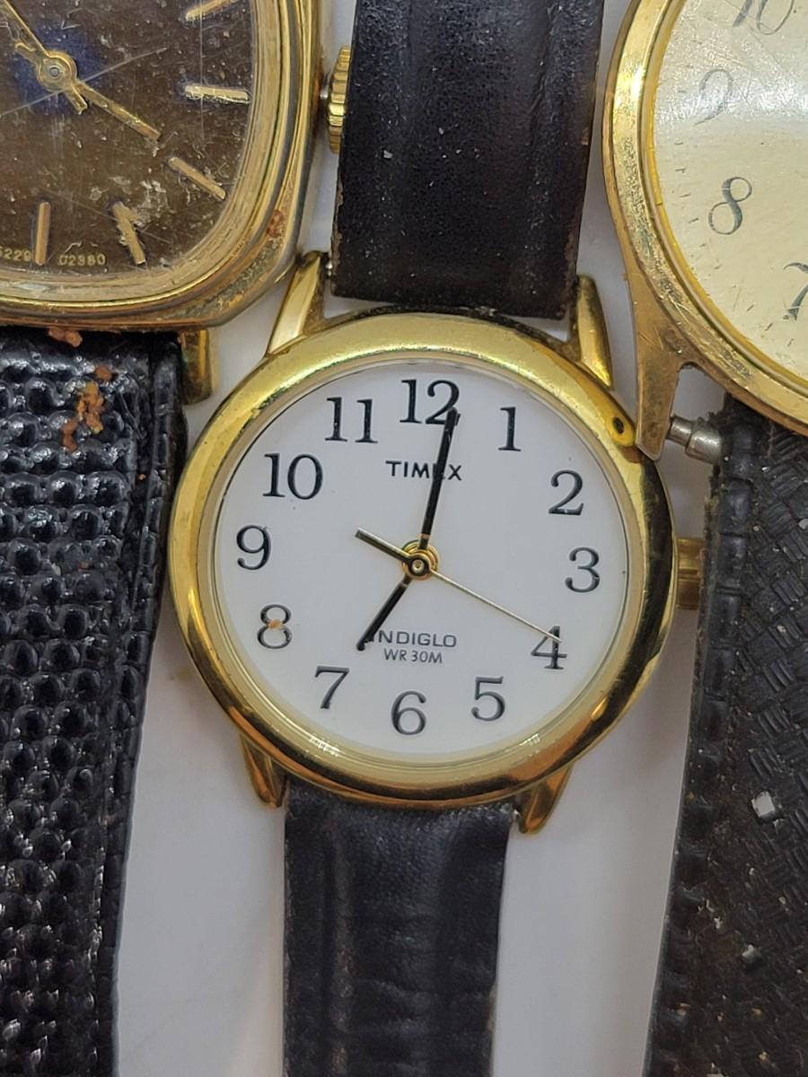 LOT 57: Timex Watches Silver and Gold Tone with Black/ Green Leather Wrist Bands