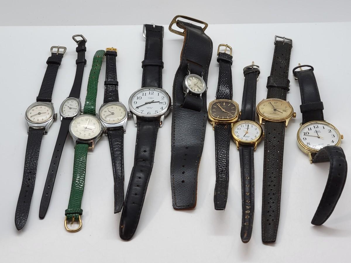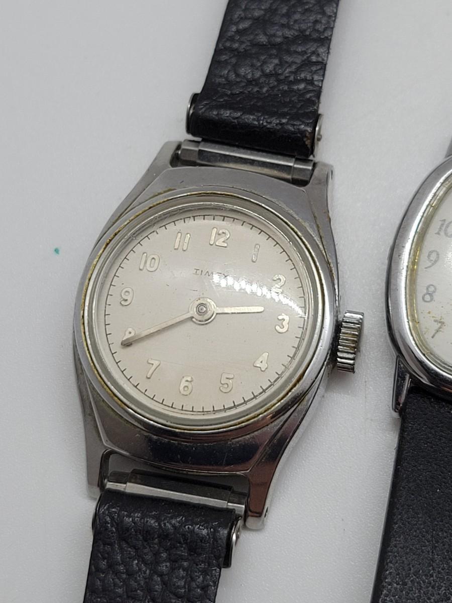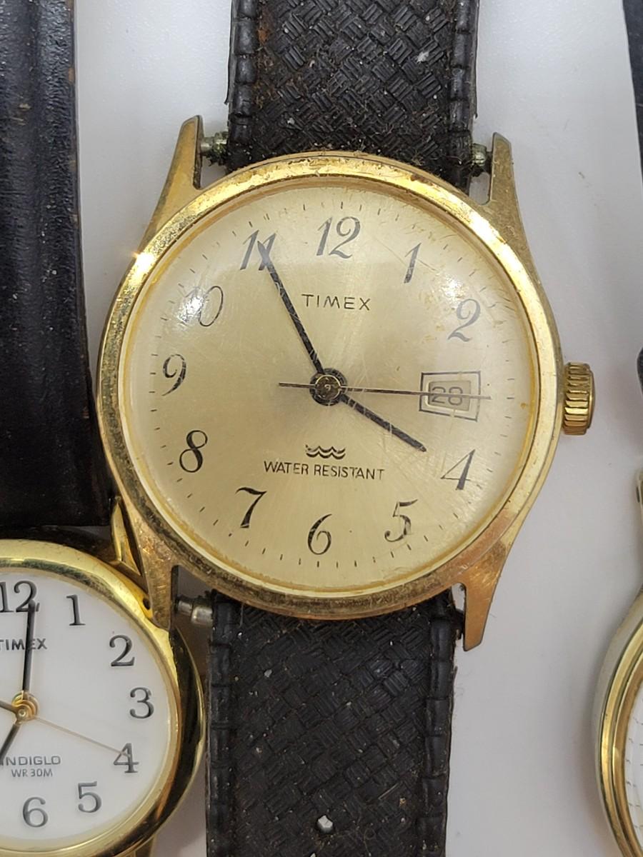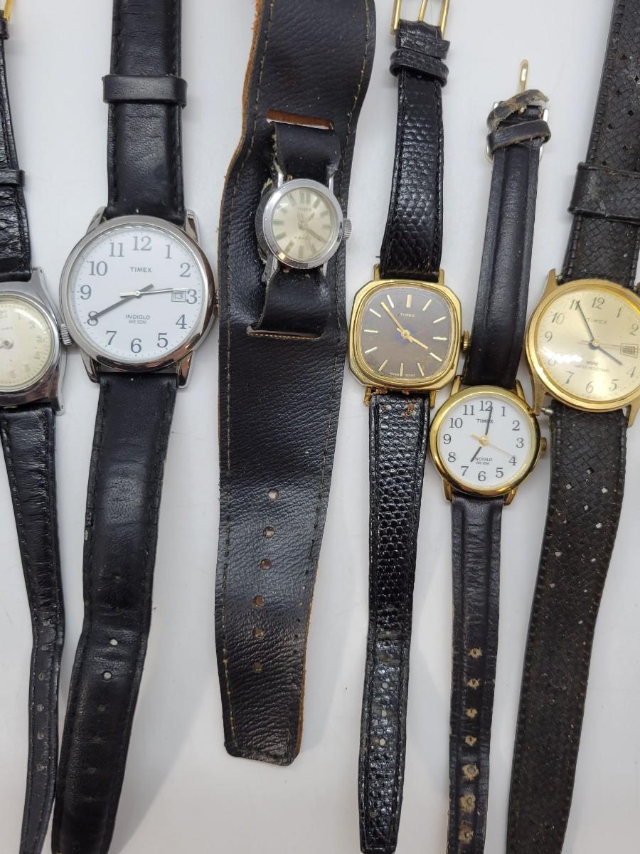 LOT 57: Timex Watches Silver and Gold Tone with Black/ Green Leather Wrist Bands