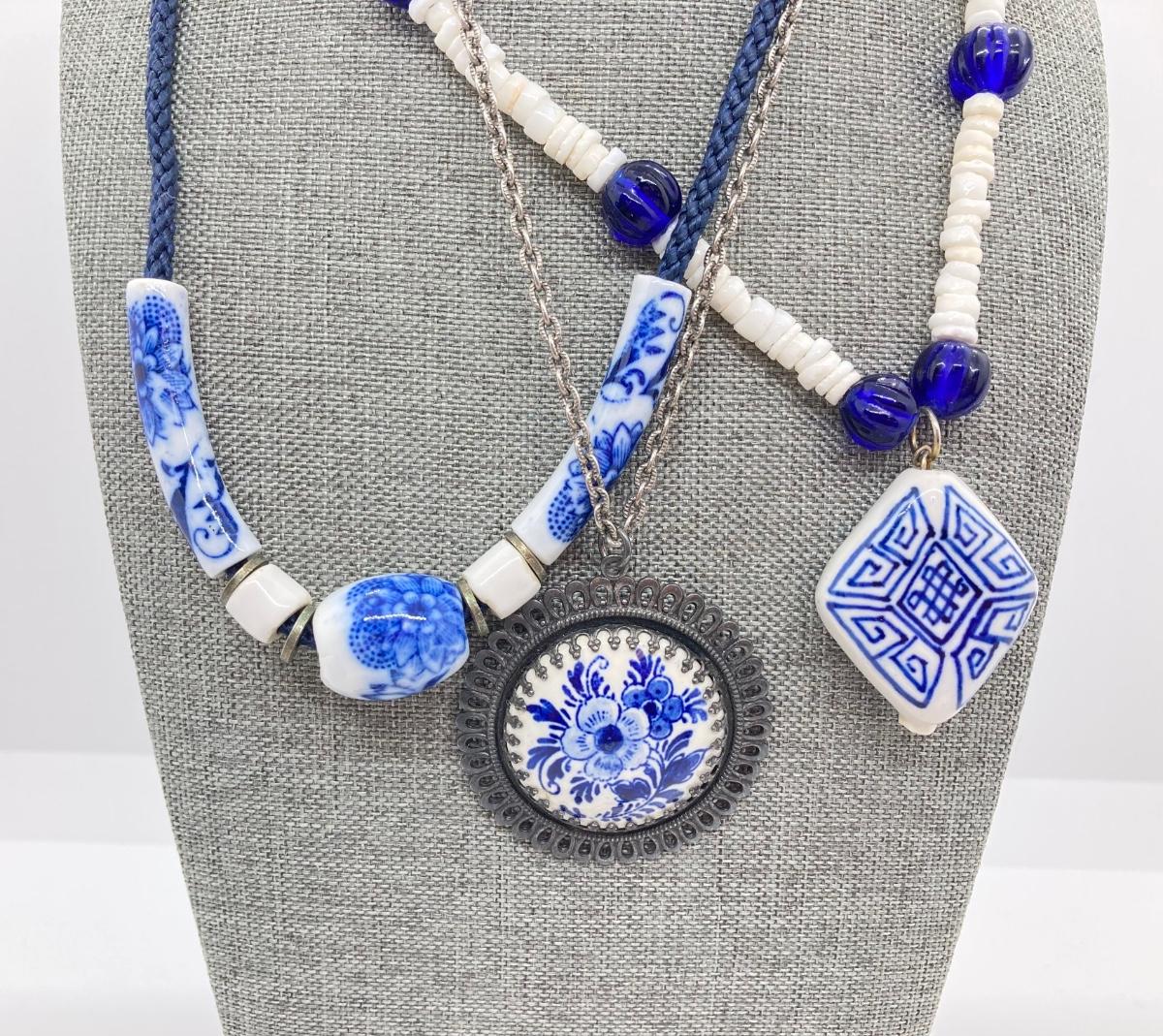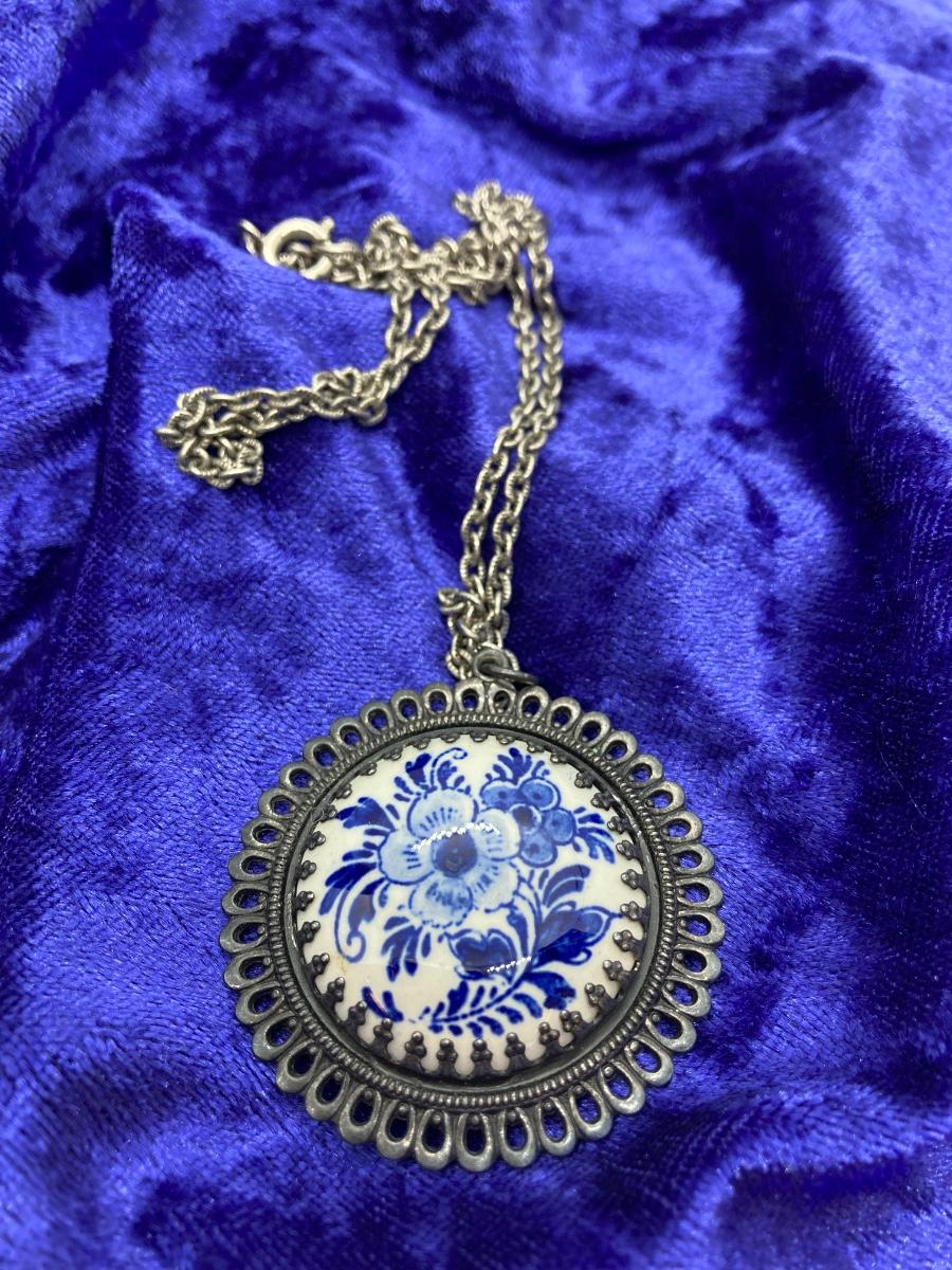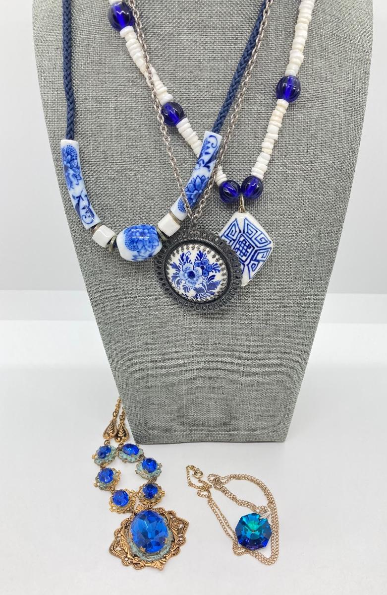 LOT 118: Delft Blue Medallion Necklace and More