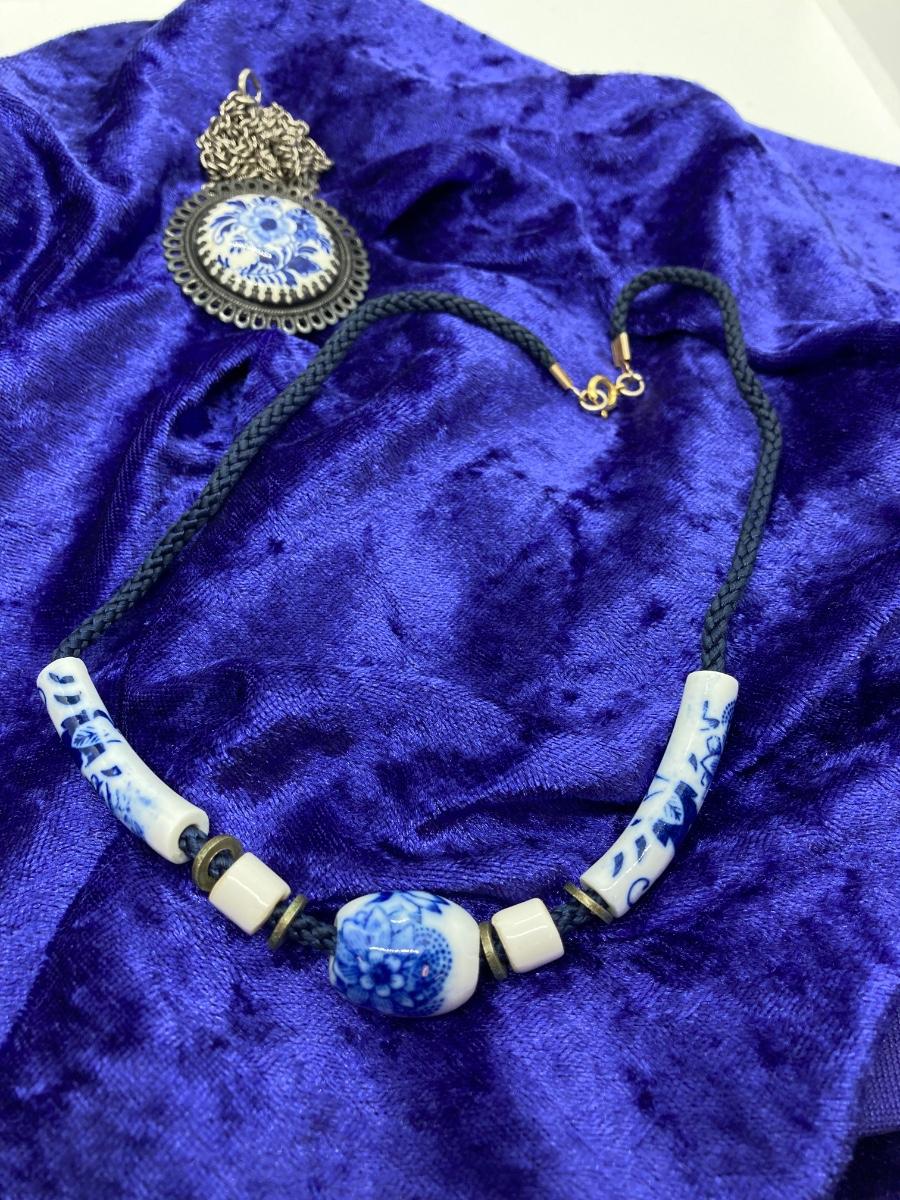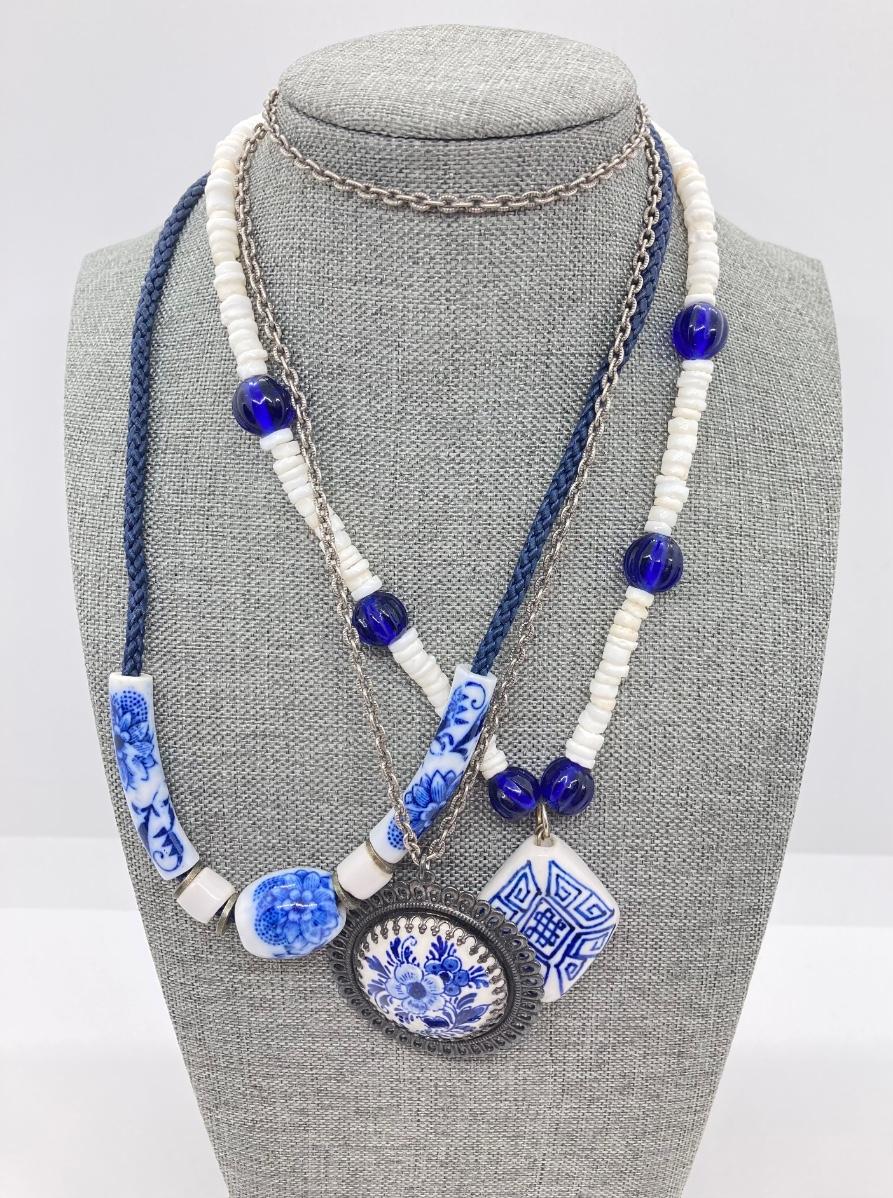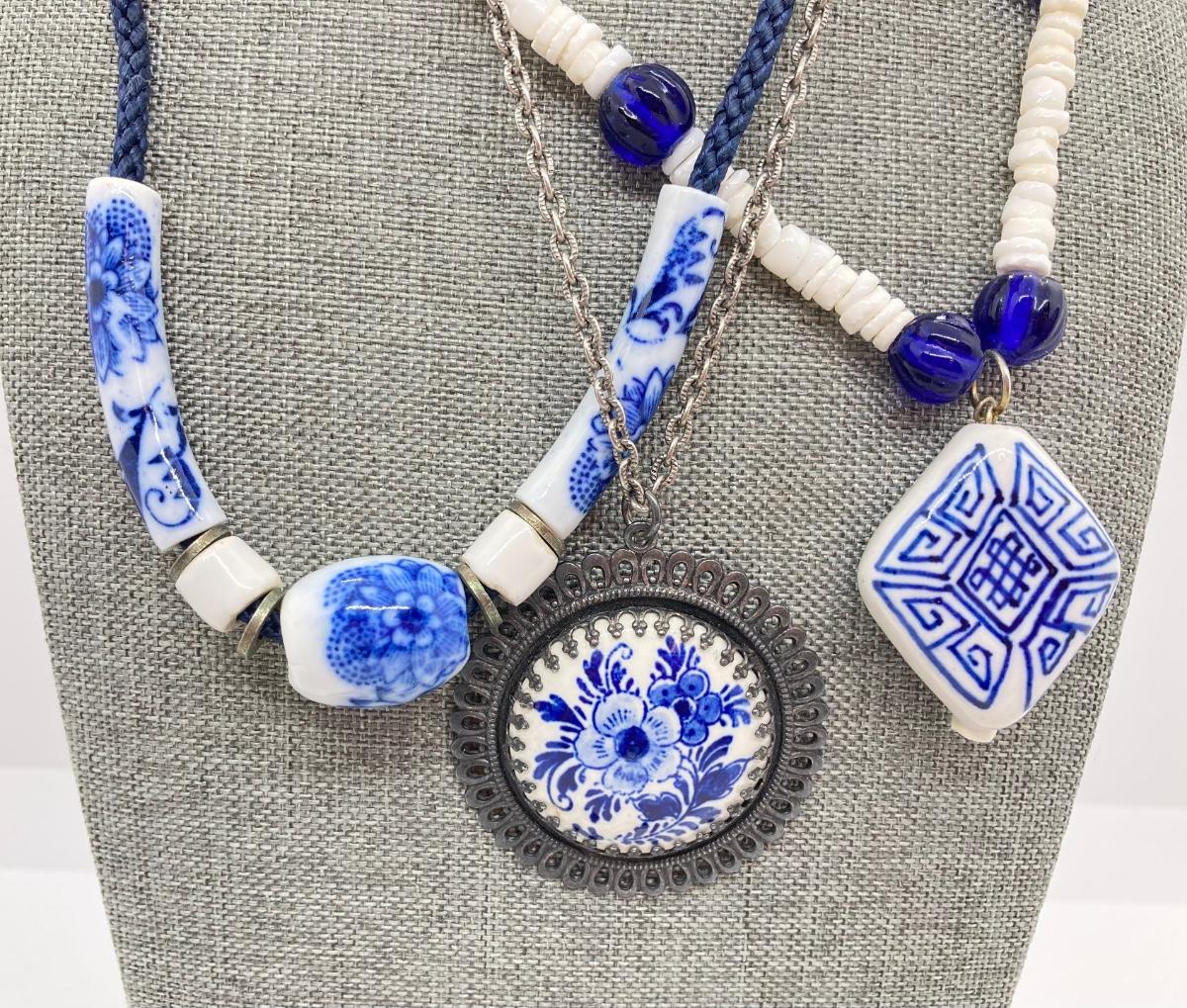 LOT 118: Delft Blue Medallion Necklace and More