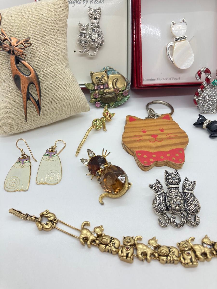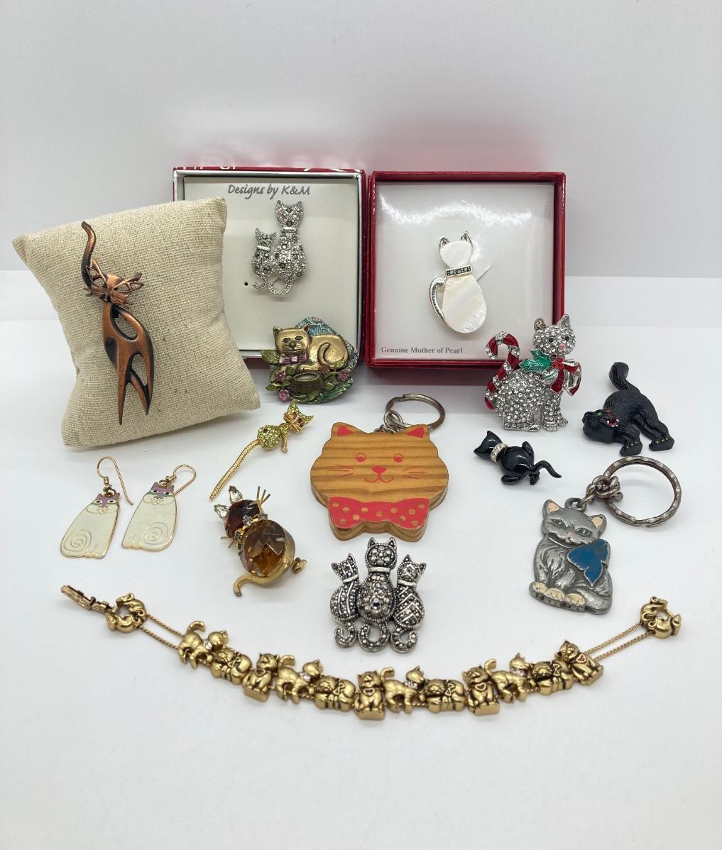 LOT 148: Cat Pins, Keychains, Earrings and More