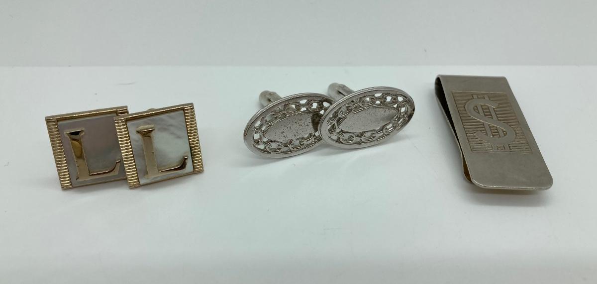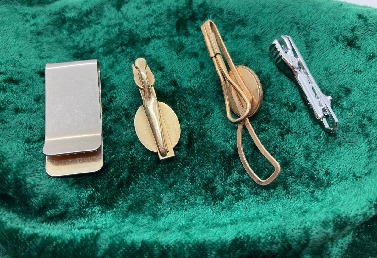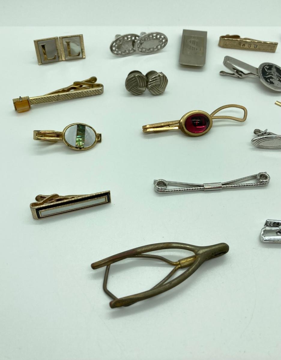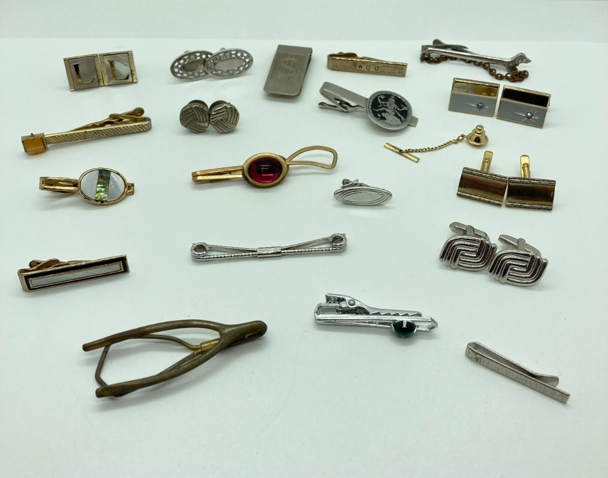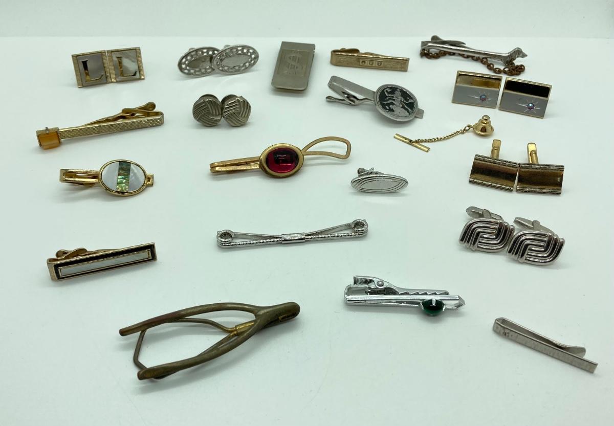 LOT 152: Tie Tacks, Money Holder and Cuff Link Collection