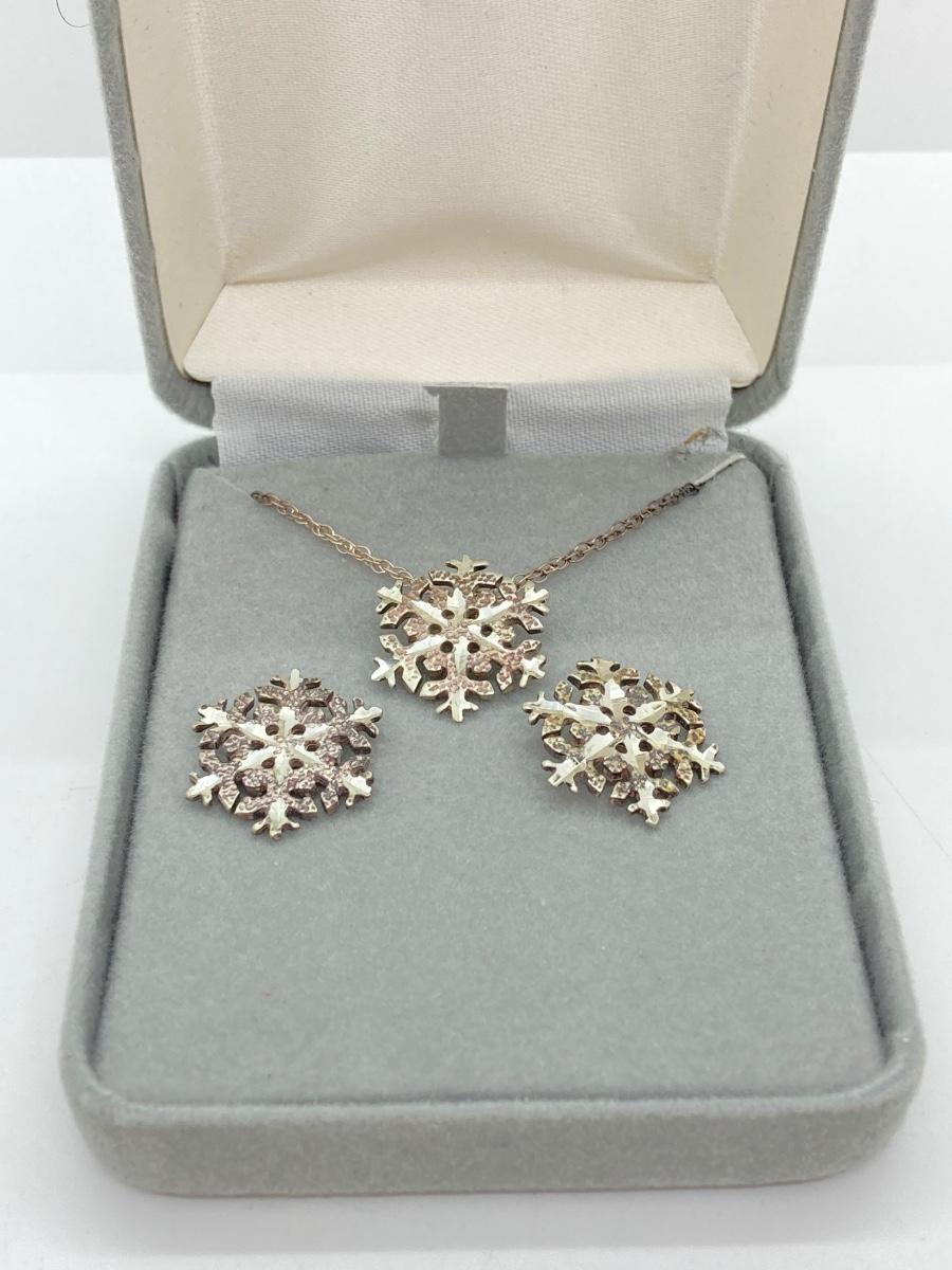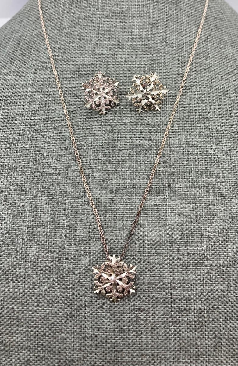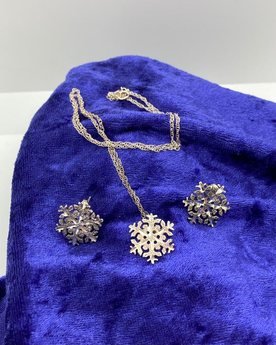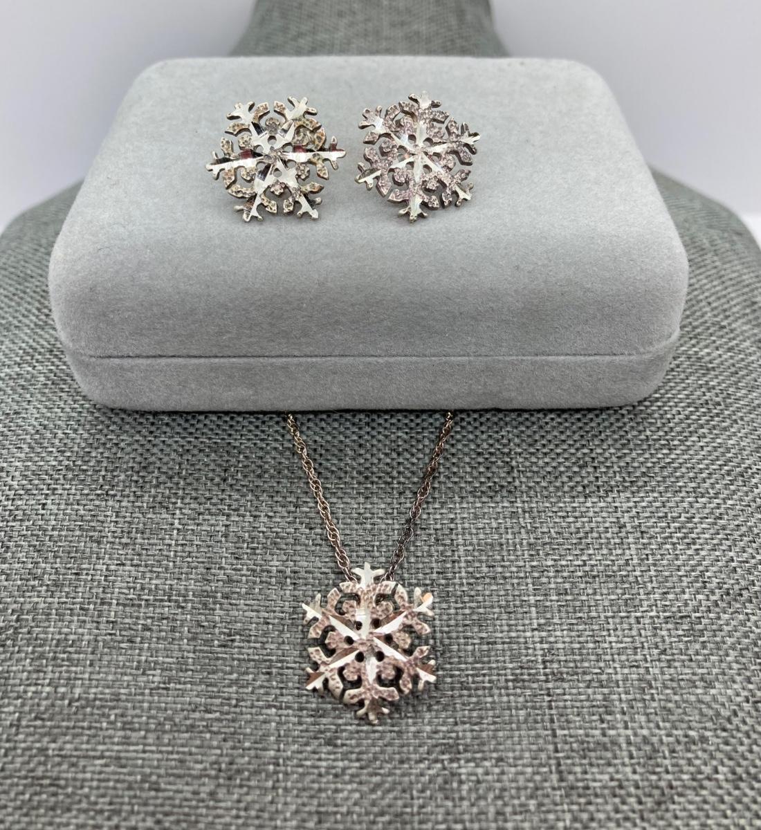 LOT 171: Sterling Silver Snowflake Necklace and Earrings