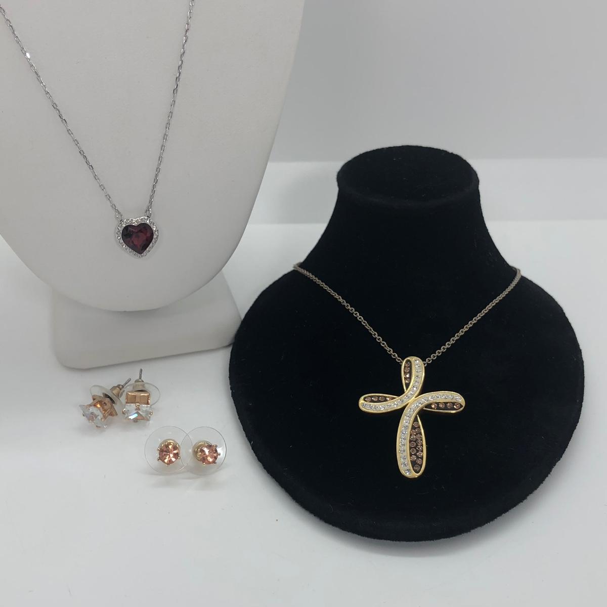 LOT 20M: Swarovski Heart Necklace, OTC Italy Cross Necklace & 2 Pairs of Pierced Earrings