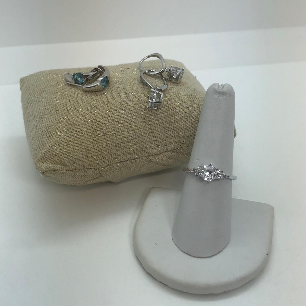 LOT 24M: Sterling Silver Pierced Earrings & Cubic Zirconia Ring
