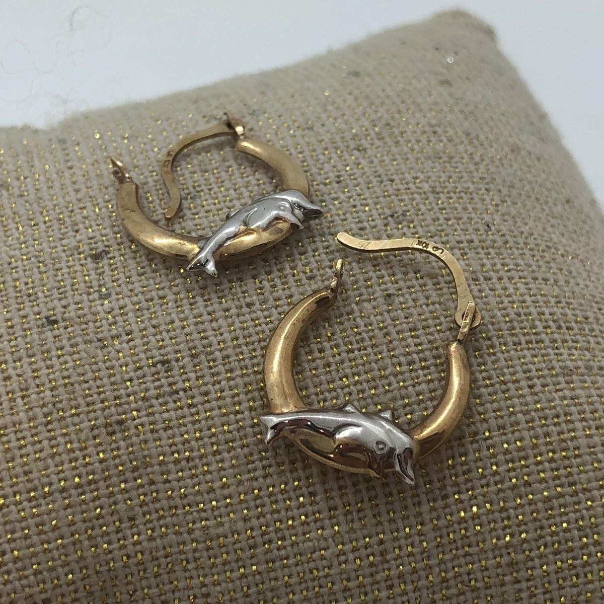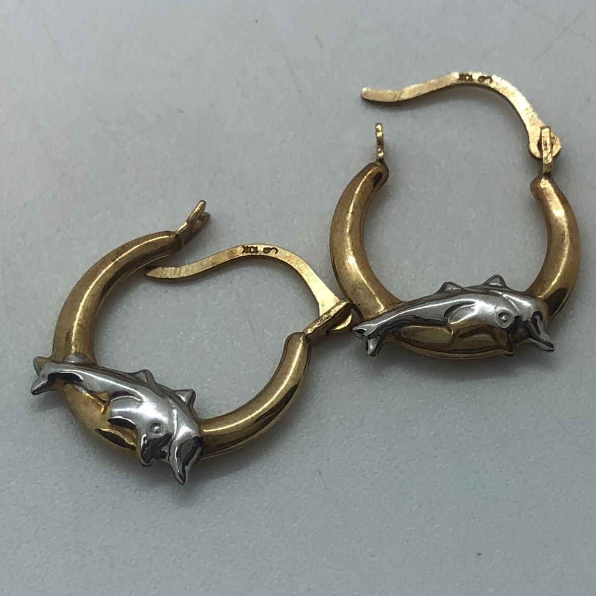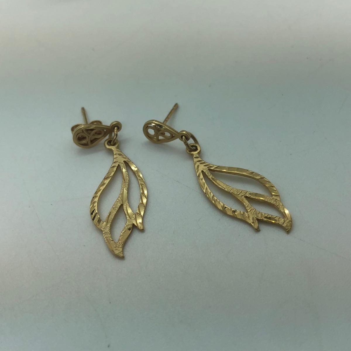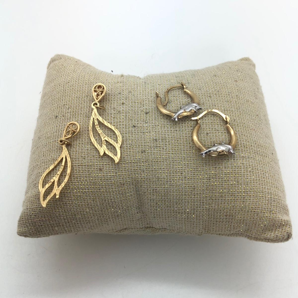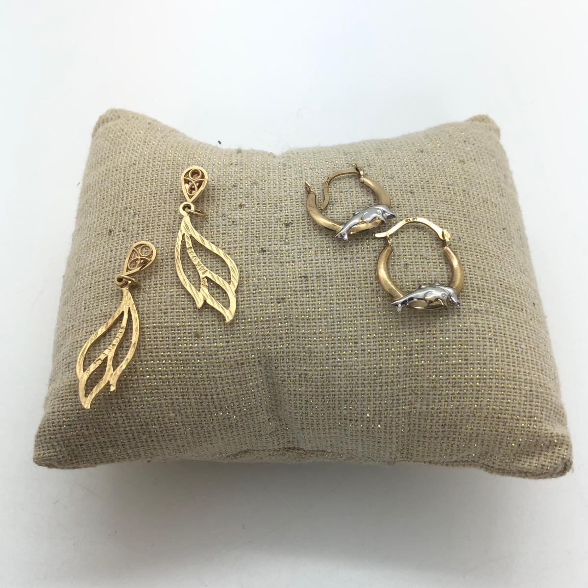 LOT 32M: 10kt Gold Dolphin Earrings (0.48g) & 14kt Gold Leaf Earrings (1.66g)