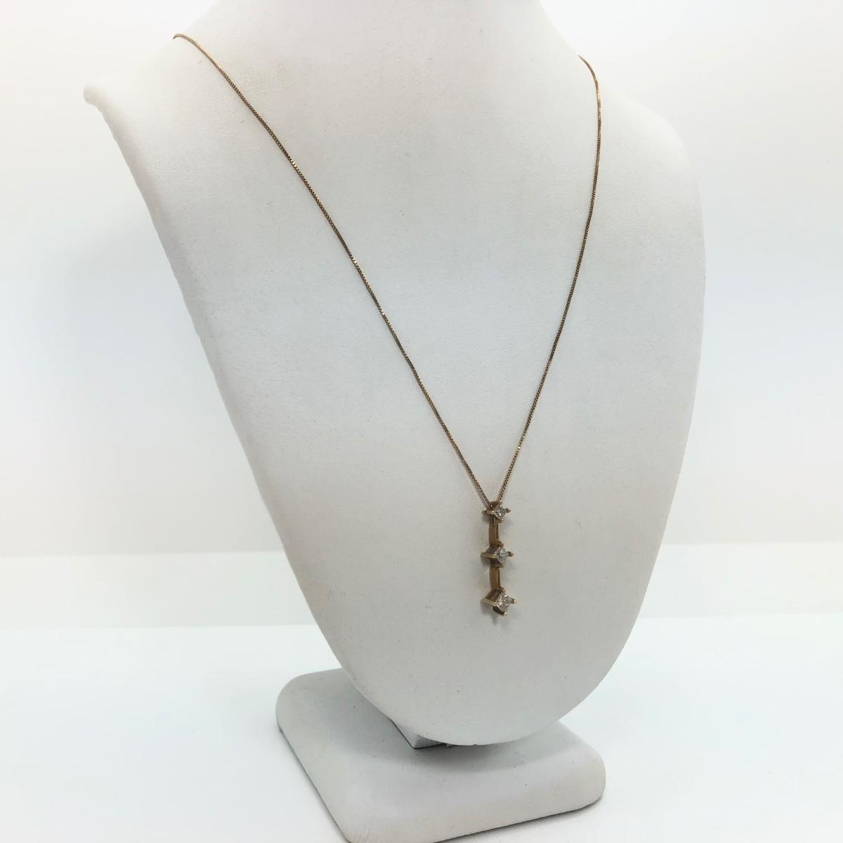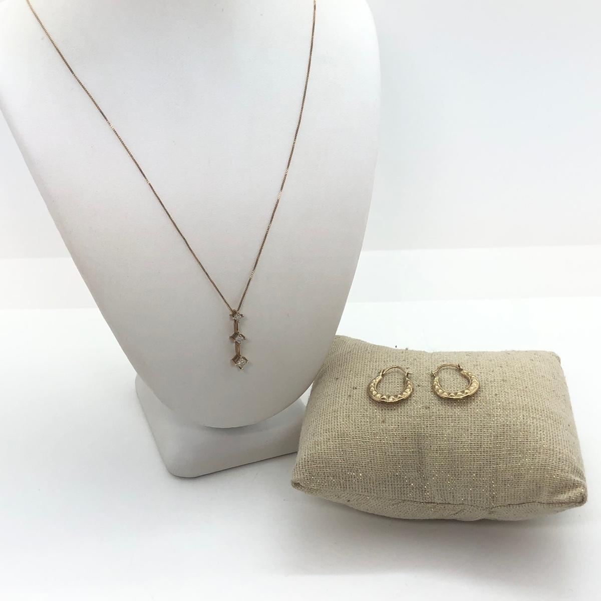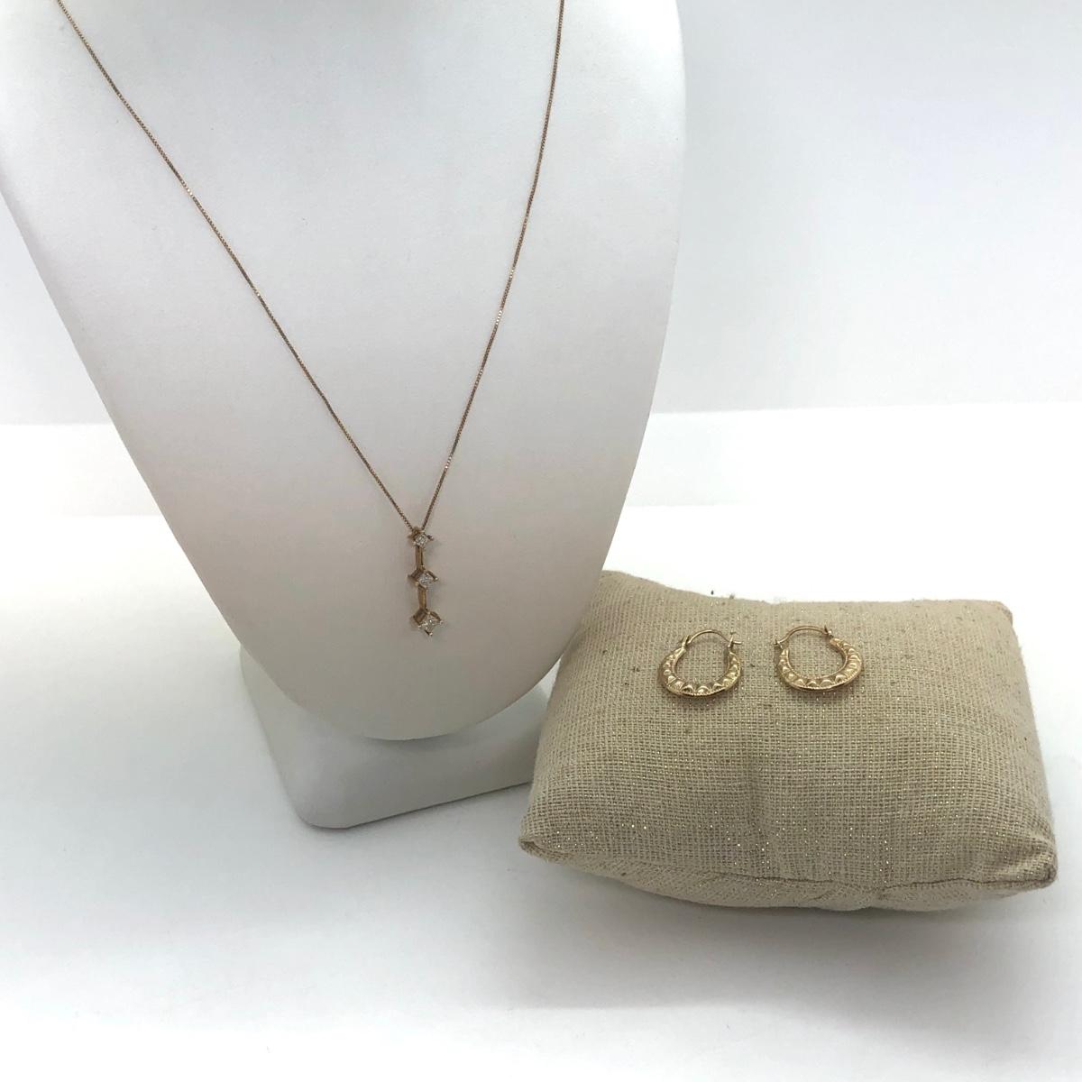 LOT 34M: 14k Gold Necklace w/ 3 Diamonds (1.59g) & 10k Gold Earrings (0.45g)