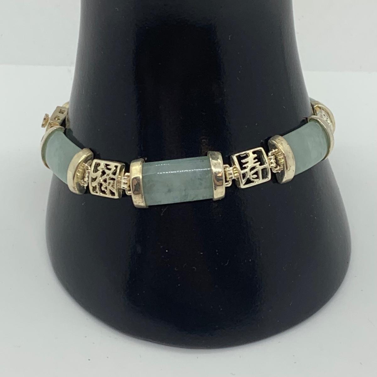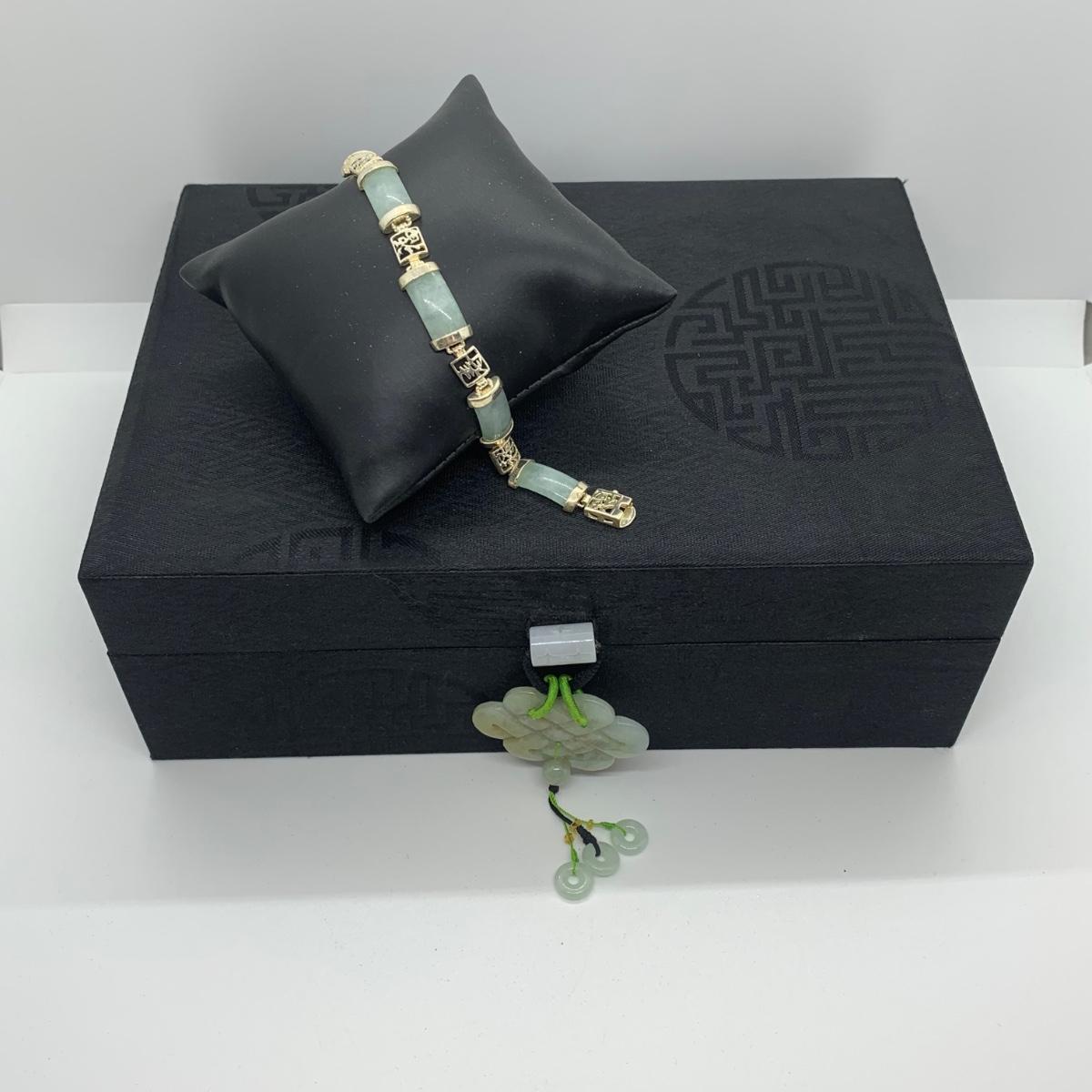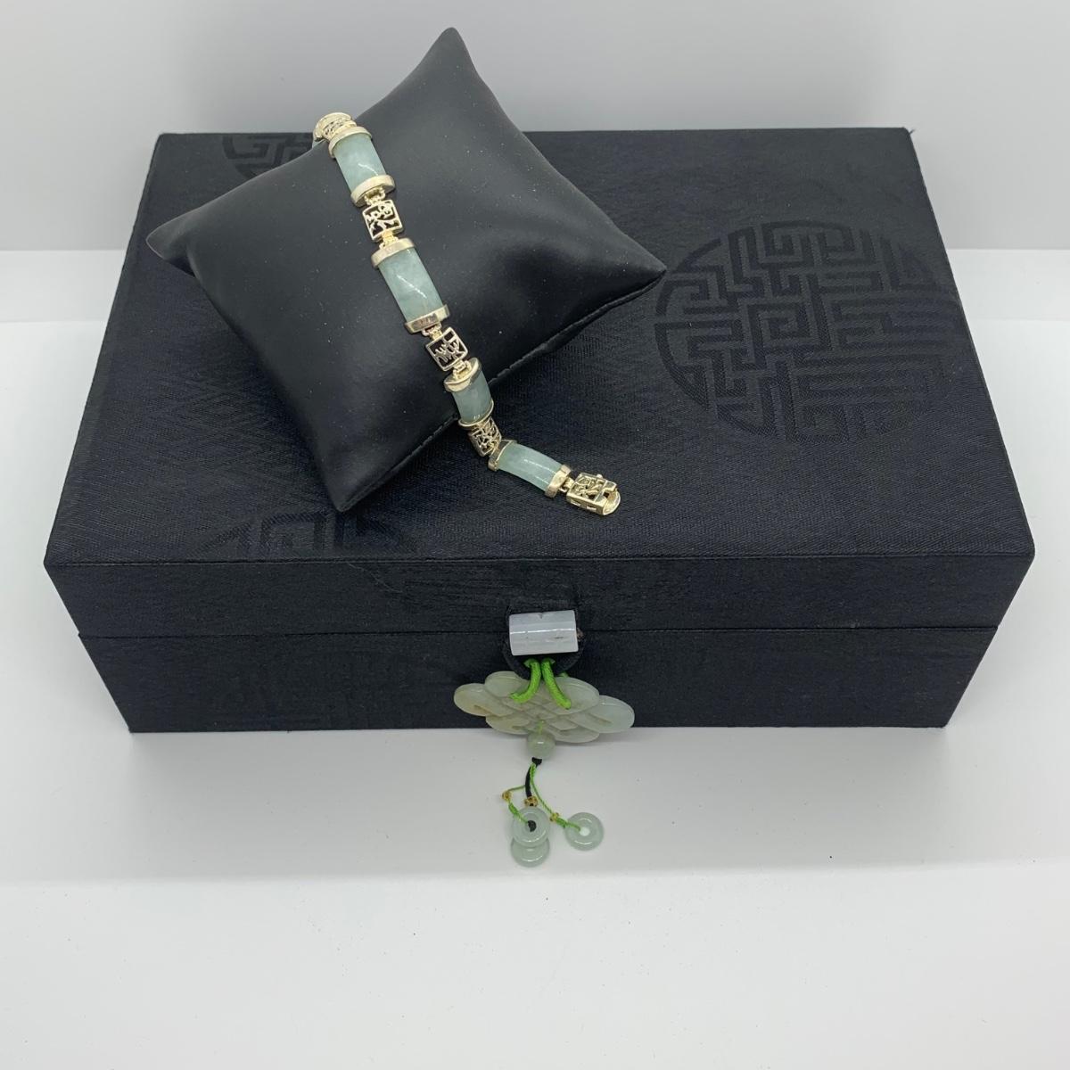 LOTJ 57R: Sterling Silver (925) Jade 7"Bracelet & Black Jewelry Box w/Jadeite Accent