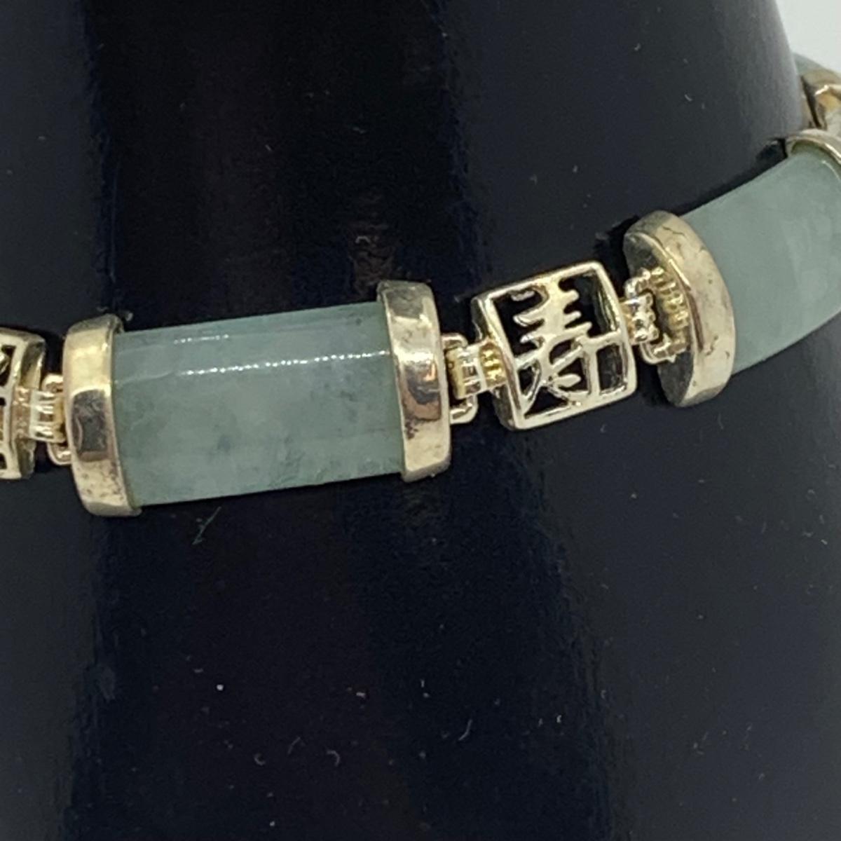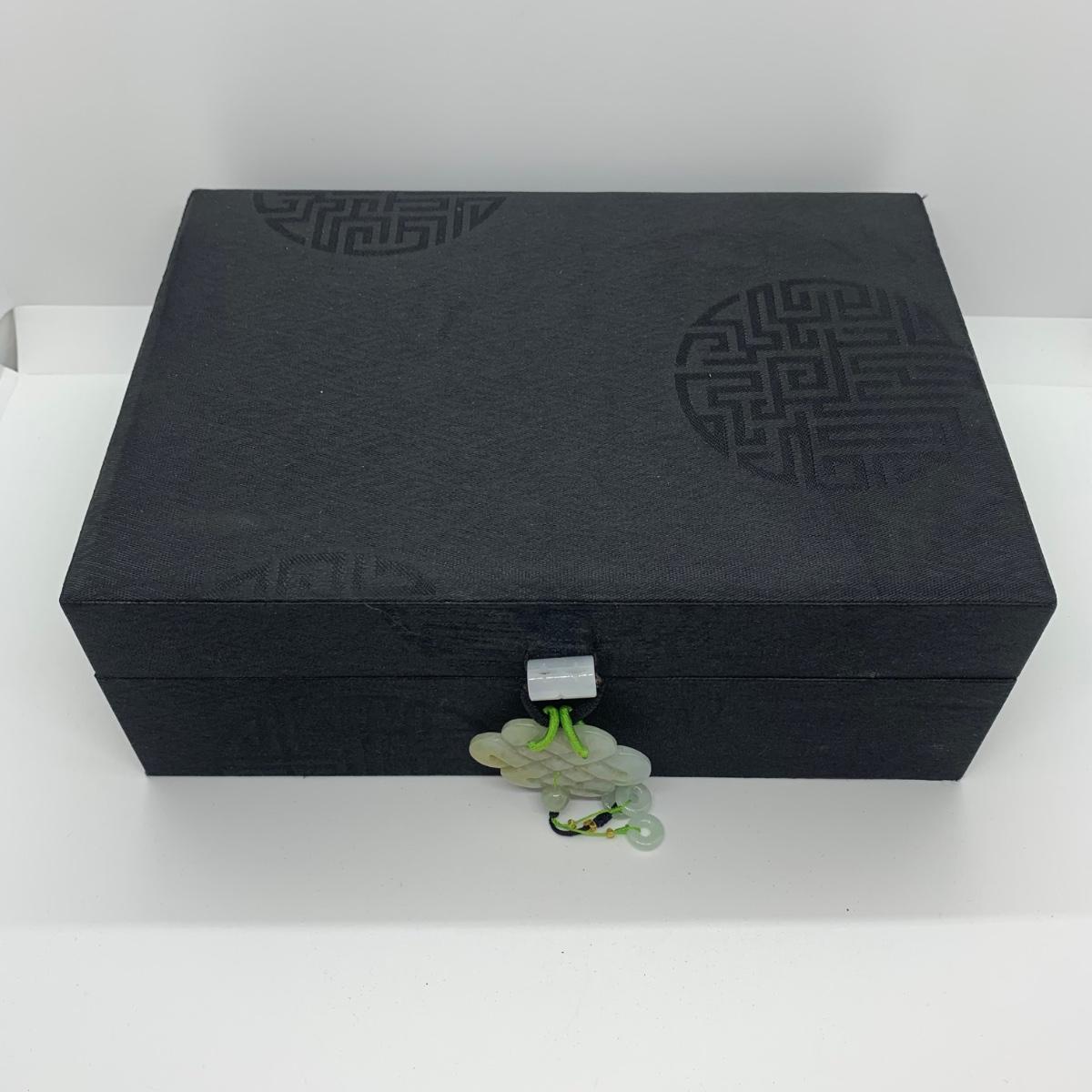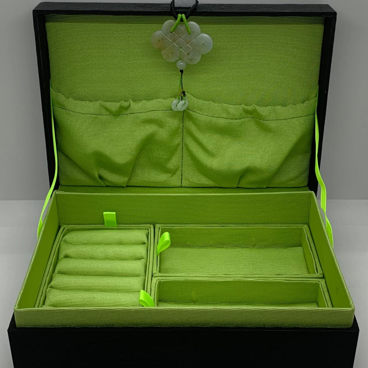 LOTJ 57R: Sterling Silver (925) Jade 7"Bracelet & Black Jewelry Box w/Jadeite Accent