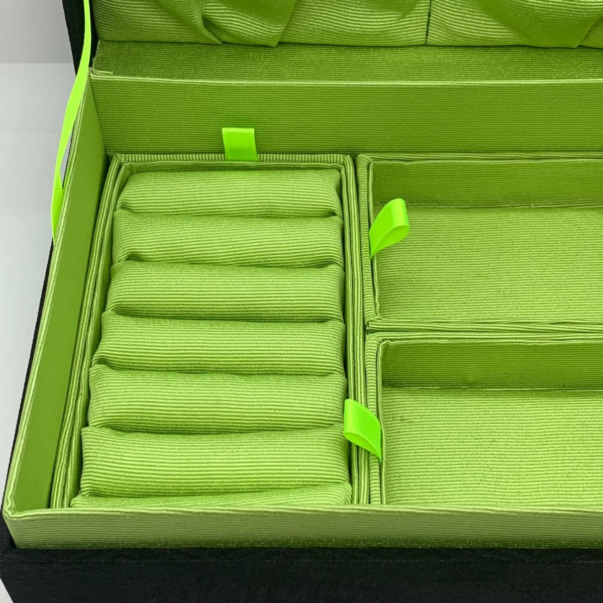 Box measures 9 x 6.5 x 3.5 and has removable trays.