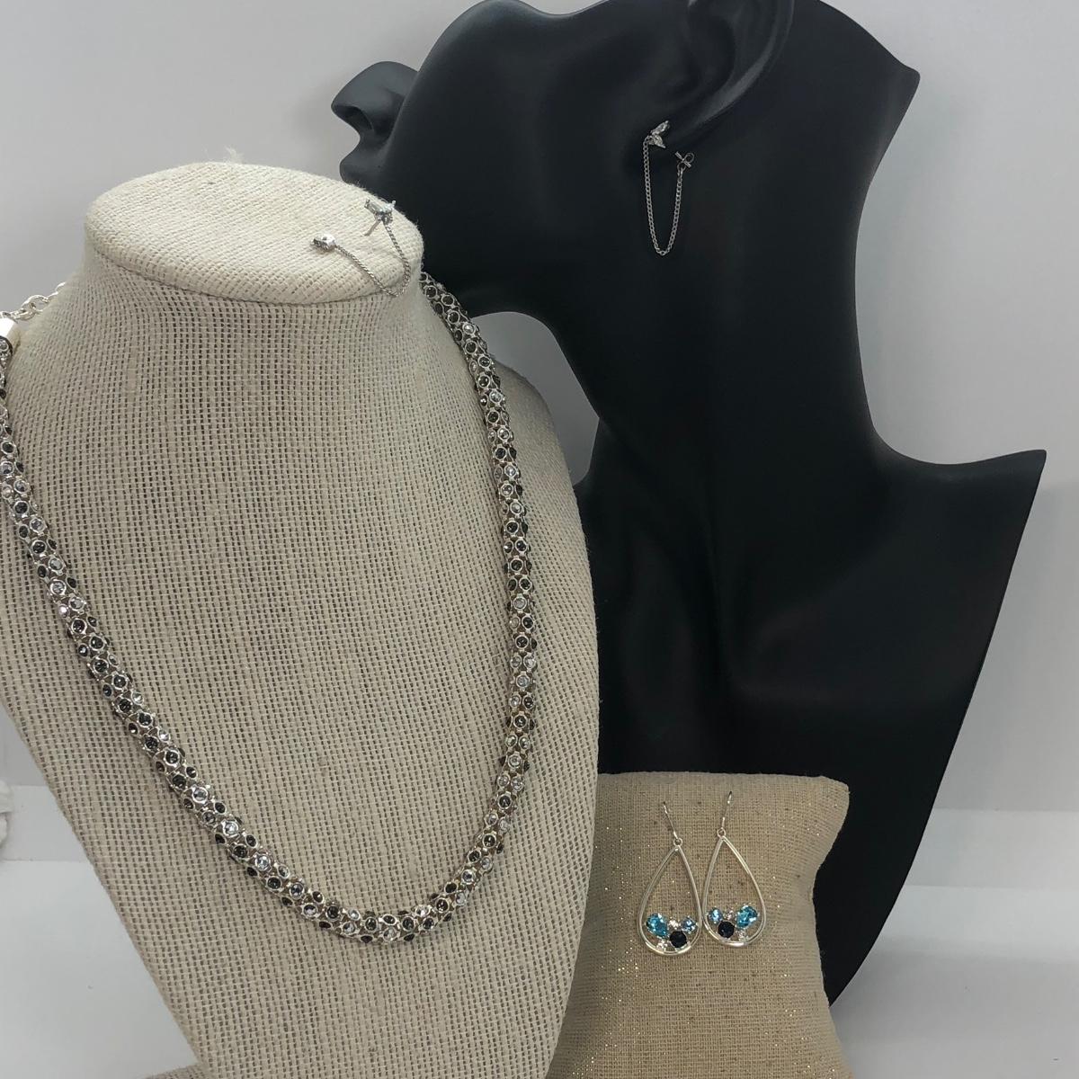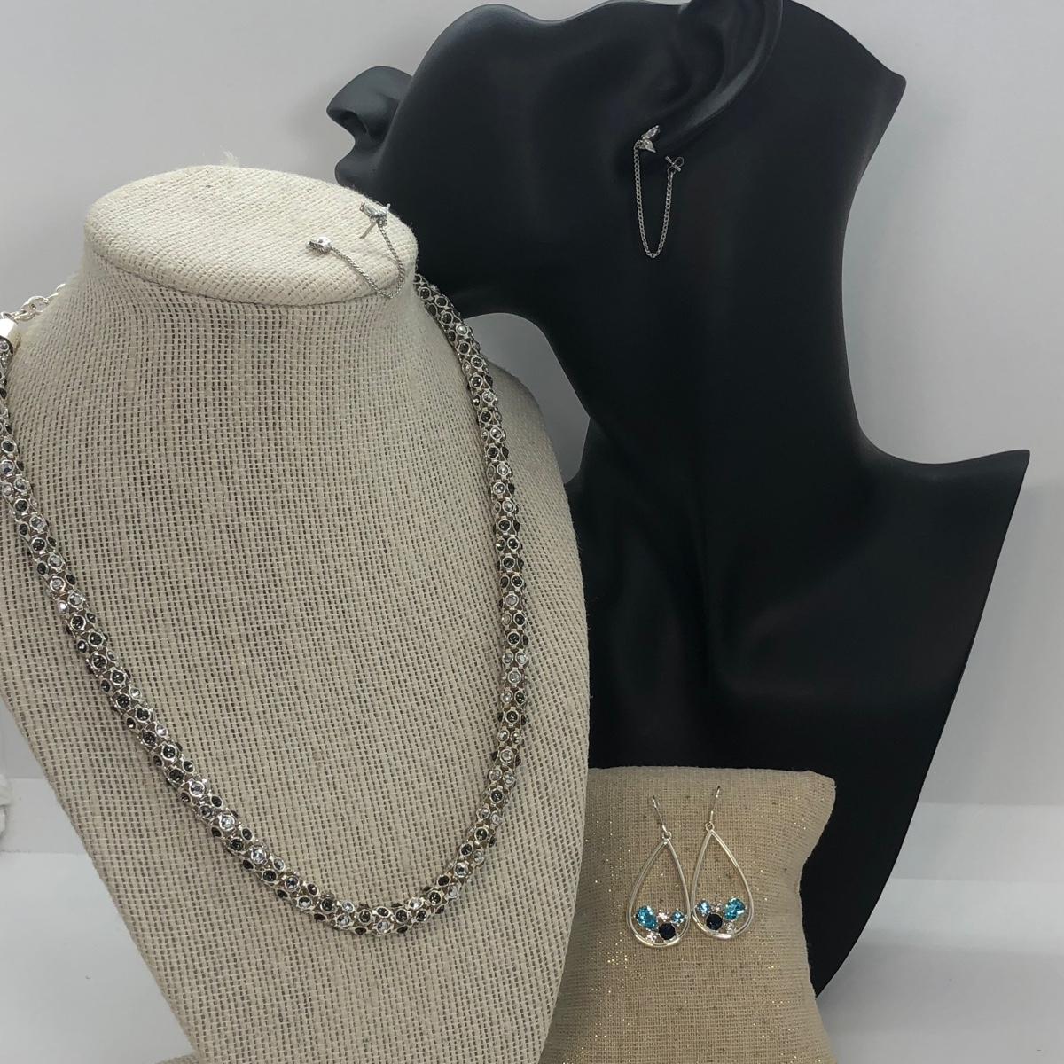 LOT 94M: Sterling Butterfly Chain Earrings, 18" Necklace & Silvertone Earrings