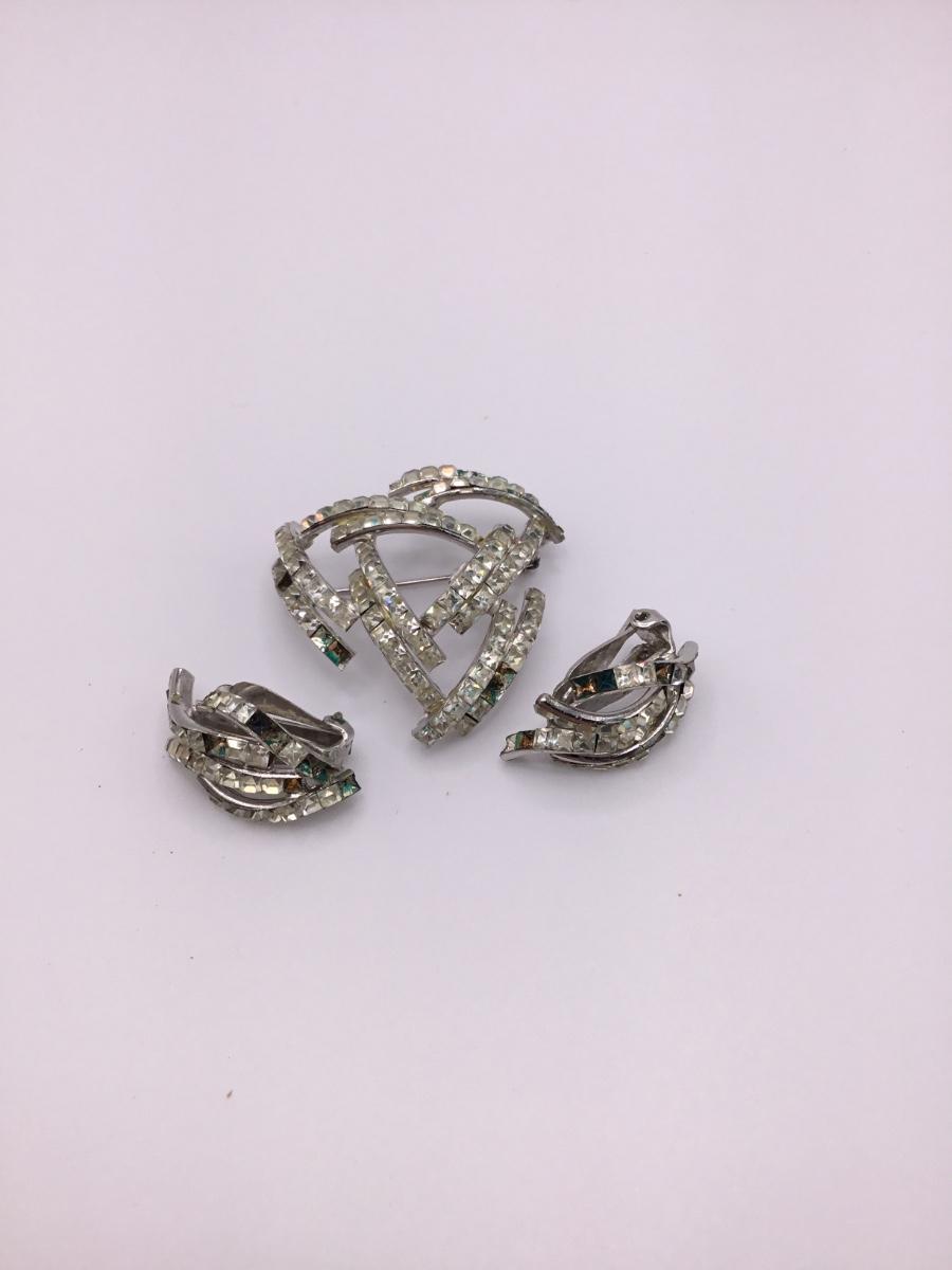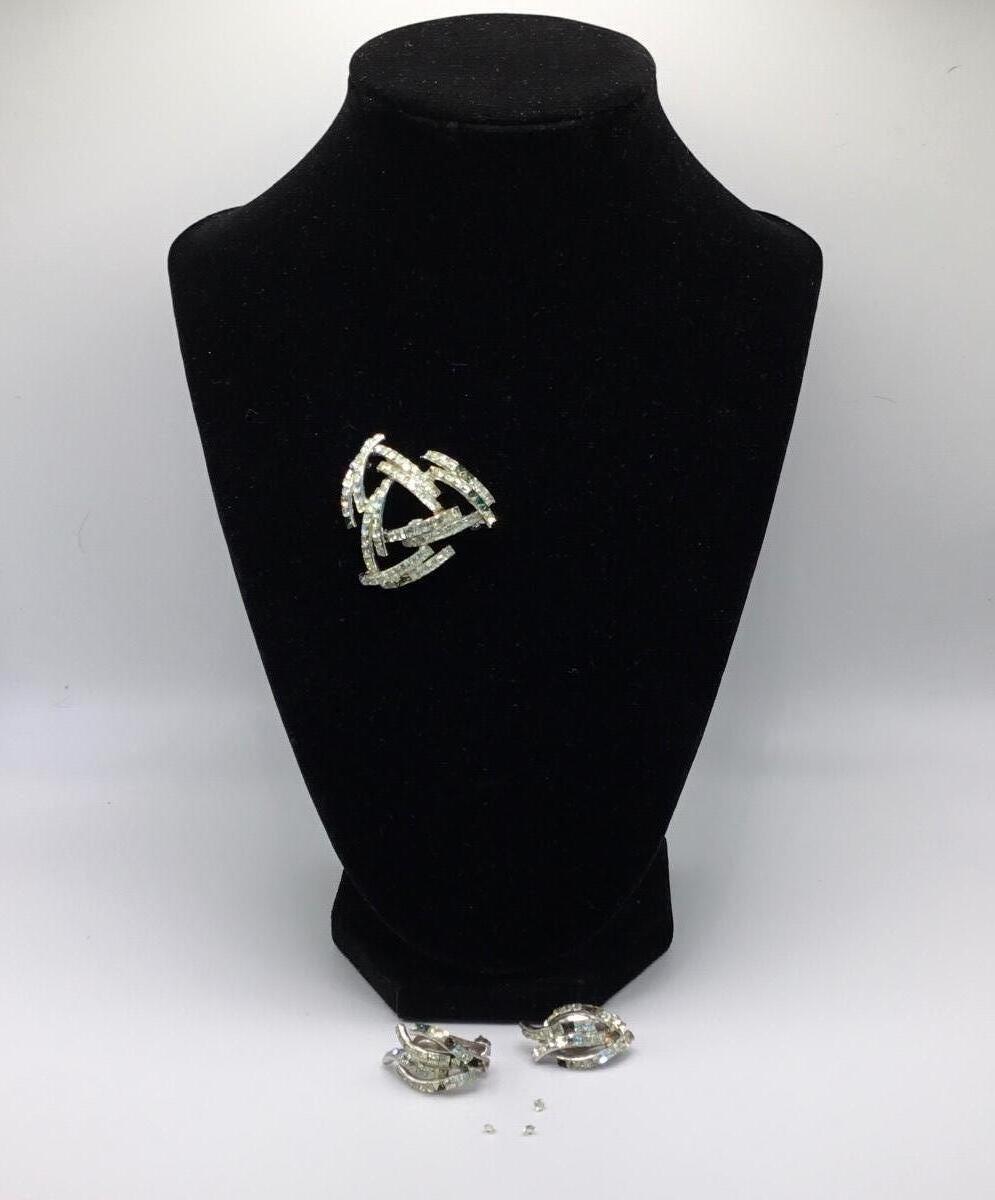 LOTJ120: Austria Set - Vintage Rhinestone Brooch and Clip-Ons - missing a few stones