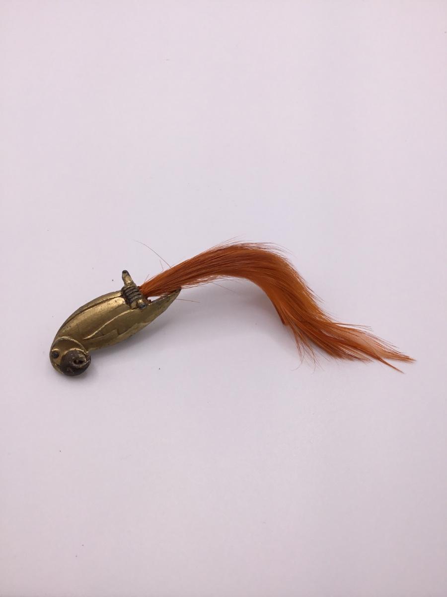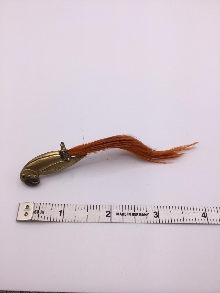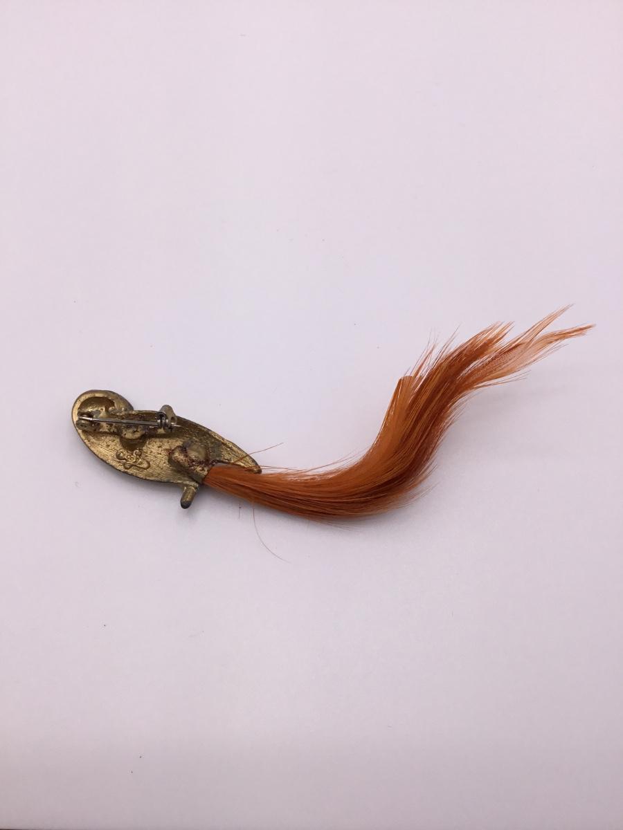 LOTJ122: Hallmarked Vintage Brass Parrot Brooch with Long Feather Tail