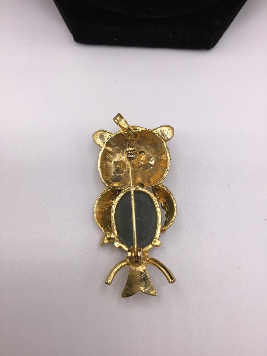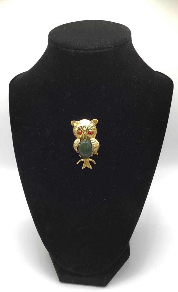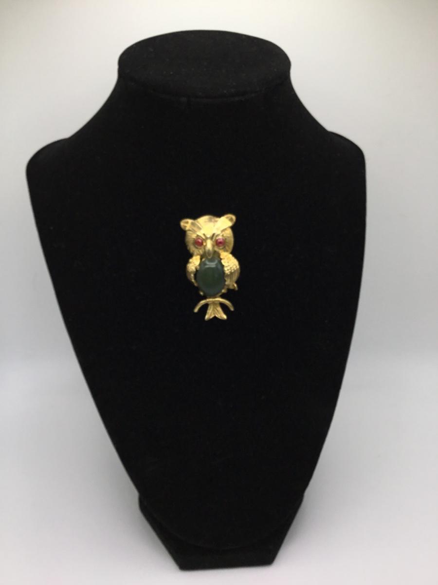 LOTJ125: Vintage Owl Brooch/Pendant with Jade Jelly Belly