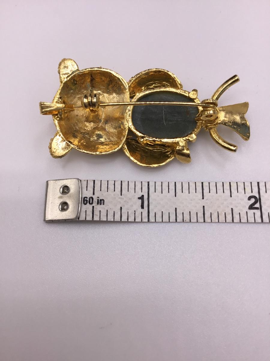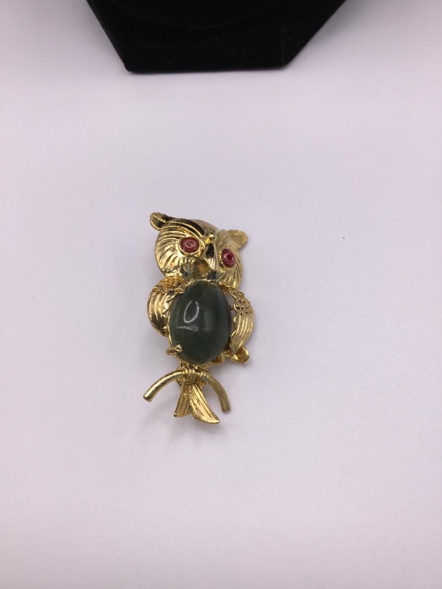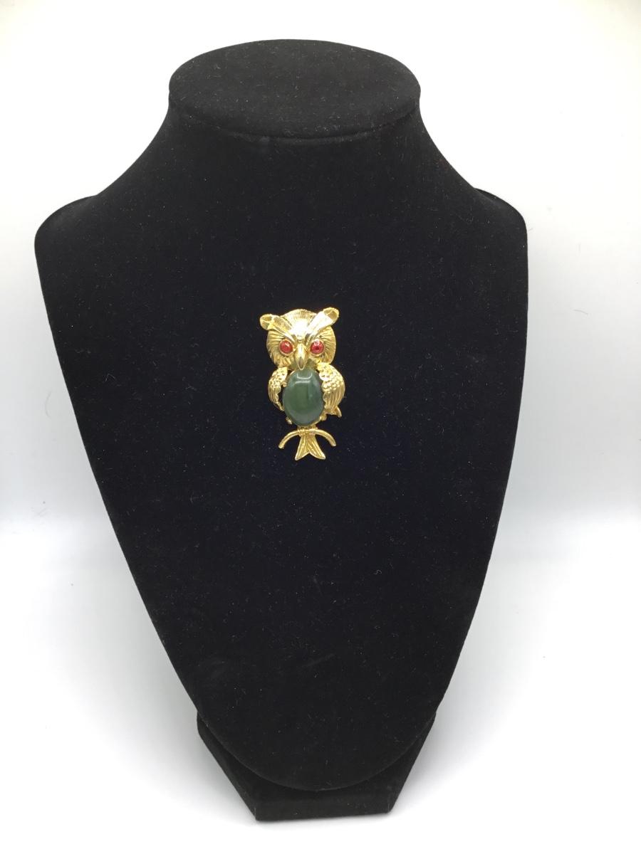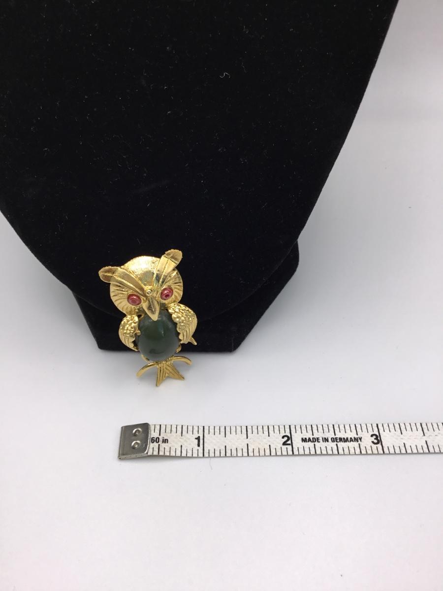 Vintage Owl Brooch/Pendant with Green Jade Jelly Belly. The pictures show condition, measurements if taken, and what is included in the lot. All items unless noted, are pre-owned and may or may not have been worn. Unless noted in the pictures or description, there are no boxes for the jewelry. Shipping will be offered at the actual shipping cost to your zip-code plus $5.00 for packing and handling. We can do combined shipping. Items over $50.00 will have an added insurance charge, and will be signature required for delivery at the buyers expense. All lots have a Buyers Premium of 15%. For a shipping quote, please email with zip code and items (lot) numbers. Treasure Me Estate Sales offers shipping as a courtesy and in doing so, reserves the right to choose the shipping supplies including whether not to send in an envelope or box to protect the integrity of the item. When the auction closes, and all items have sold, you will receive an invoice with all of your winning items. If you need shipping, and there is not a shipping charge on the invoice, please email for a quote and new invoice will be sent with shipping charges and pay at that time. Paying through PayPal helps so we can generate a label with tracking, but is not required. Thank you and please email with any questions.