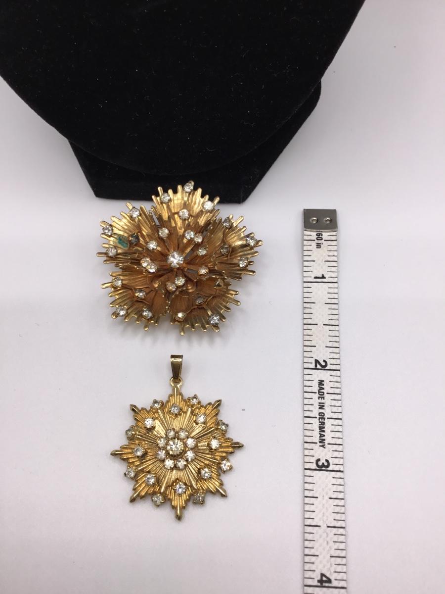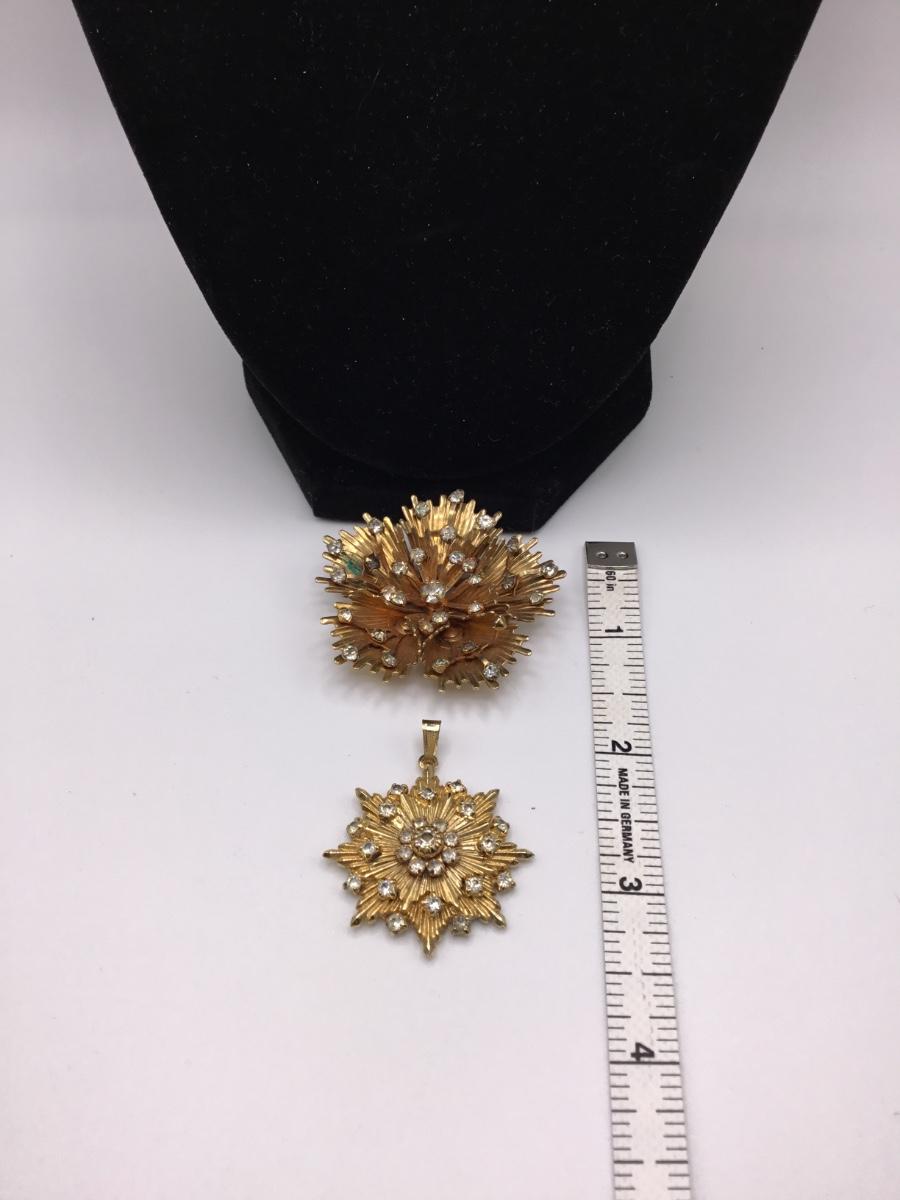 Vintage Fashion Pin and Pendant. The pictures show condition, measurements if taken, and what is included in the lot. All items unless noted, are pre-owned and may or may not have been worn. Unless noted in the pictures or description, there are no boxes for the jewelry. Shipping will be offered at the actual shipping cost to your zip-code plus $5.00 for packing and handling. We can do combined shipping. Items over $50.00 will have an added insurance charge, and will be signature required for delivery at the buyers expense. All lots have a Buyers Premium of 15%. For a shipping quote, please email with zip code and items (lot) numbers. Treasure Me Estate Sales offers shipping as a courtesy and in doing so, reserves the right to choose the shipping supplies including whether not to send in an envelope or box to protect the integrity of the item. When the auction closes, and all items have sold, you will receive an invoice with all of your winning items. If you need shipping, and there is not a shipping charge on the invoice, please email for a quote and new invoice will be sent with shipping charges and pay at that time. Paying through PayPal helps so we can generate a label with tracking, but is not required. Thank you and please email with any questions.